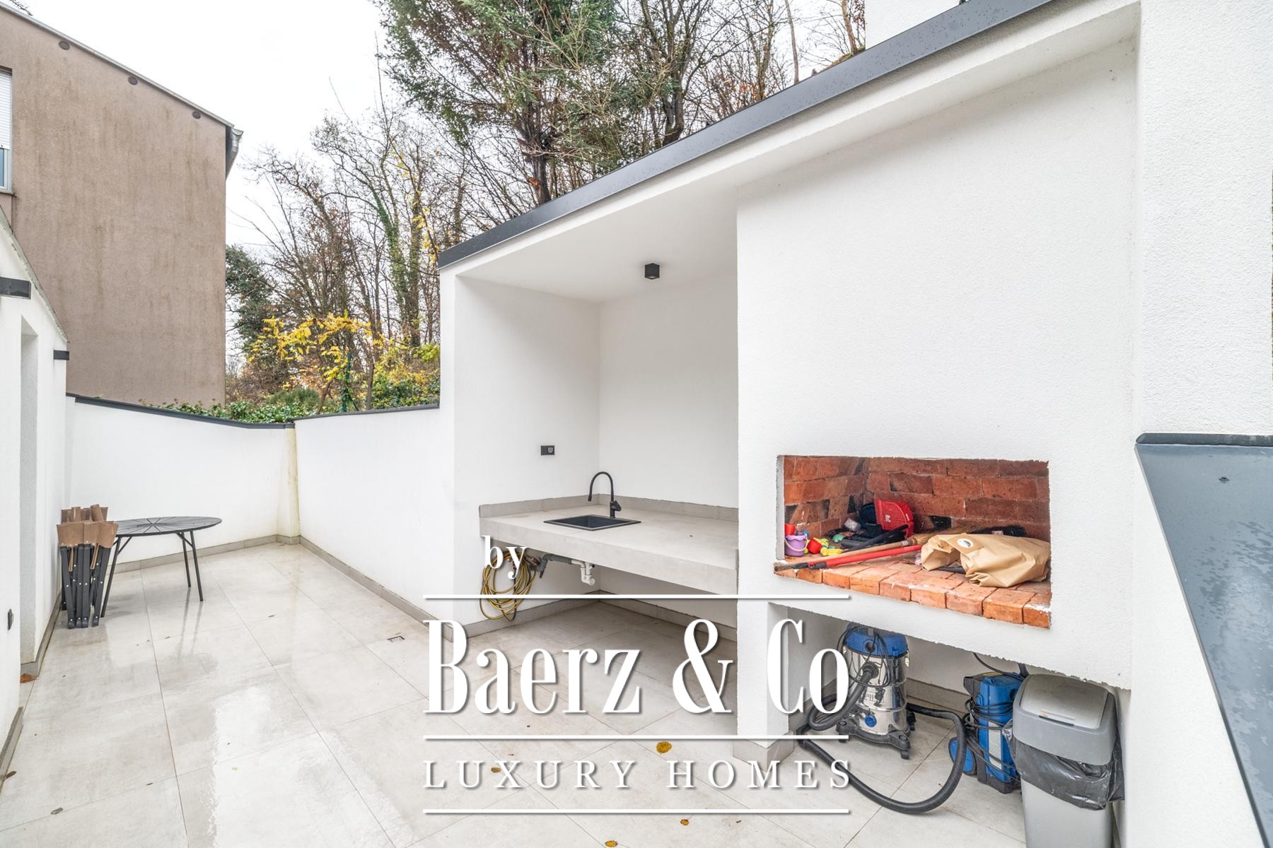The ground floor offers a sense of professional and personal balance, featuring an office, gym, exercise room with tatami, a bathroom, and considered storage. Ascending, the first floor unfolds into an open living volume with custom kitchen, dining and lounge, anchored by a large terrace with a fireplace, barbecue, and summer kitchen—inviting an understated kind of conviviality. The attic level provides three serene bedrooms, a bathroom, a hallway, and terrace, creating an intimate retreat from the pace of urban life.