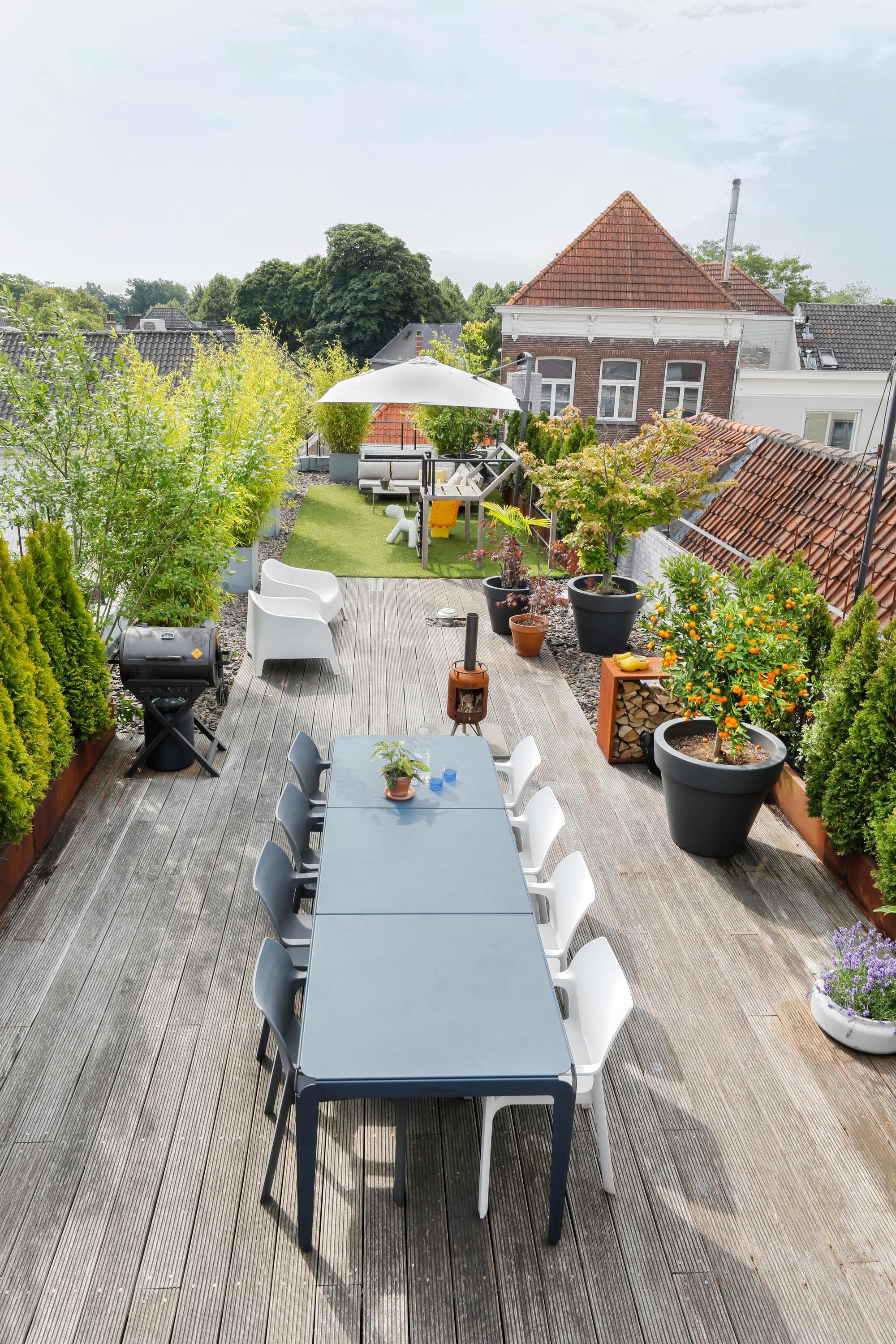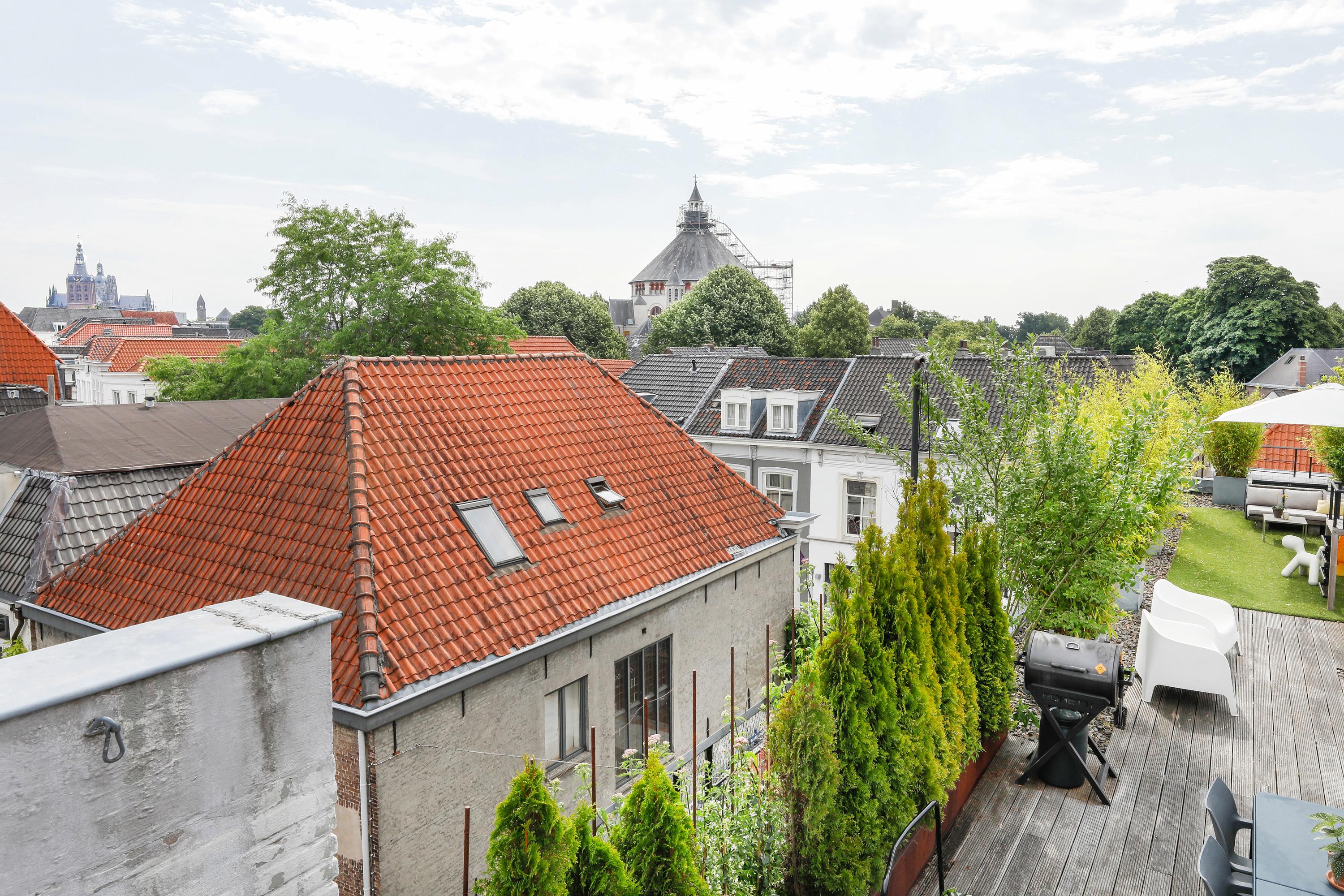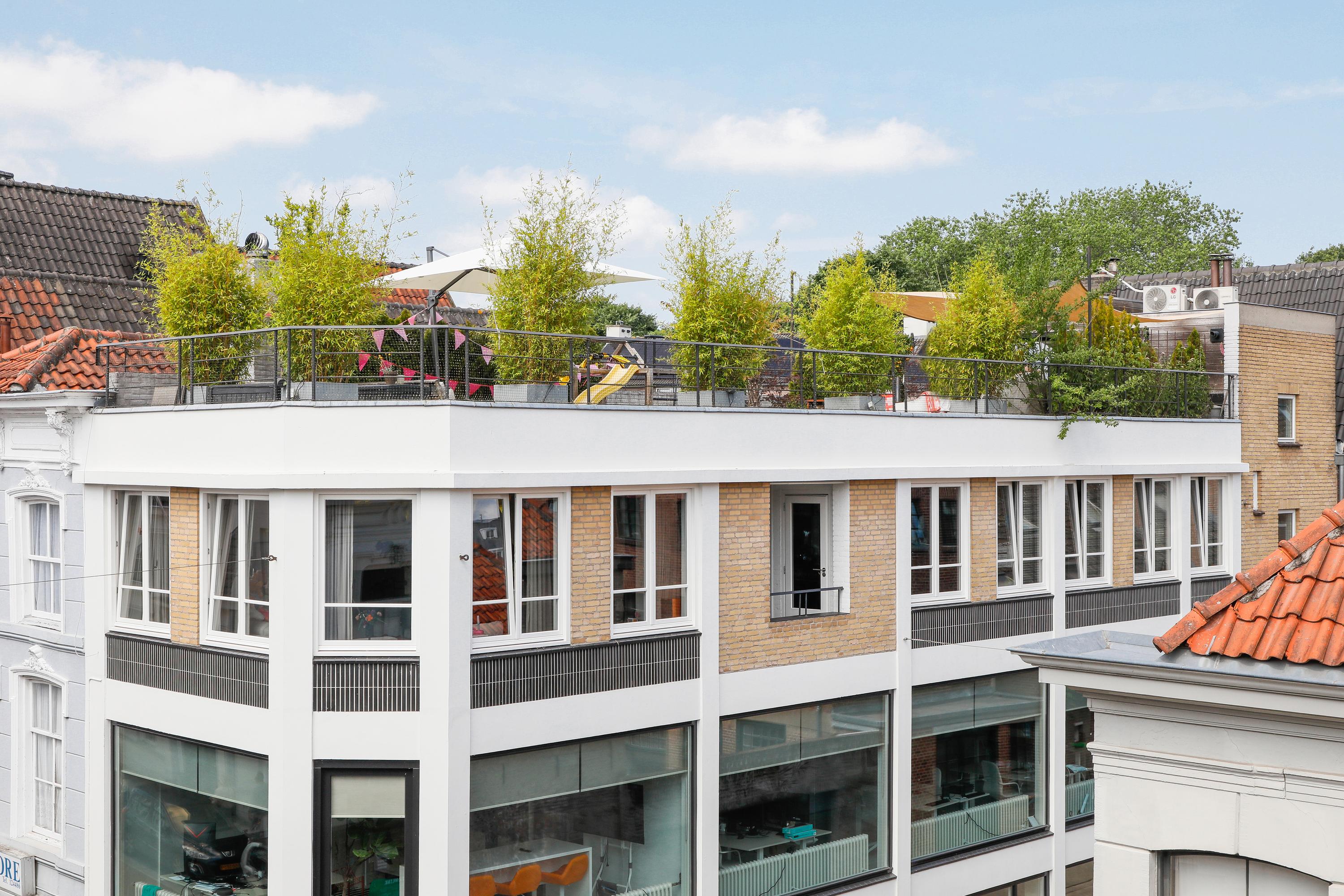 Groot appartement in hartje centrum met vijf kamers, een eigen entree/fietsenberging en een indrukwekkend dakterras.
