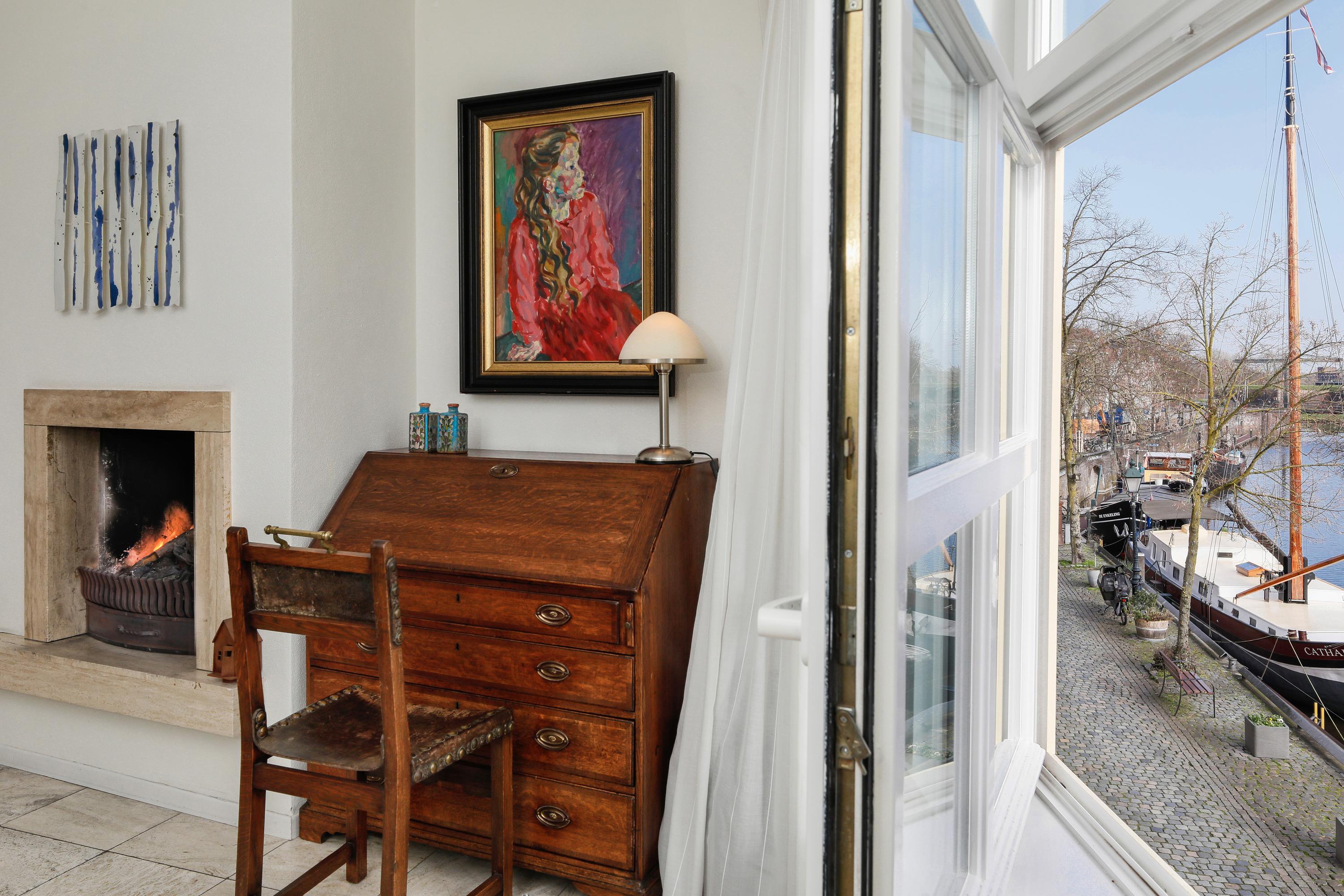 Brede Haven is famous for its elegant historic buildings and vibrant atmosphere along the harbour. From the living areas at the front of the house you enjoy views over the water and the lively quay, while the rear of the house overlooks the Dommel river, where boats and paddleboarders quietly pass by. This rare double waterfront position provides sunlight and beautiful views throughout the day.