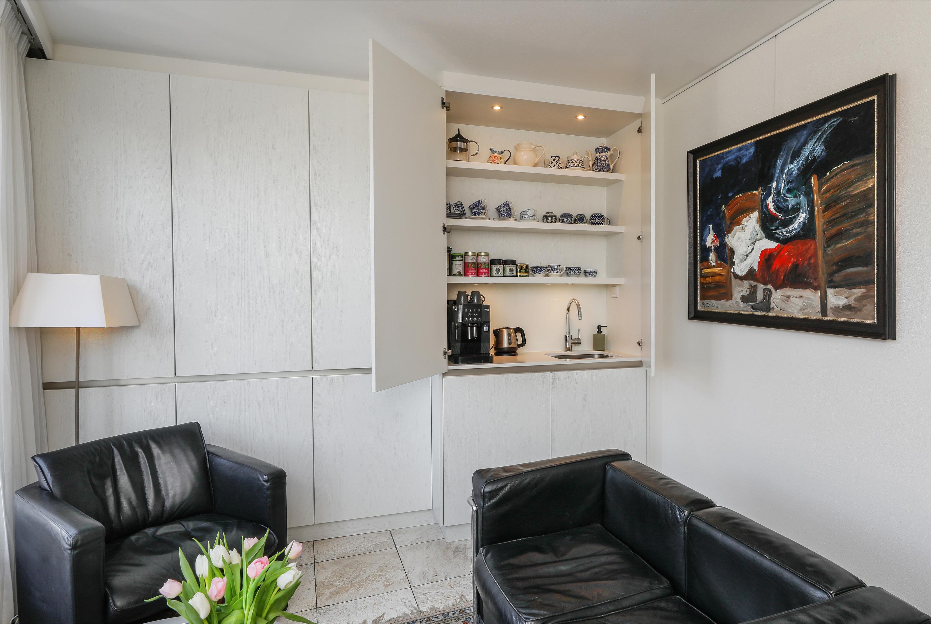 The main living room is bright and spacious and enjoys beautiful views over the harbour. At the rear there is an additional sitting room with views over the Dommel and the evening sun – a perfect place to relax.