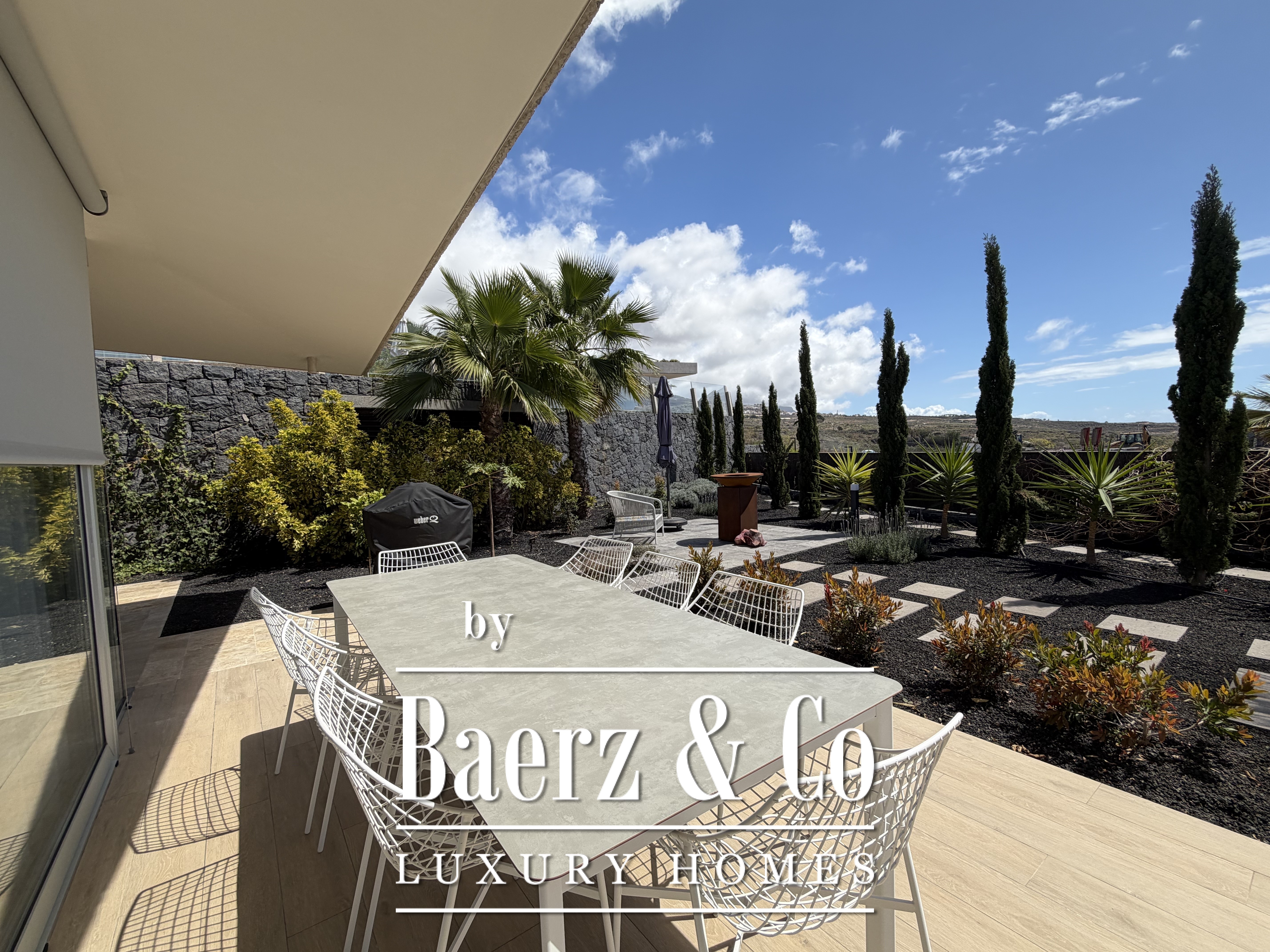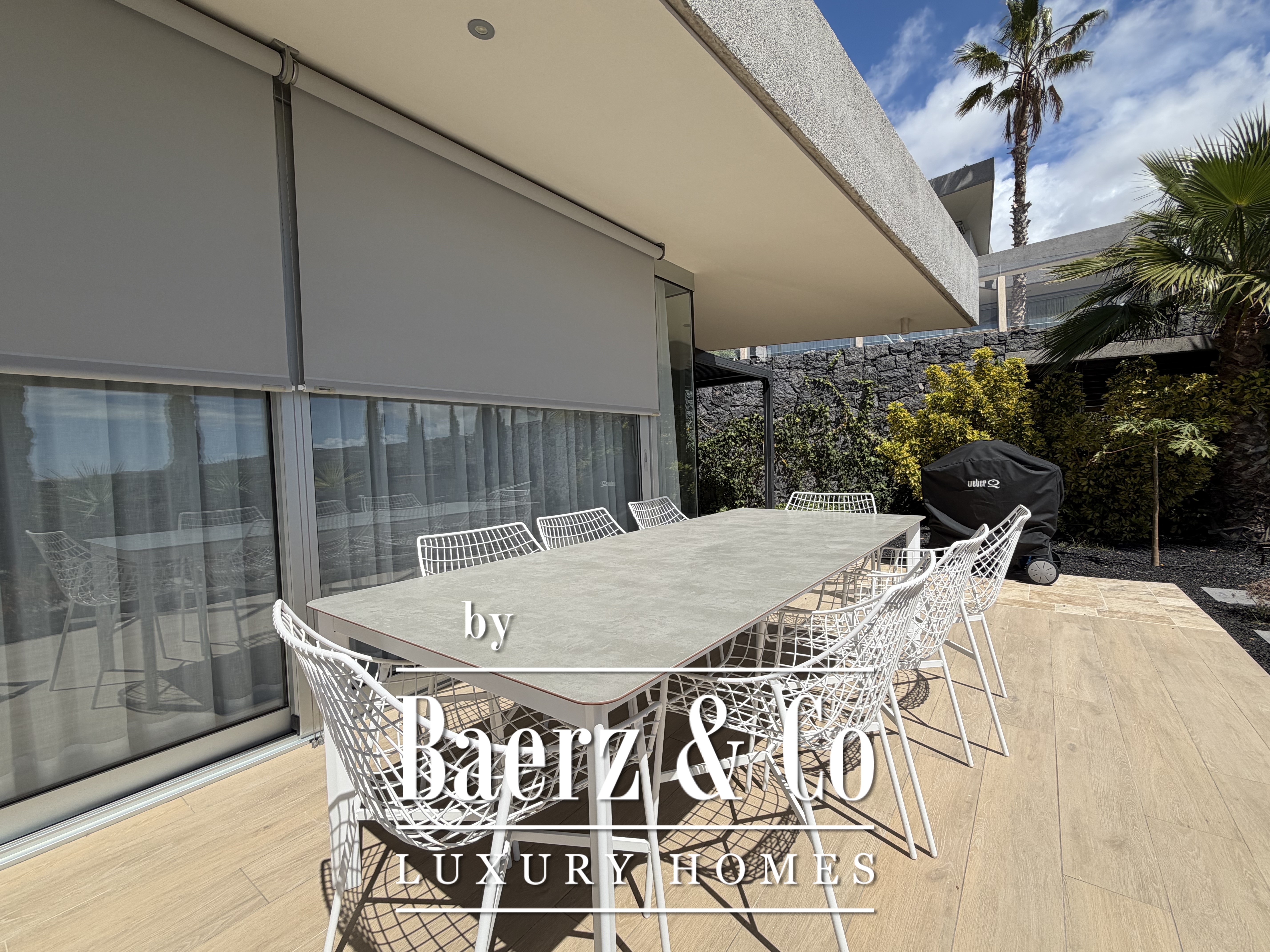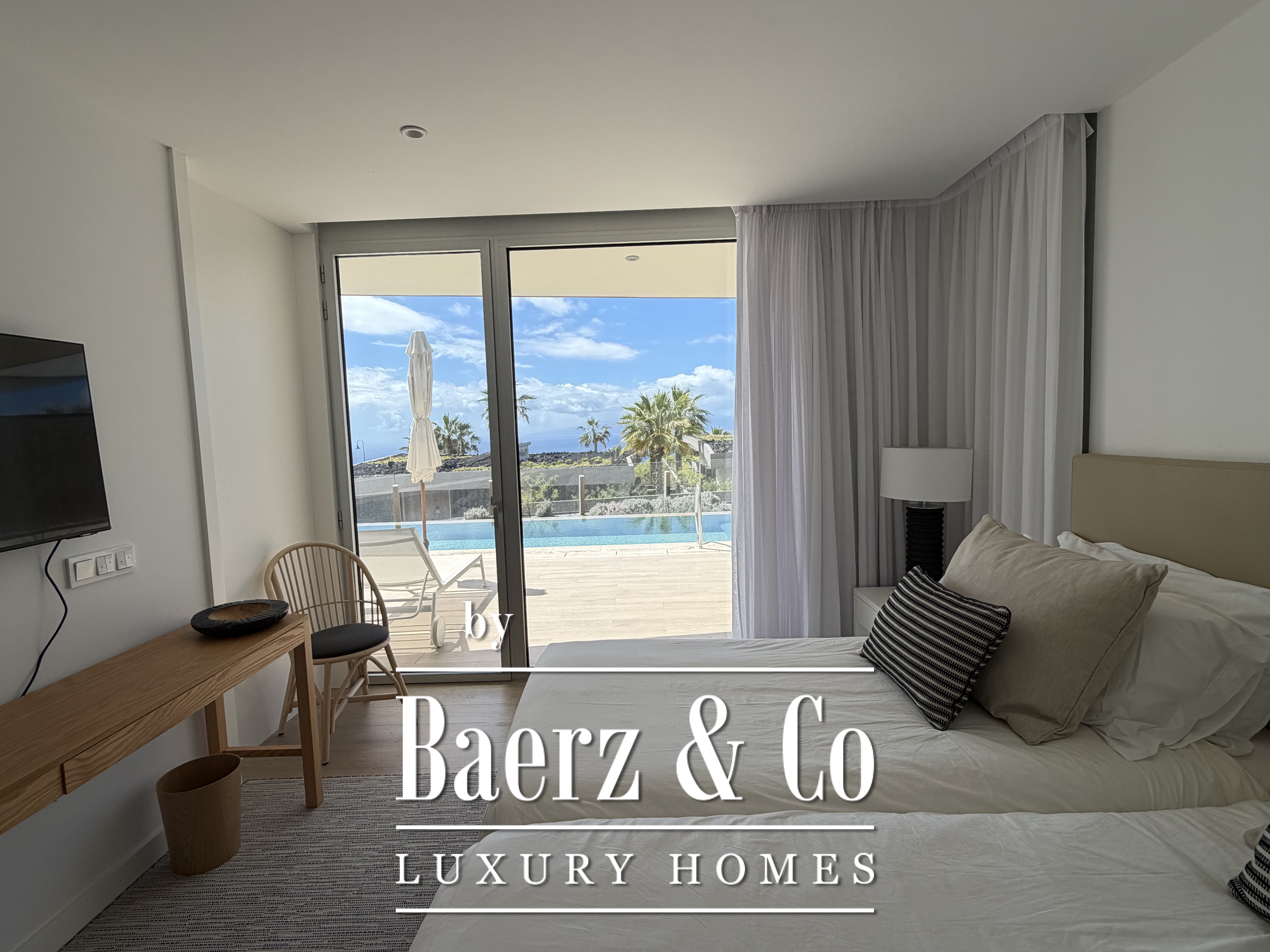 Villa Abama with ocean views welcomes you to the distinguished enclave of southern Tenerife, where contemporary design meets comfort over 265 m² of living space. This single-story villa stands within the esteemed Abama resort, privately set on a 662 m² plot with privileged views across the Atlantic, the golf course, and the island of La Gomera.