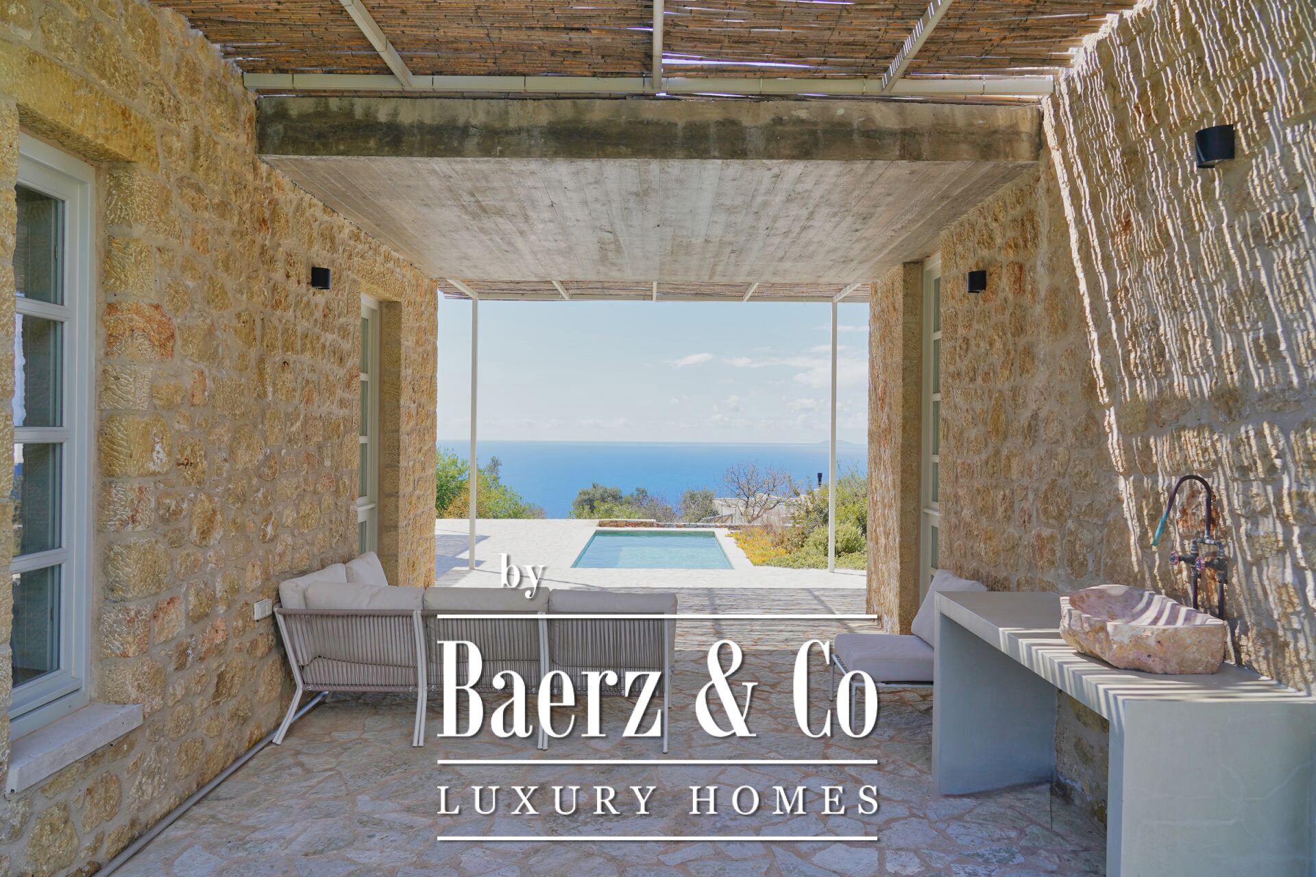 Stone villa Agios Nikolaos offers an exceptional blend of privacy, luxury, and the elemental beauty of the Greek coastline.