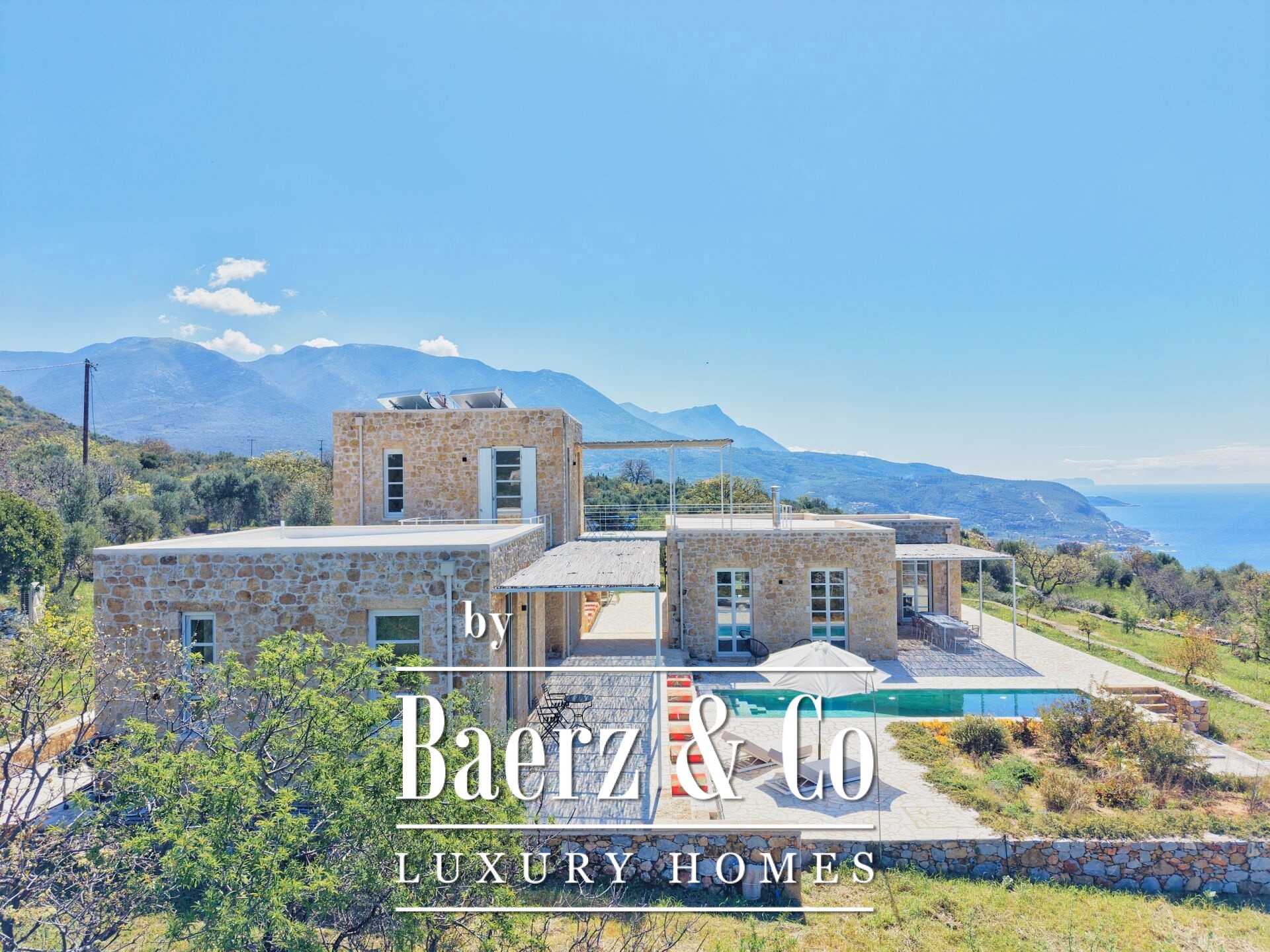 Stone villa Agios Nikolaos stands within the sought-after landscape of Messinian Mani, presenting refined living with panoramic, unobstructed sea views. This newly built villa, set on a 2,029 m² plot, encompasses 260 m² of living space distributed across three independent buildings, offering both privacy and versatility.