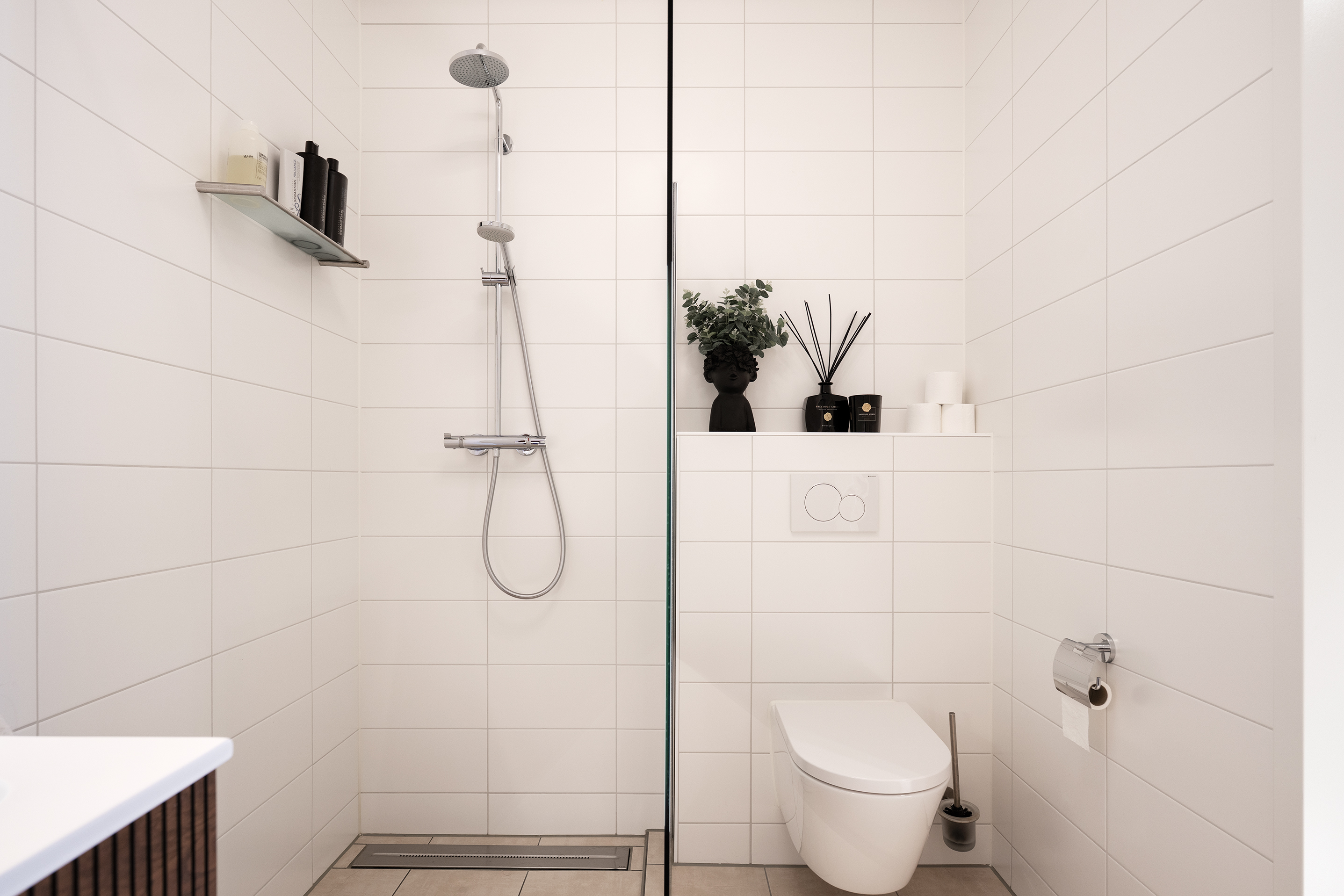 From the moment you step inside, a sense of serene calm washes over you. Your eyes are drawn from the luxurious kitchen to the lofty living area, bathed in daylight through nearly 4-meter-high windows. Pour yourself a fine wine from the climate-controlled wine cabinet and unwind on the terrace, which enjoys sun late into the evening.