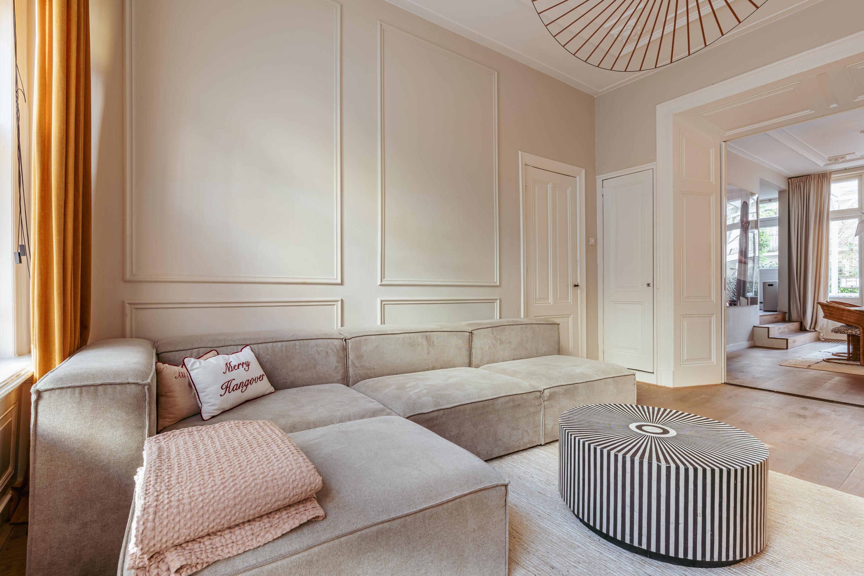 A charming double ground-floor apartment of 124 m² with a spacious garden and distinctive character details. This beautiful home combines authentic charm with modern living comfort. Think of stained glass windows, ornate ceiling decorations, fireplaces, and paneling, perfectly balanced with a contemporary finish. With a generous and bright en-suite living area, open kitchen, four bedrooms, two balconies, and an exceptionally large sunny backyard with a covered terrace, this property offers everything for comfortable and atmospheric living. Situated on freehold land and featuring a practical layout, this is a unique and complete family home.
