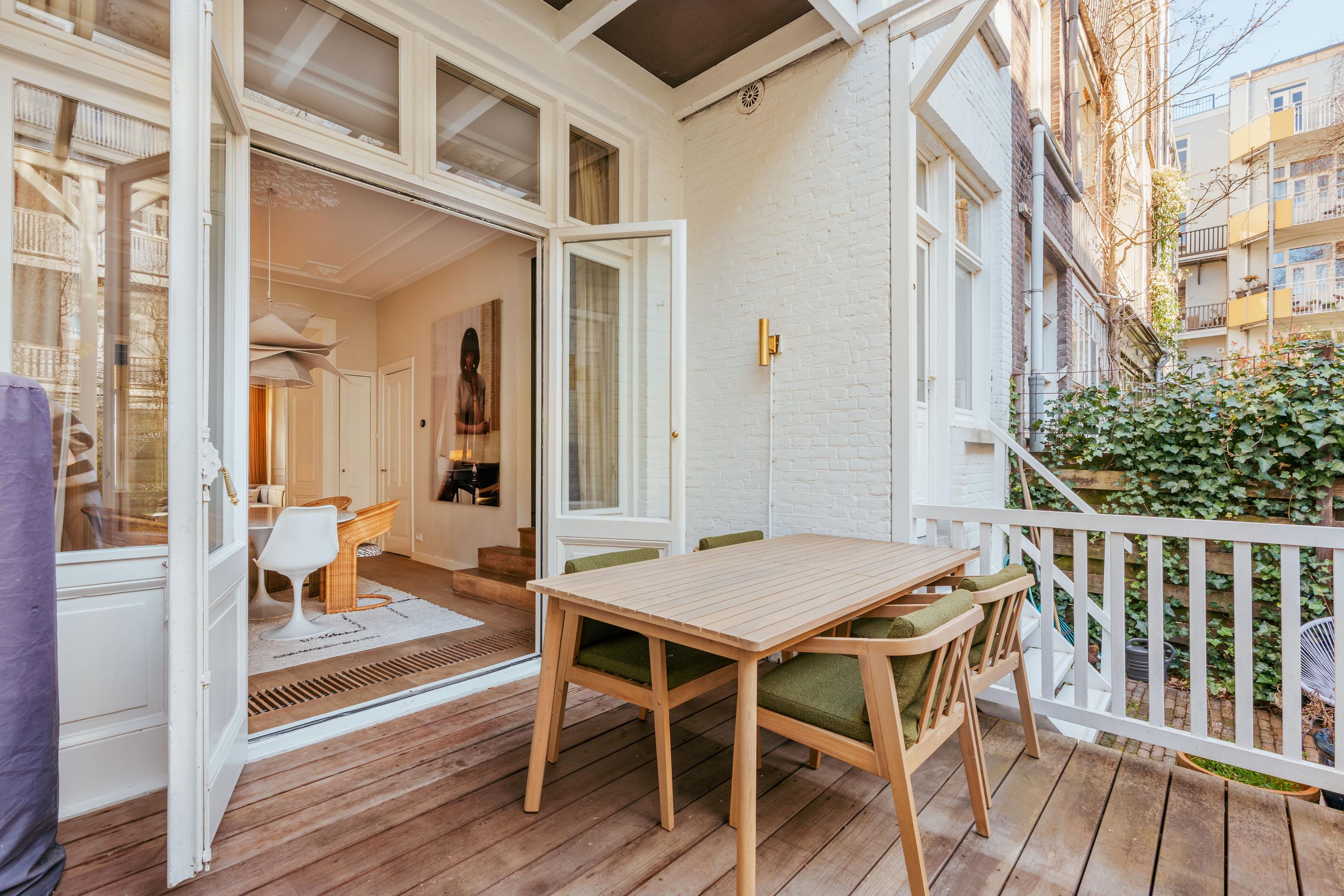 - Spacious sunny garden with covered terrace of 61 m² + two balconies