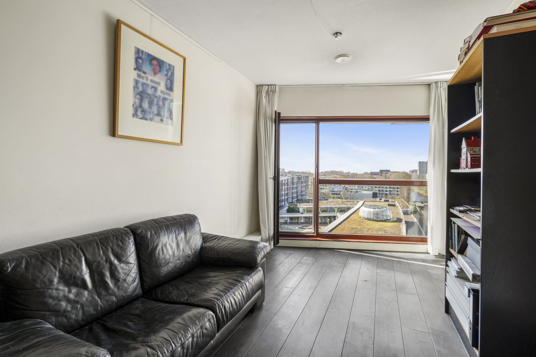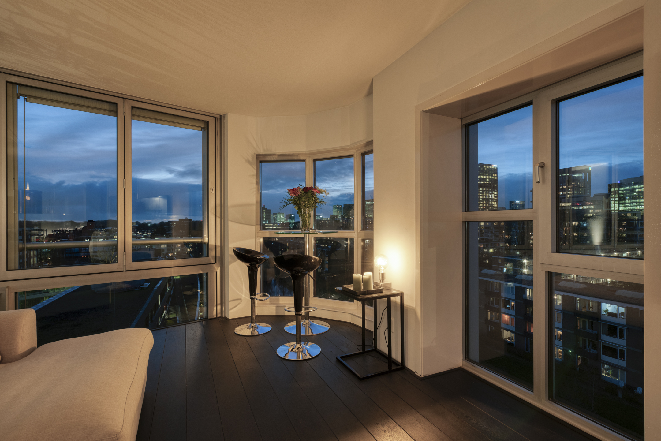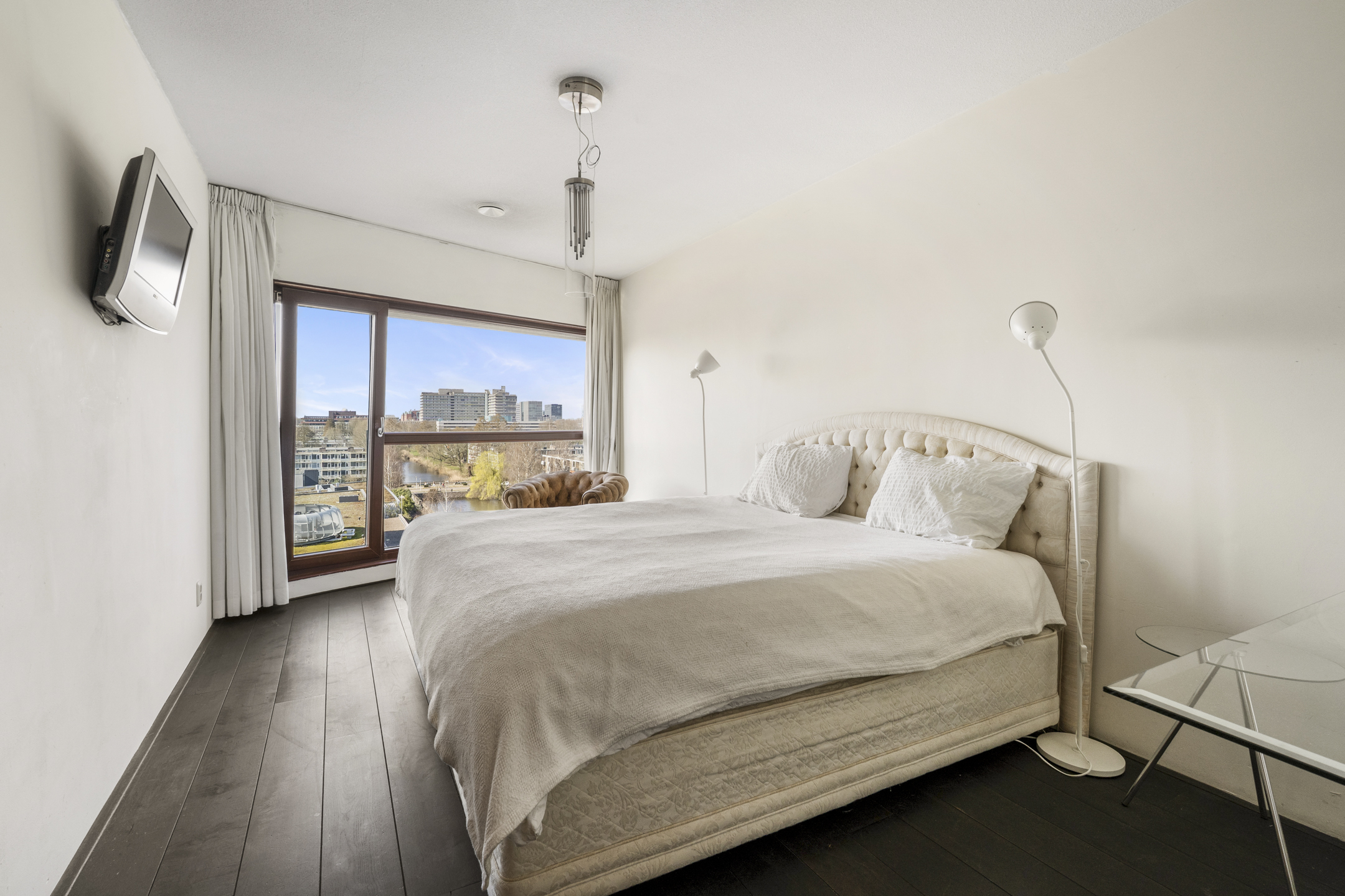 Thanks to its corner location, abundant windows on both the southwest and north sides, and the seventh-floor position, the apartment offers spectacular views of the water and the Zuidas skyline in Amsterdam.