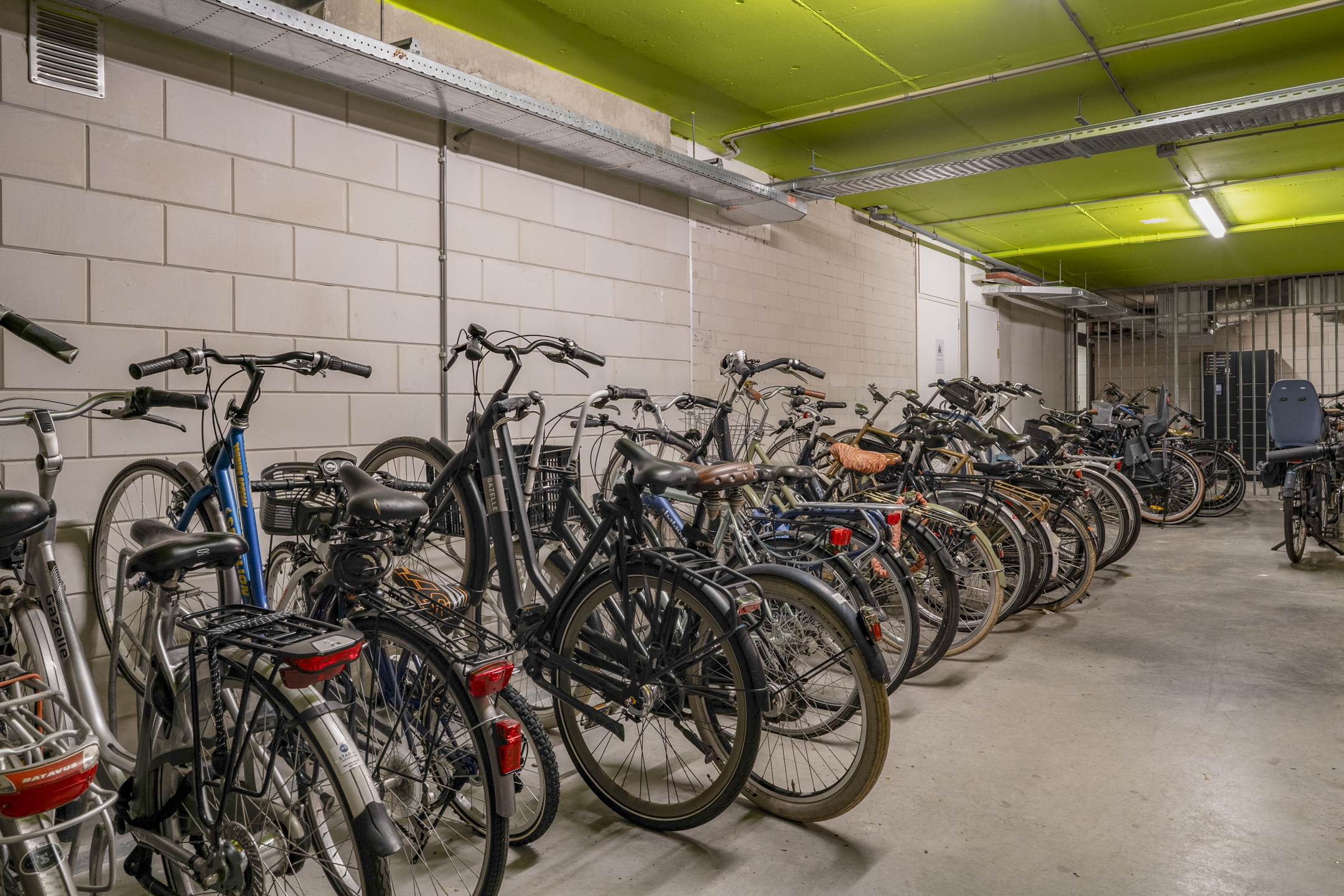 In the basement, you'll find a shared bike storage area, a private storage unit, and an optional private parking space.