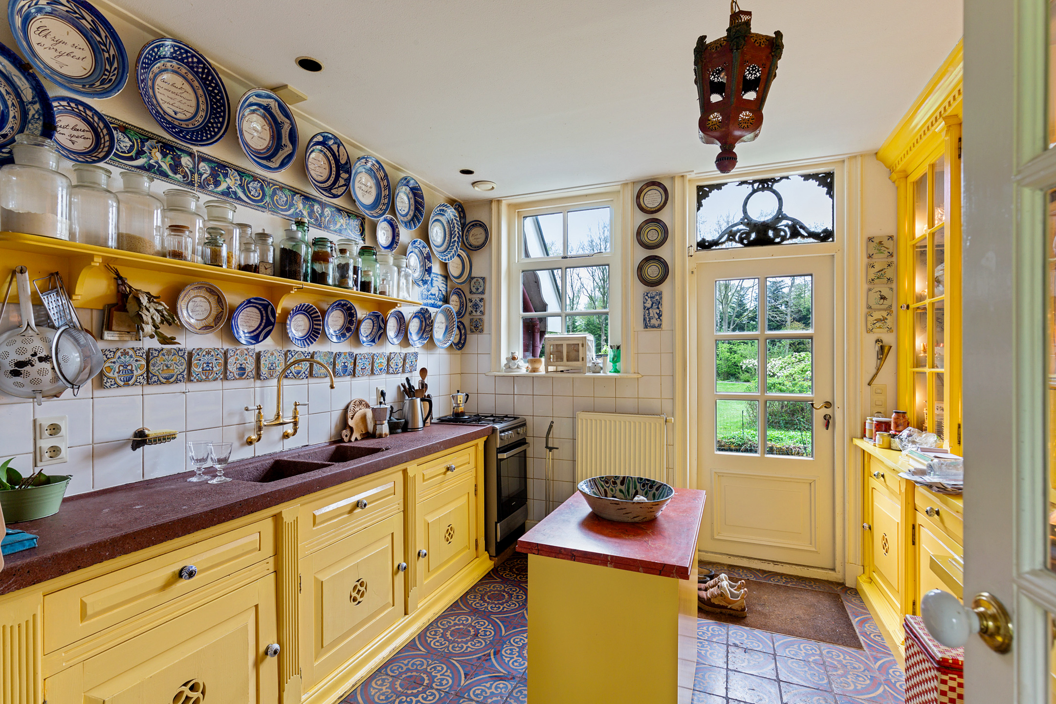The floors date from the late 19th century, and the kitchen features two blue-and-white panels from around 1800, made in Harlingen.