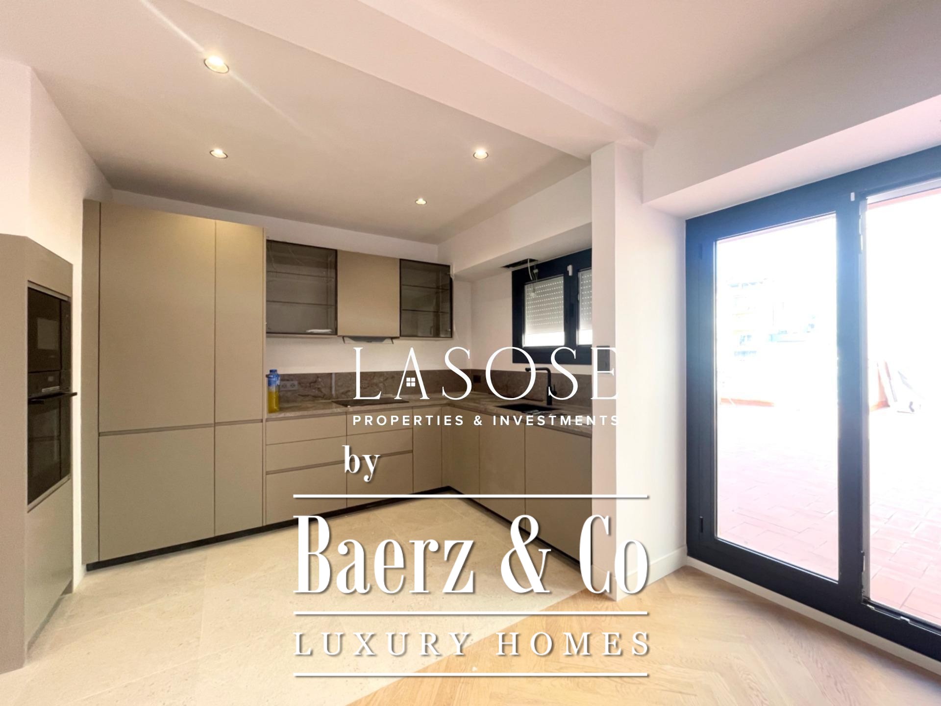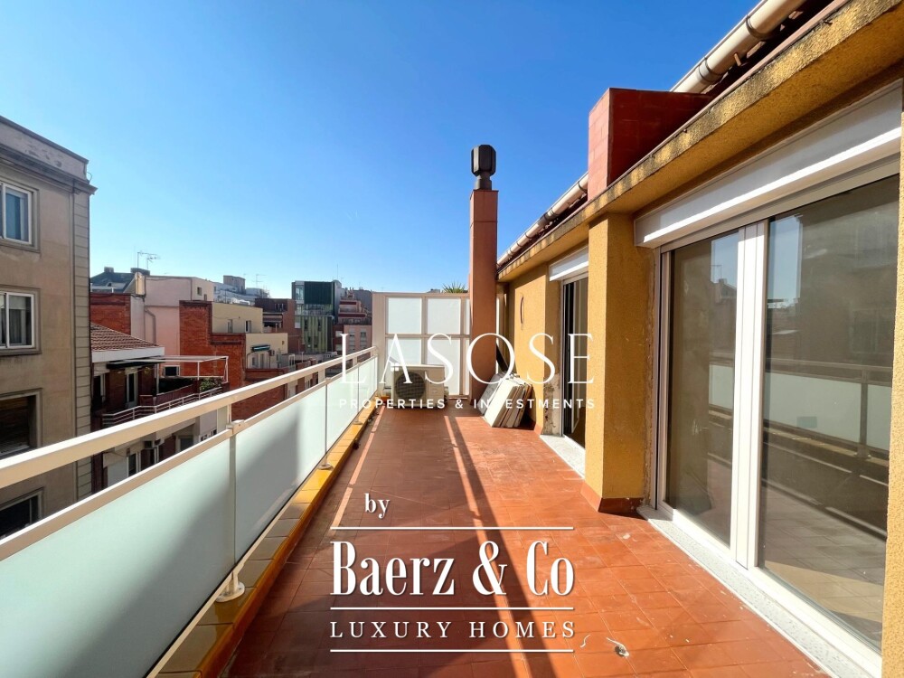 Penthouse Barcelona is the focus of this refined residence, positioned in the authentic enclave of Vila de Gràcia near Putxet. The 96 m² interior is complemented by a generous 60 m² terrace, offering a seamless flow between indoor and outdoor living. This penthouse Barcelona has been completely renovated, presenting a thoughtful division between night and day zones.