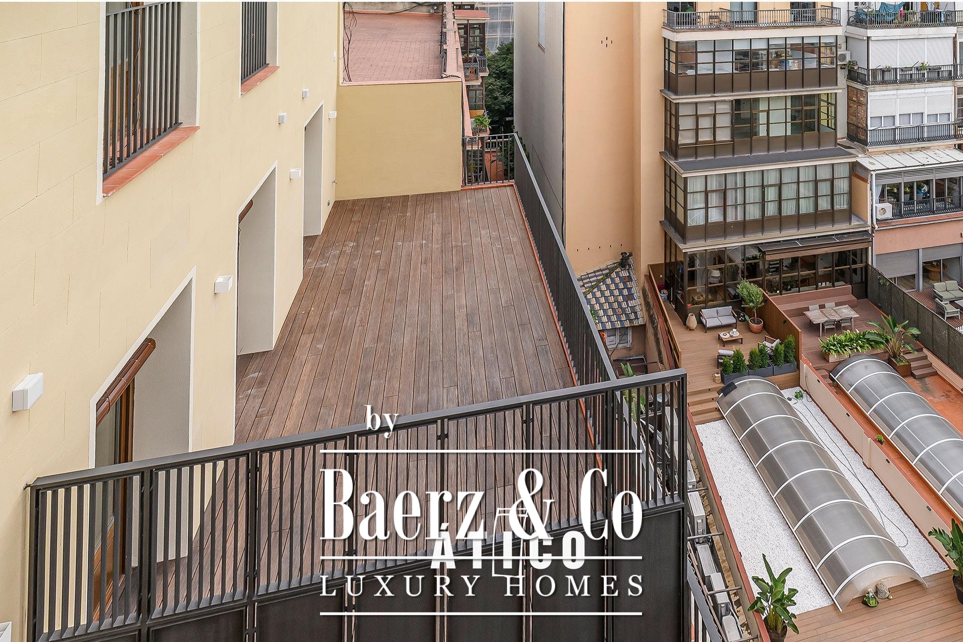This penthouse sits within a prestigious building offering additional new penthouse residences, each with its own terrace. Life in the Golden Square provides immediate access to Barcelona’s vibrant streetscape, culinary destinations, shopping, and cultural institutions. The location affords convenience and connection while retaining a sense of privacy and retreat, making it ideal for those who value both vibrancy and calm.