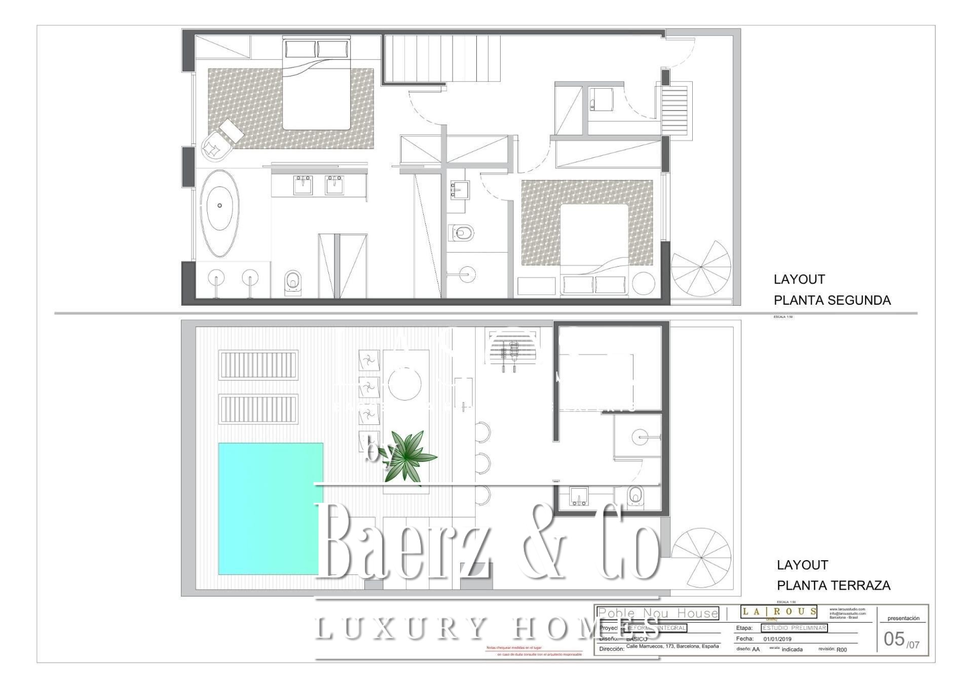 The top floor is reserved for rest and retreat, comprising two double bedrooms, both with en suite bathrooms. The master suite’s walk-in wardrobe and underfloor heating yield a sense of comfort and discretion. A 55 m² rooftop terrace connects with the kitchen level terrace below, creating a generous setting for gatherings or quiet contemplation. Situated on Calle Marroc, the home is moments from Diagonal Mar Shopping Centre and just a ten minute walk from the Mediterranean shoreline, accessible to city amenities yet quietly private. Townhouse Poblenou Barcelona embodies the intersection of sophisticated design and urban lifestyle.