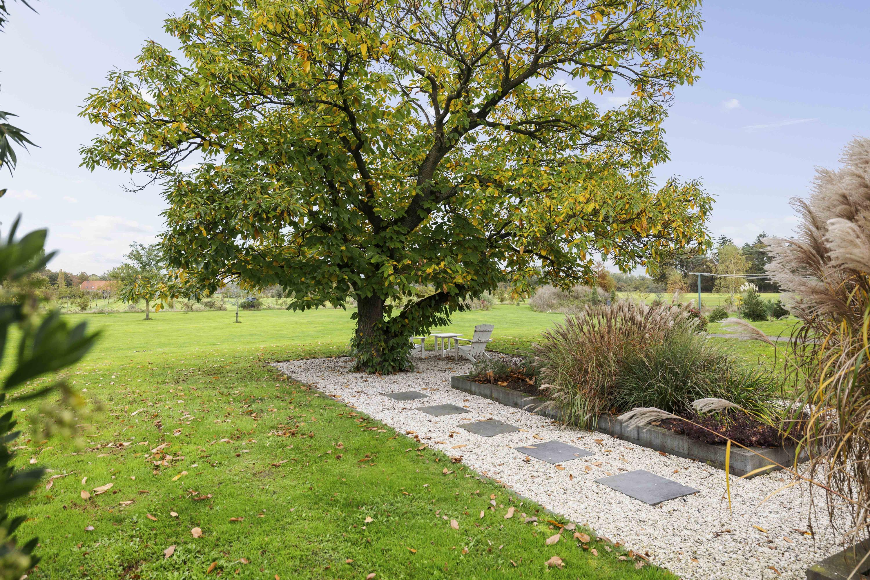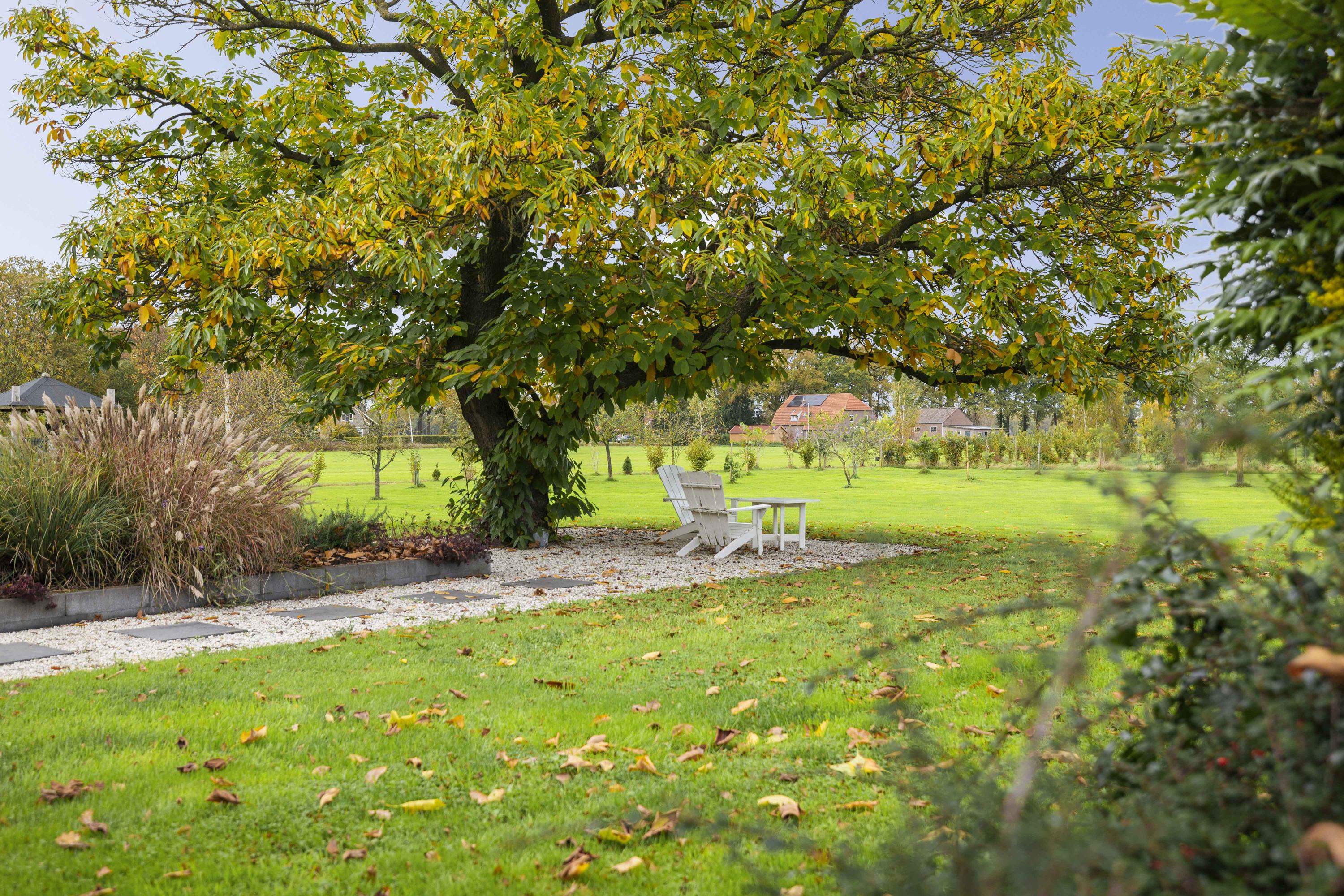 The garden is a true fairy tale; over 2 hectares in size and full of surprises. On cool evenings and mornings, the white witches, who play a starring role in Achterhoek folklore, flit between the trees and shrubs of the food forest. Roe deer, hares, squirrels, hedgehogs and all kinds of birds – from woodpeckers to owls – feel at home here. The roe deer like to come and take a drink at the water feature or enjoy the peace and quiet while grazing. The garden is based on a bio/ecological design, climate resistance and a great deal of diversity. There is a large pond of approximately 300 m² and 2 m deep, surrounded by a bee/butterfly paradise.