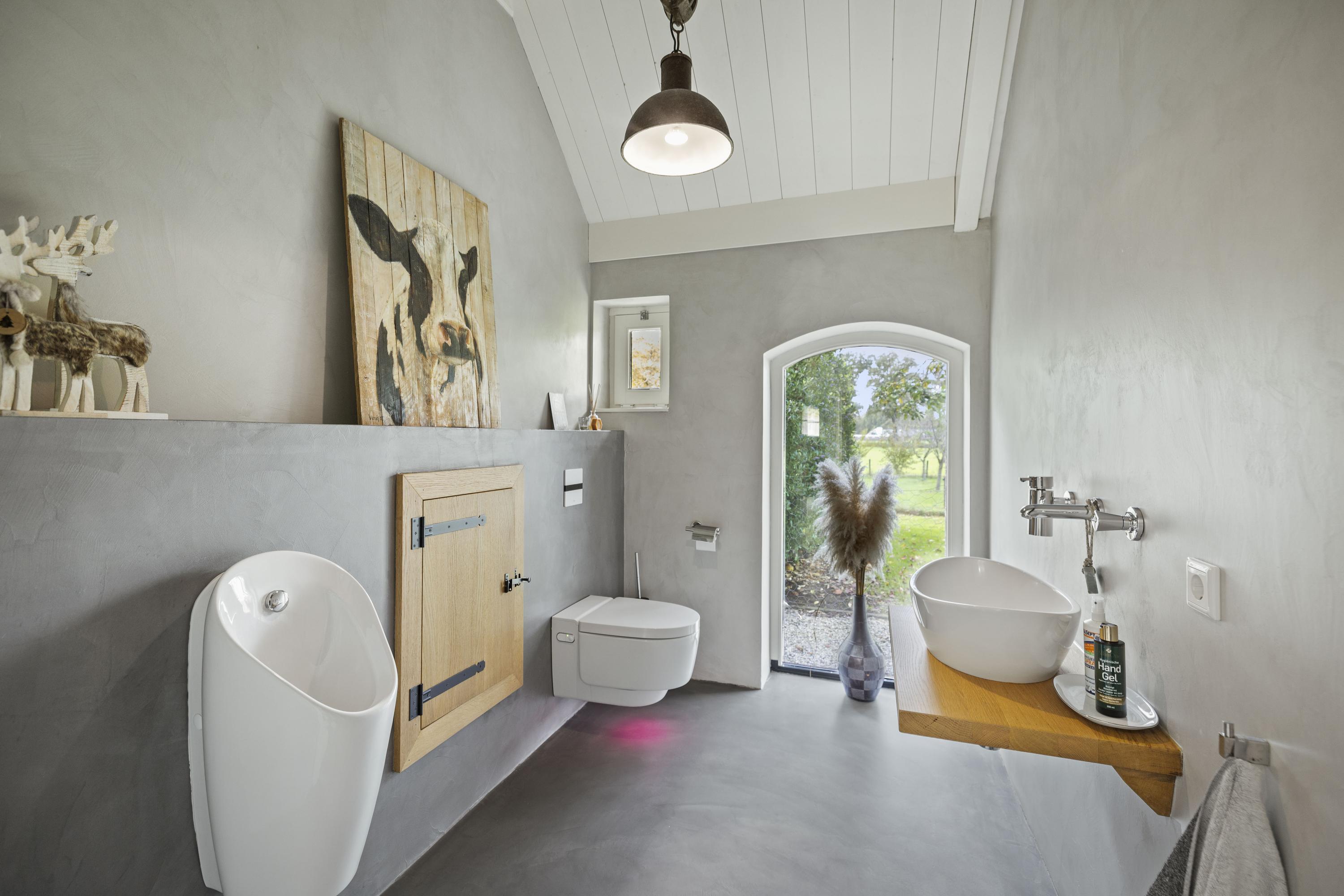 The toilet room is equipped with a urinal and Mera Geberit shower toilet.