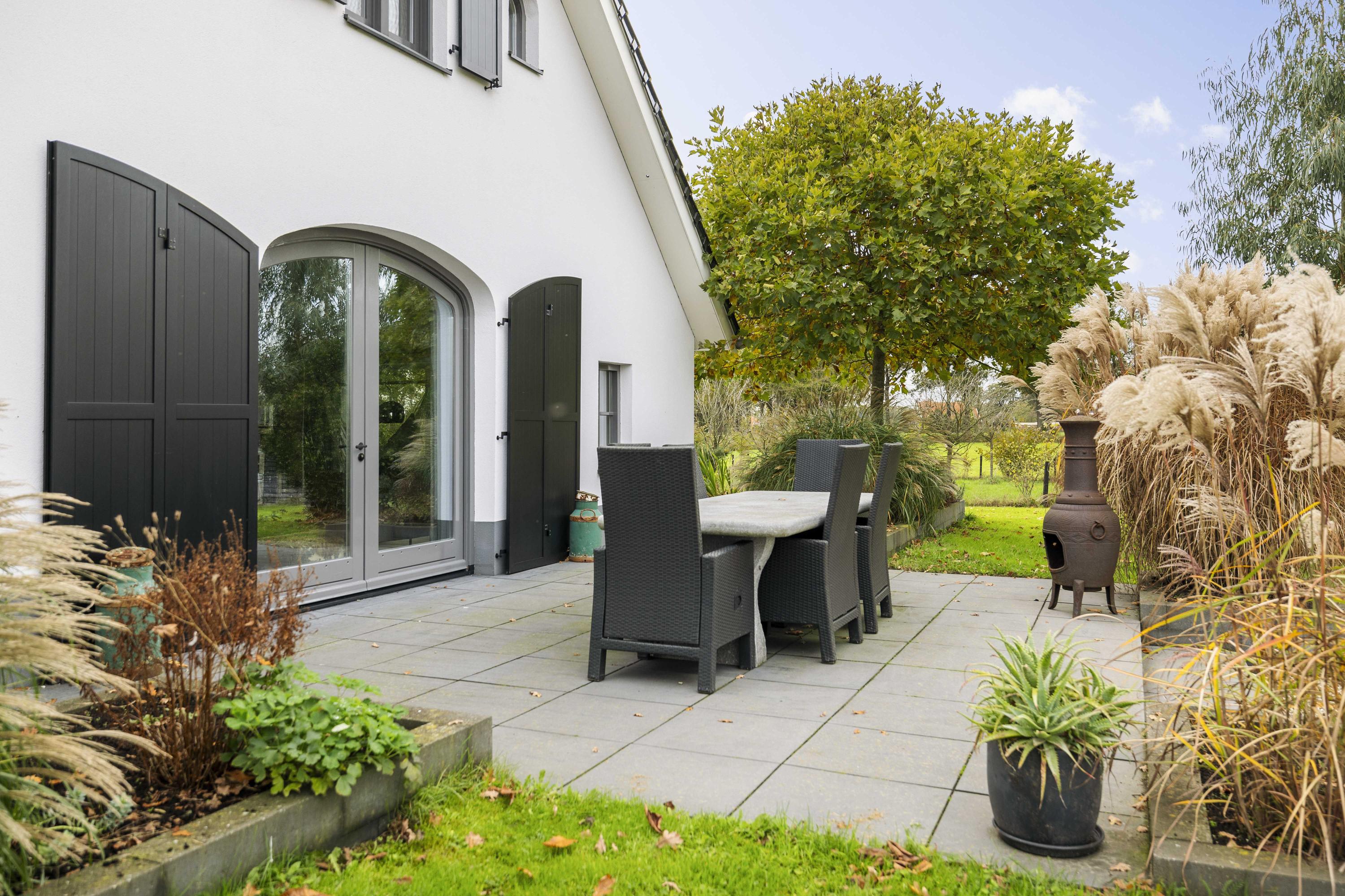 This magnificent farmhouse took on its current form in 2016, when the farm, which was built in 1924, was completely renovated. The emphasis was on sustainability: the exterior was fully insulated with polystyrene blocks, the house was fitted with new HR+++ glass all around, a water-water heat pump was installed (which exchanges and extracts heat at a depth of 75 metres), the interior floor was fitted with a robust cast floor – ideal in combination with underfloor heating – and a total of 110 (no, this is not a typo) solar panels were installed on the roofs. Under the bonnet, this house is all state-of-the-art technical ingenuity. Even the colour palette – the exterior is whitewashed with grey woodwork and beaded edging – contributes to the energy-efficient character of the house, because while the white facades reflect sunlight, the grey absorbs heat. Not only does this house have zero energy consumption, it also generates a considerable amount of energy! A home battery is therefore an excellent addition here.