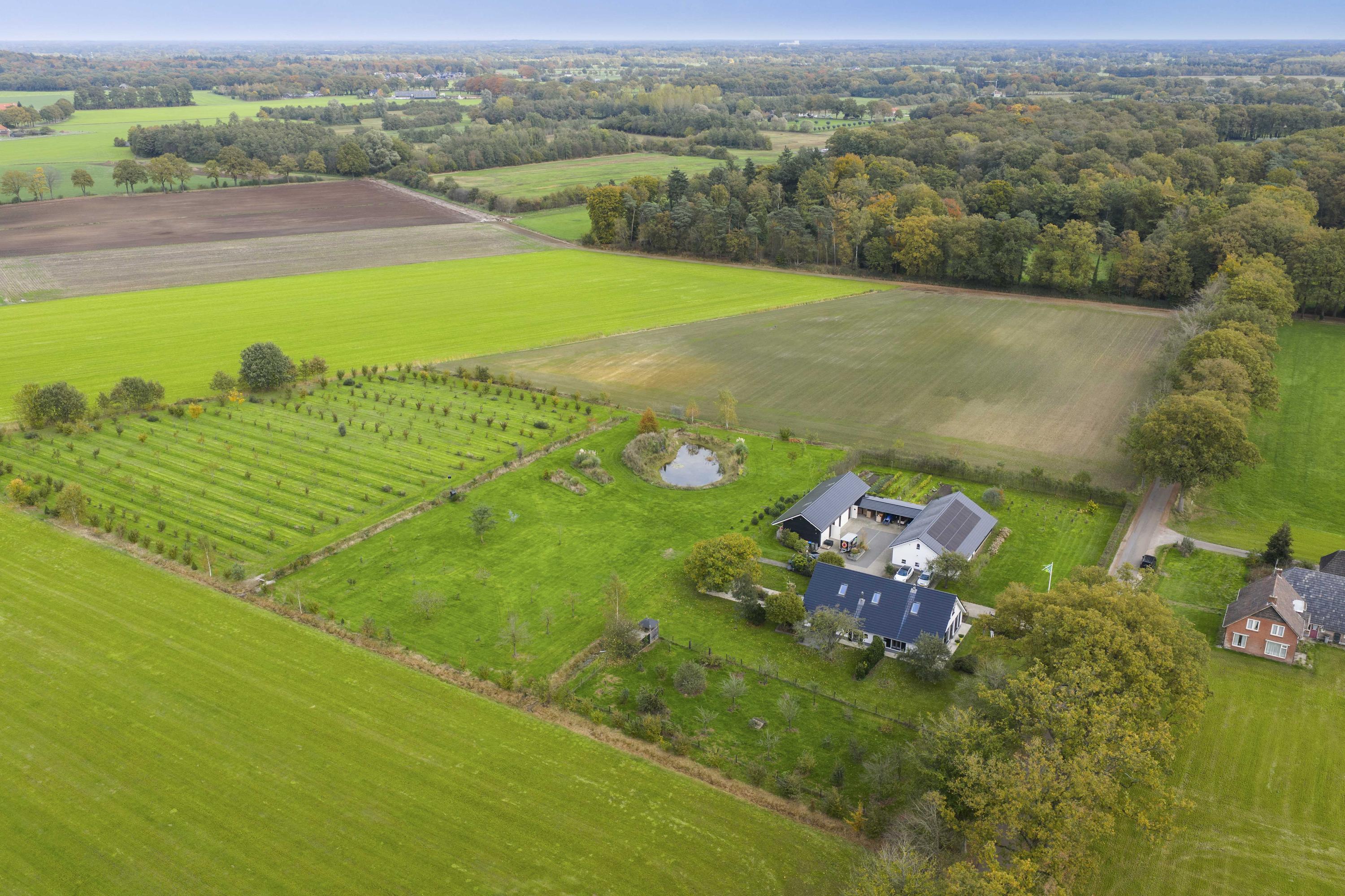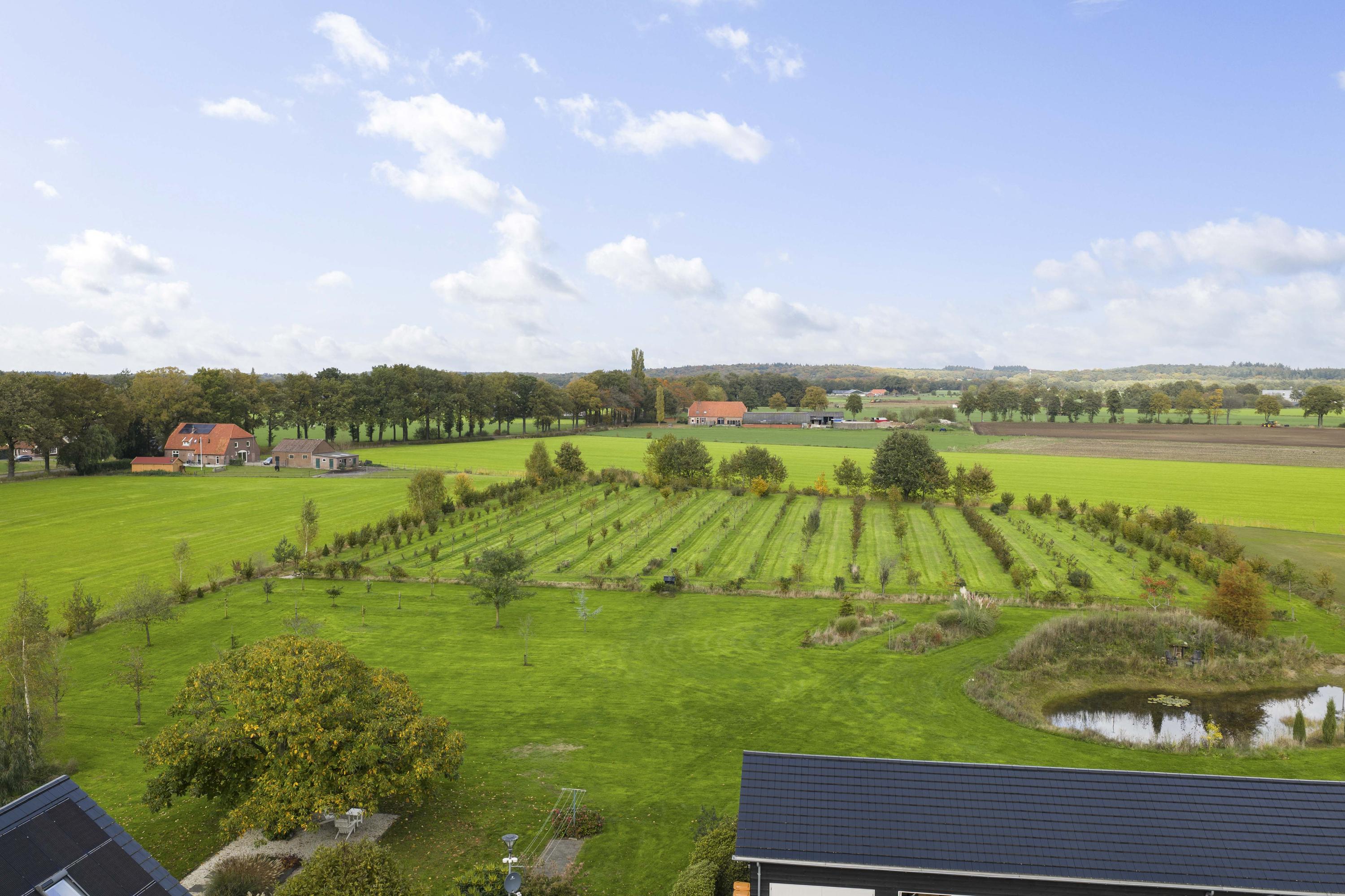 Stunning, sweeping views of the surrounding Achterhoek bocage landscape, with the Lochemse Berg as a backdrop and the exceptionally beautiful 42-hectare Hagenbeek nature reserve directly adjacent; this is one of the most beautiful spots in the Achterhoek. Here you will find peace and space, and experience the seasons and the countryside.