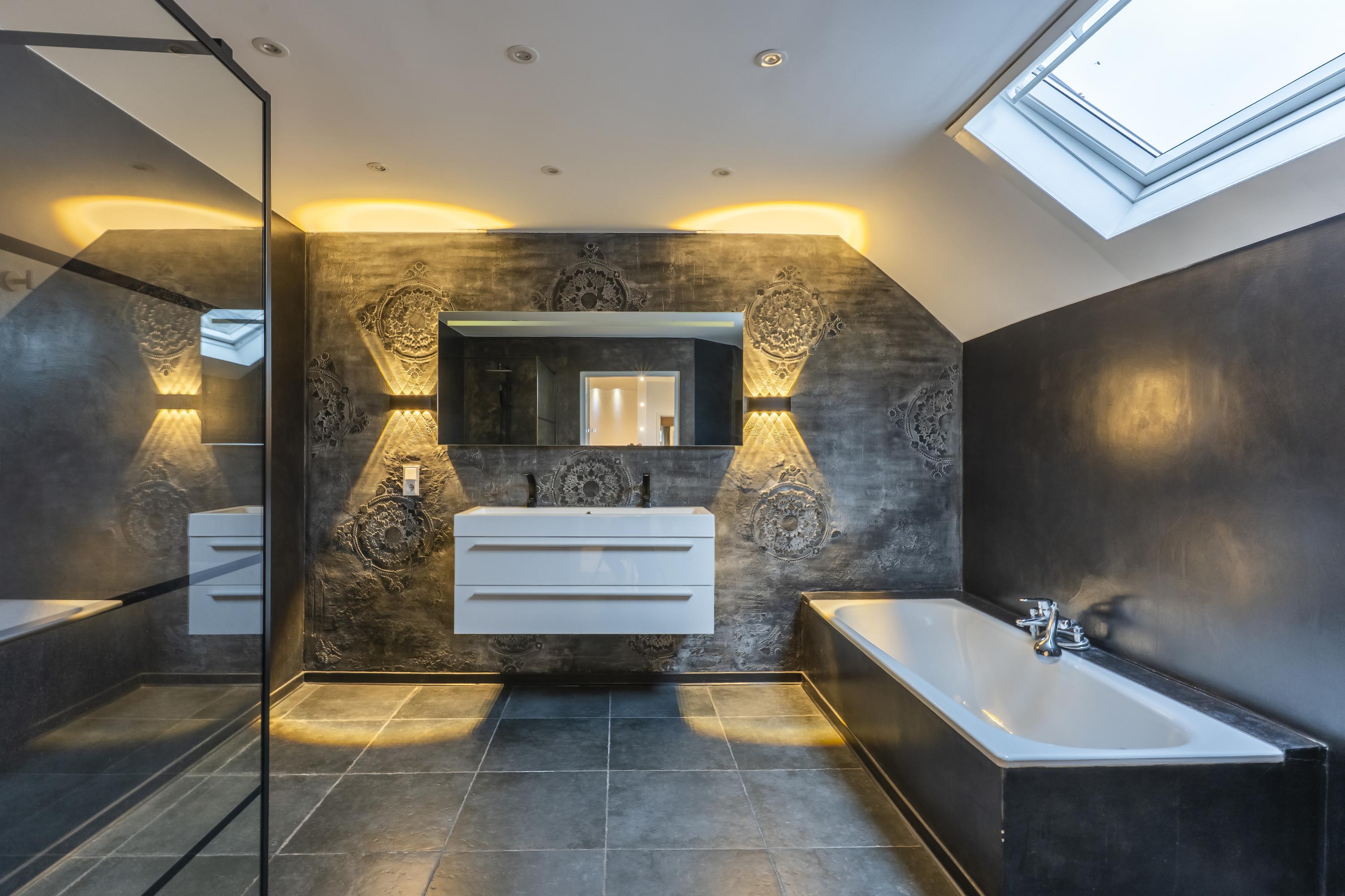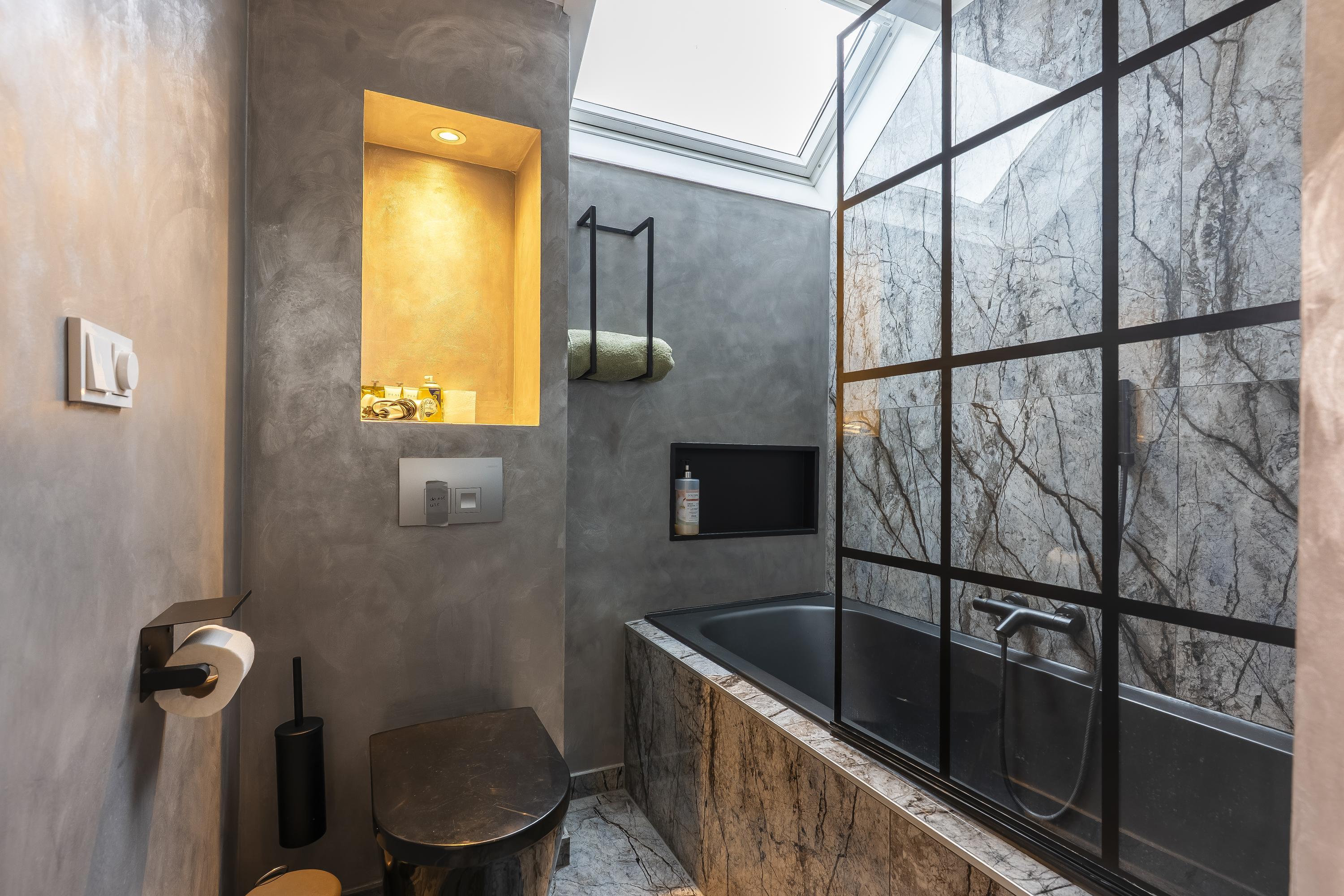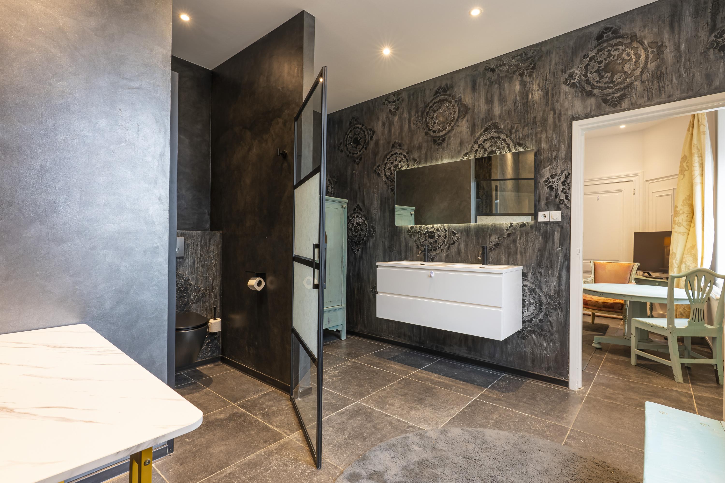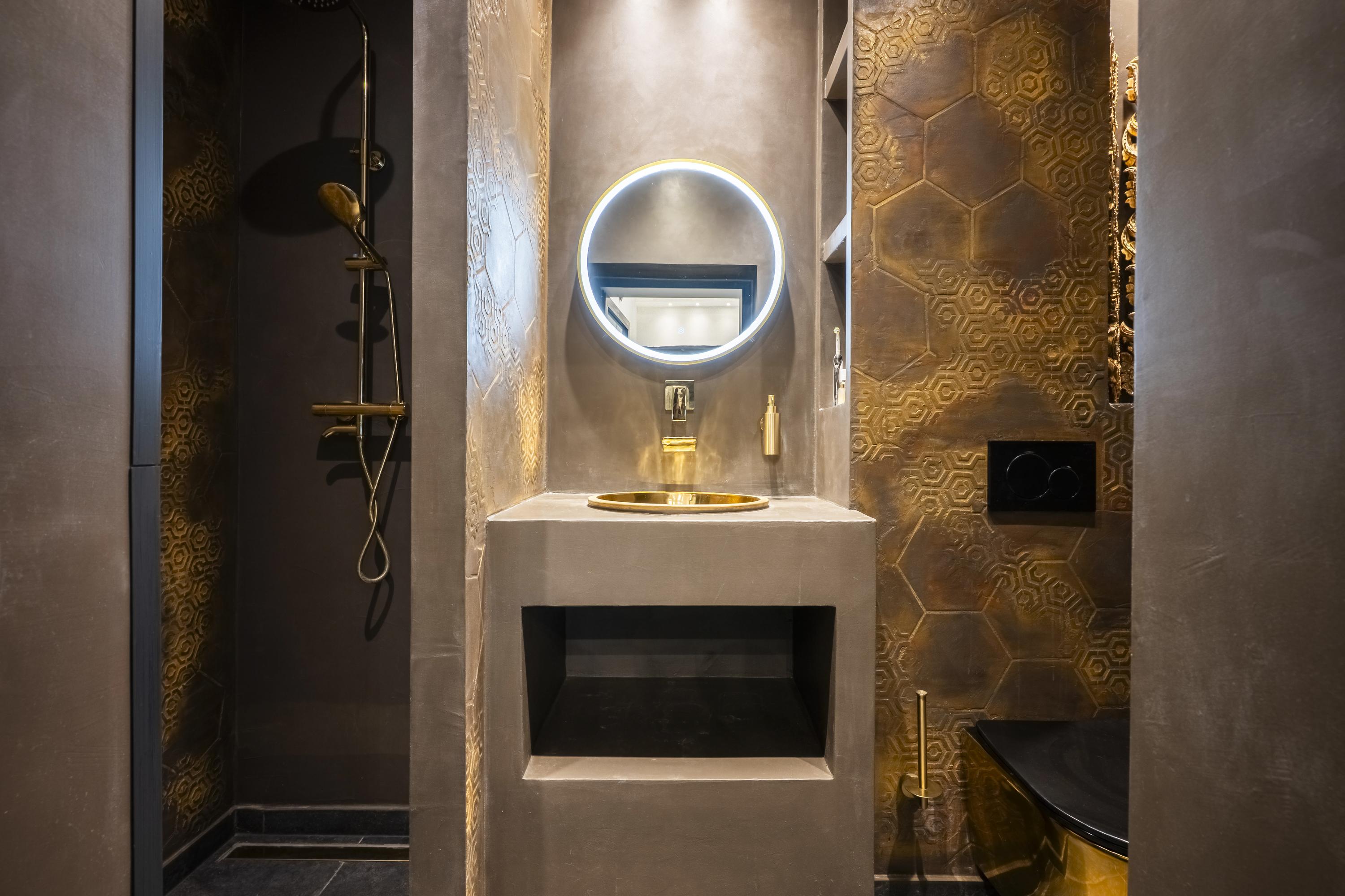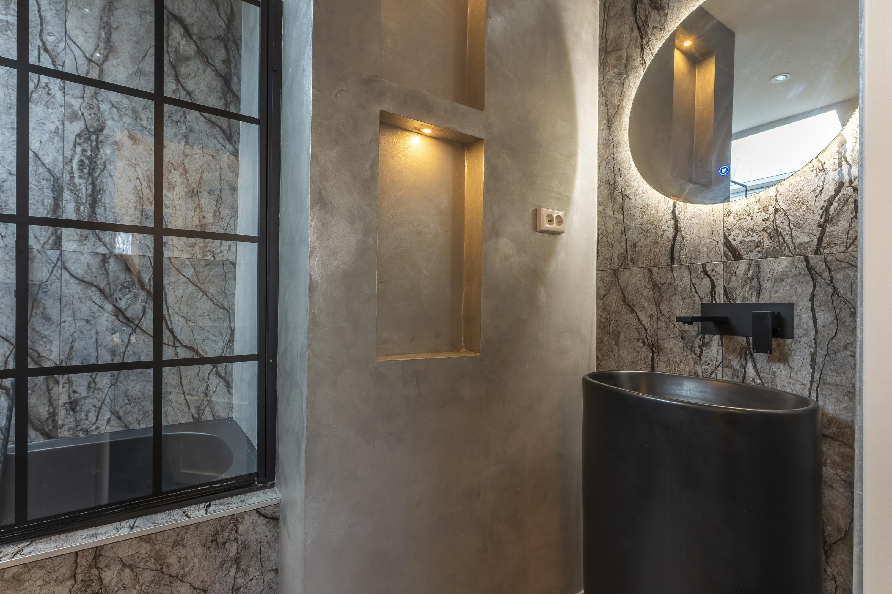 • its own bathroom in warm betonfresco