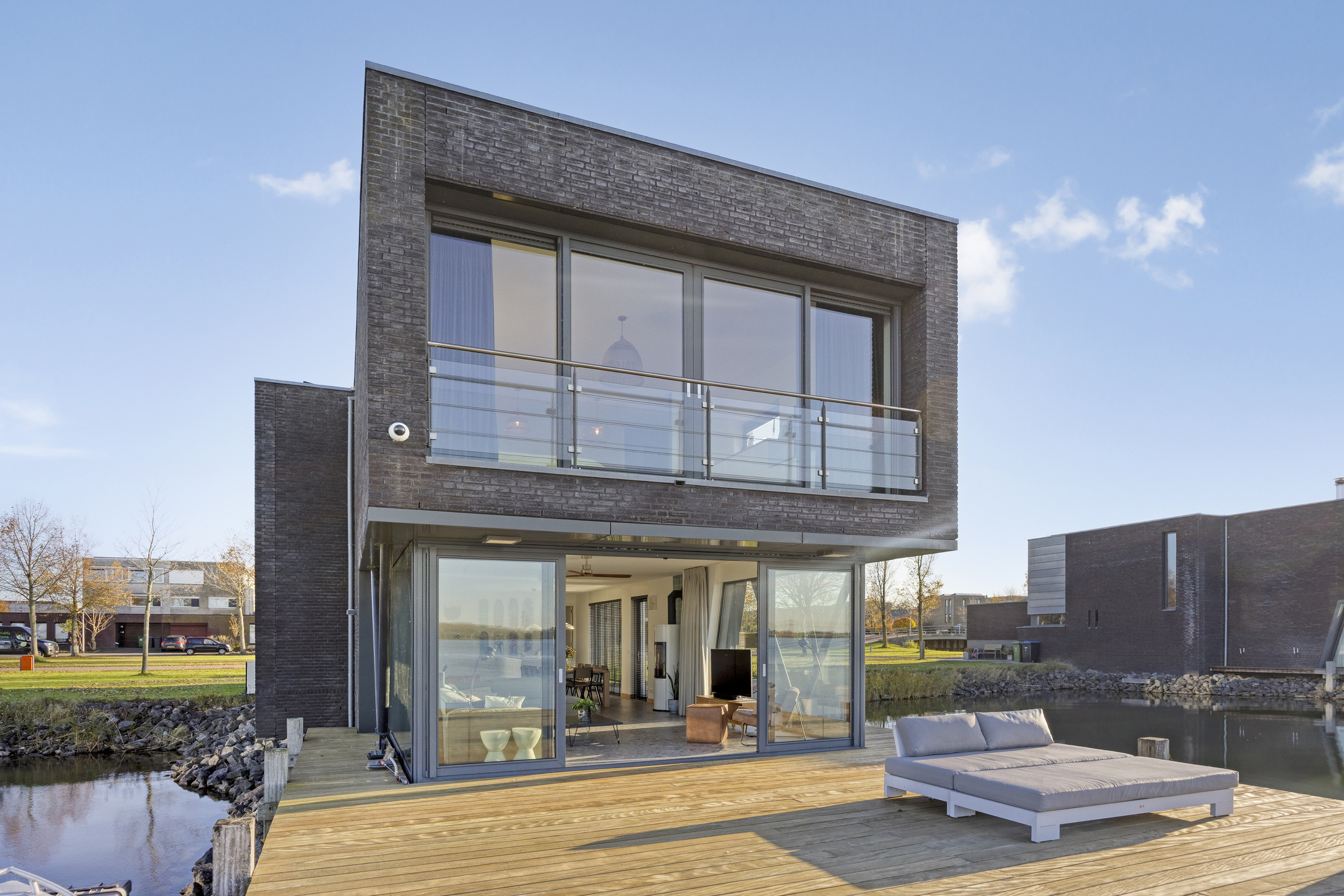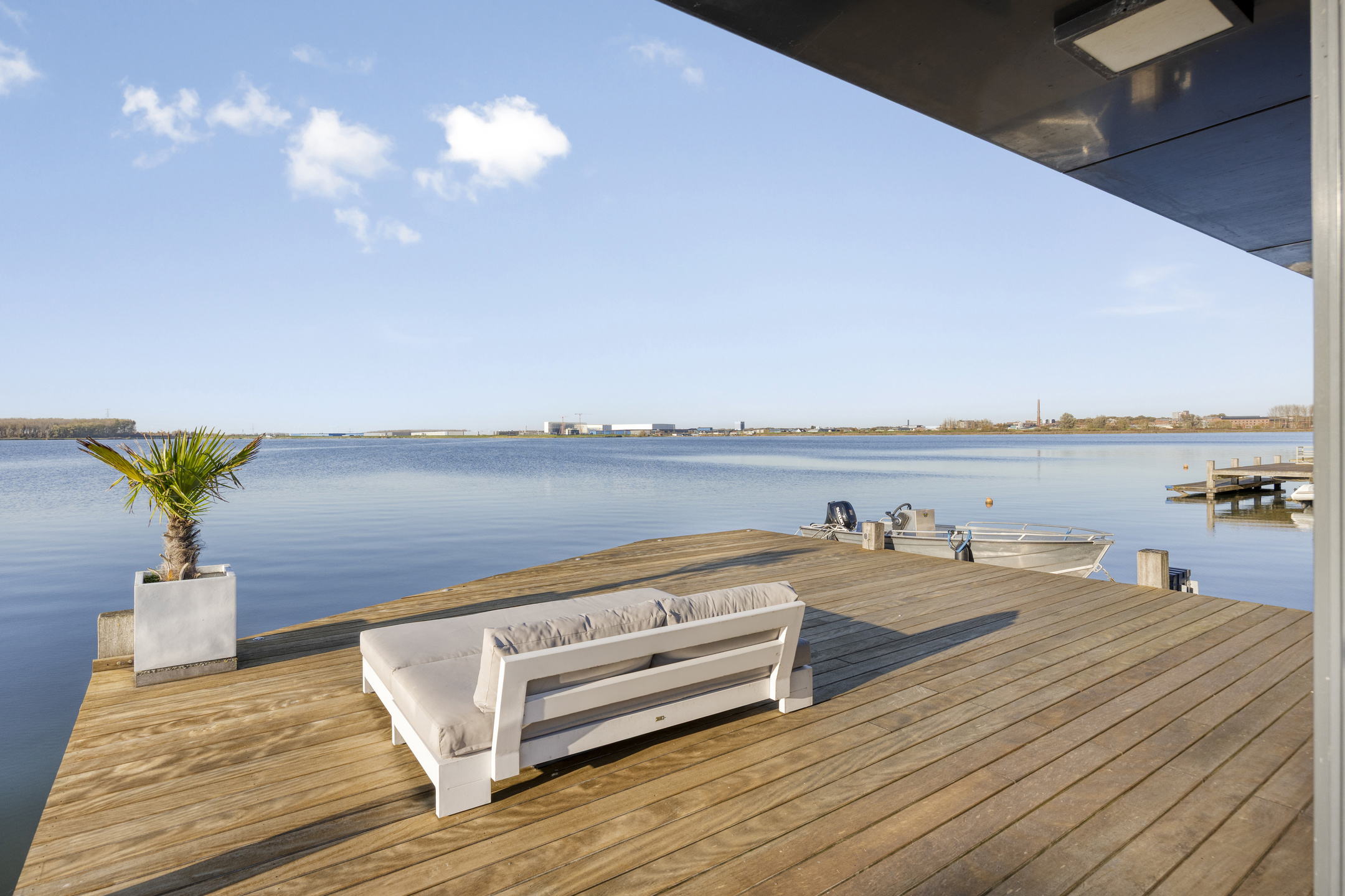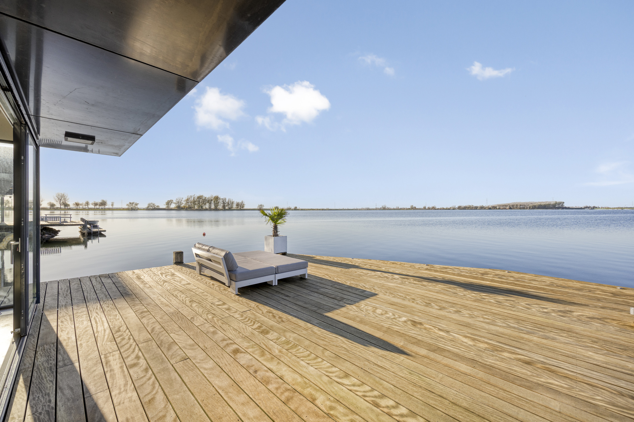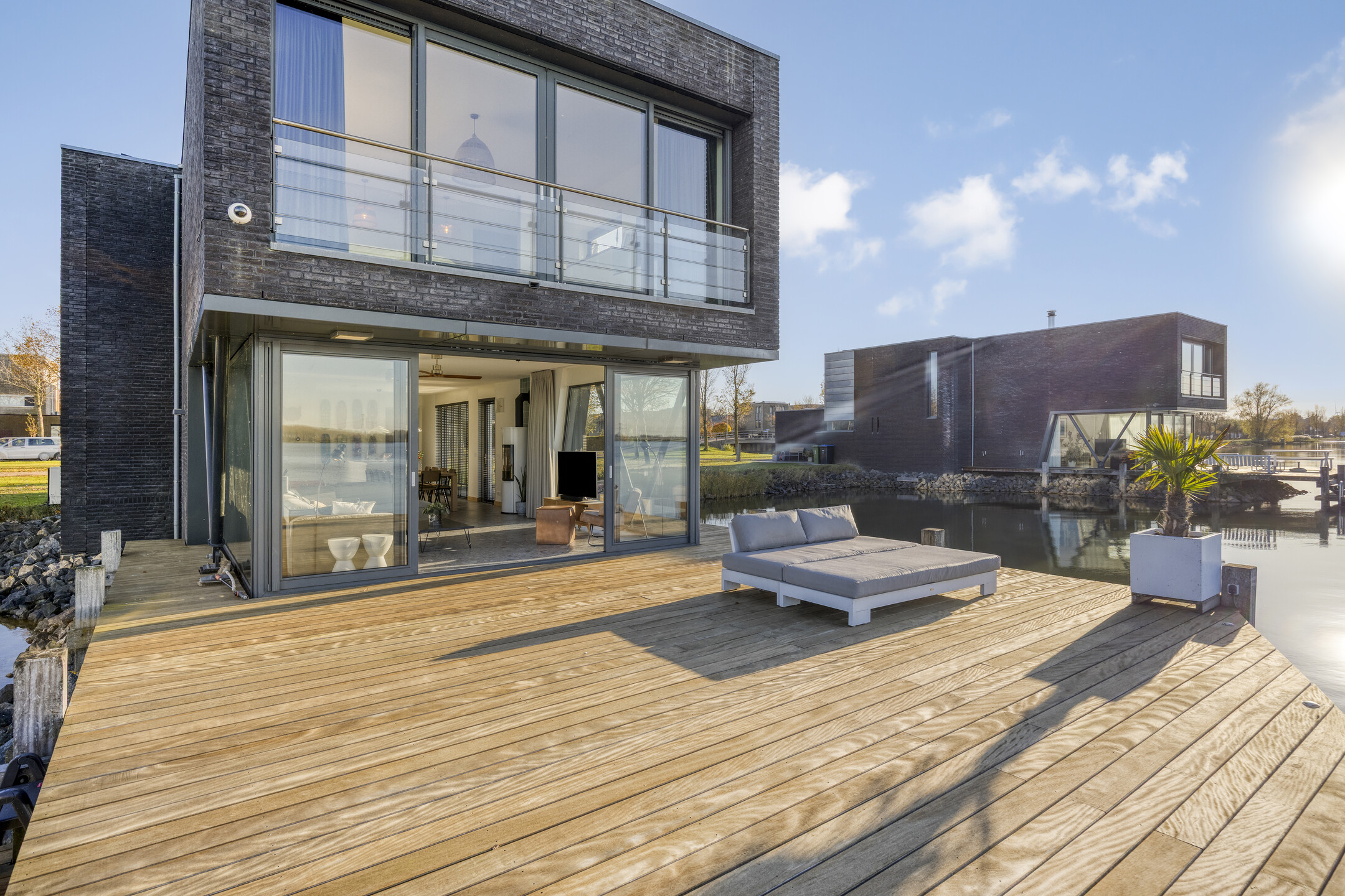 Outdoor living is pure enjoyment. The large deck offers ample space to relax, entertain, or dine with friends while enjoying the evening sun. Want to spend some time on the water? You can step straight into your own boat from the terrace and sail directly onto the Binnenschelde.