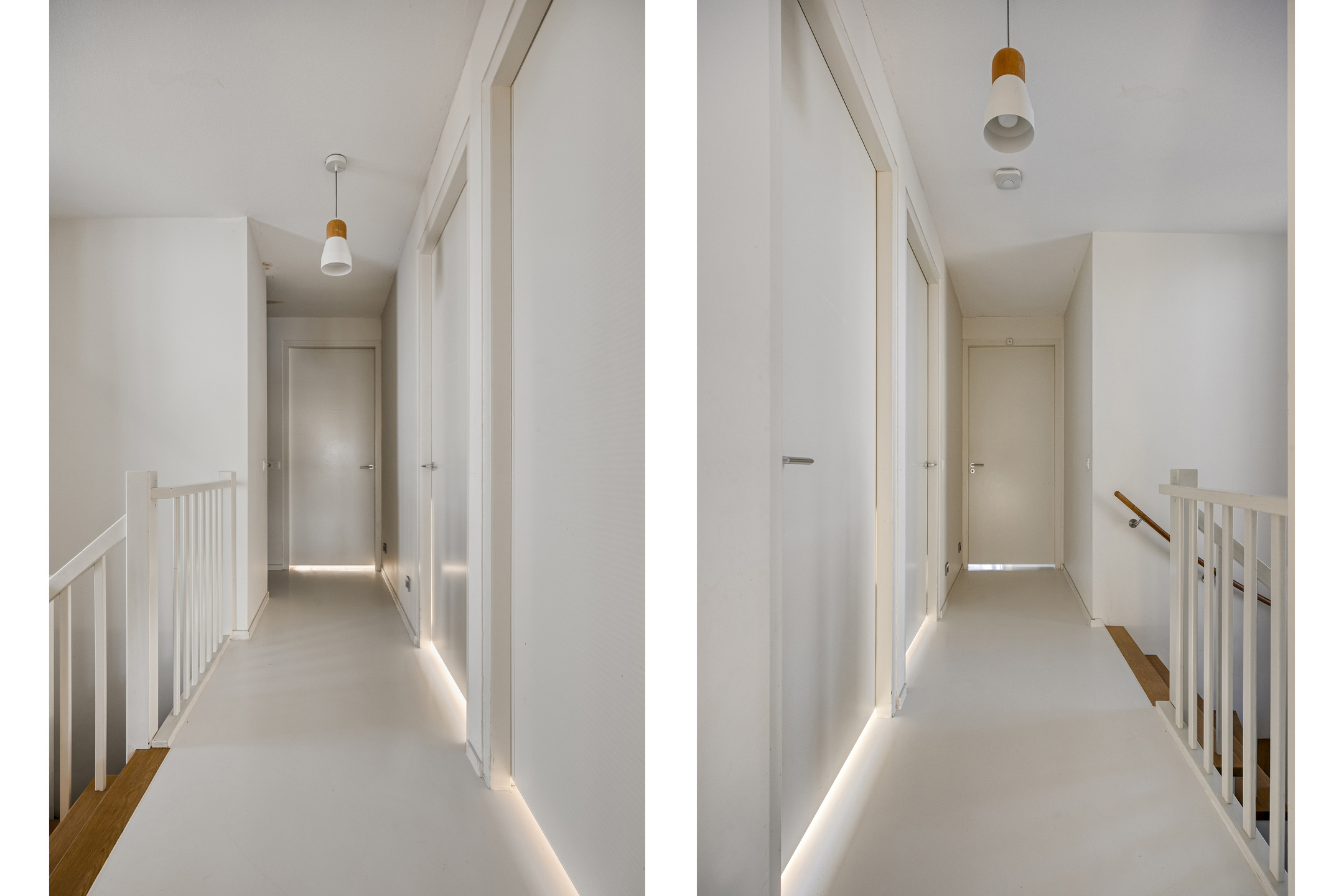Landing: plastered walls, poured floor, plastered ceiling, space for washing machine and dryer.