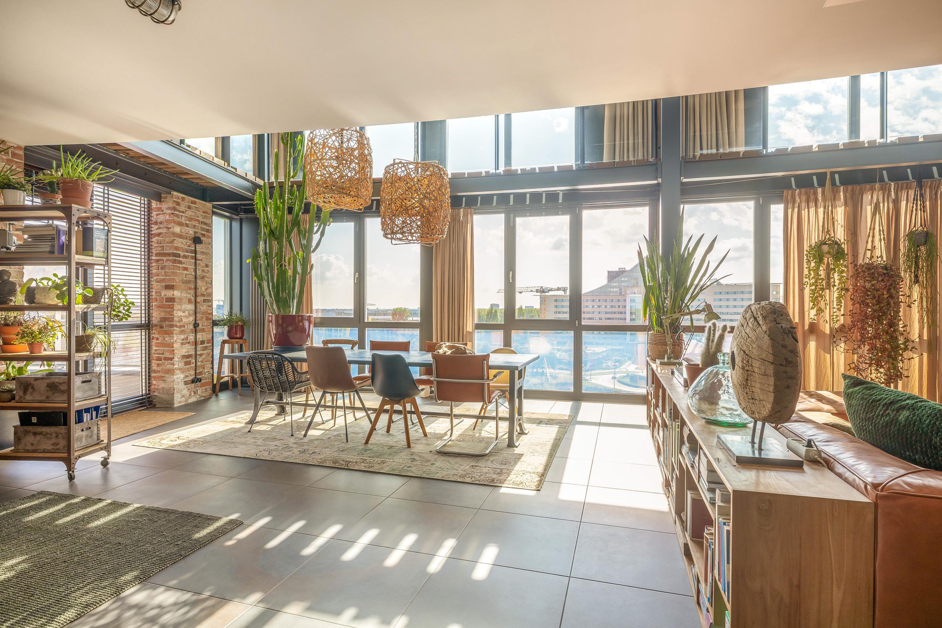 Living at a higher level takes on a whole new meaning here. This double penthouse on the 8th and 9th floors offers a whopping 251 m² of living space, making it a rare and exceptionally spacious city apartment. Everything about this home exudes comfort, luxury, and privacy. With no direct neighbours, you’ll enjoy peace, quiet, and total freedom. The panoramic windows offer breathtaking views of the Rotterdam skyline, the Brienenoord Bridge, and the lights of De Kuip – a view that never gets old. And it continues seamlessly into the outdoor space: spread across two levels, you have a total of 98 m² of roof terraces, ideally positioned to the southeast and southwest. That means: morning sun and evening sun with stunning sunsets.