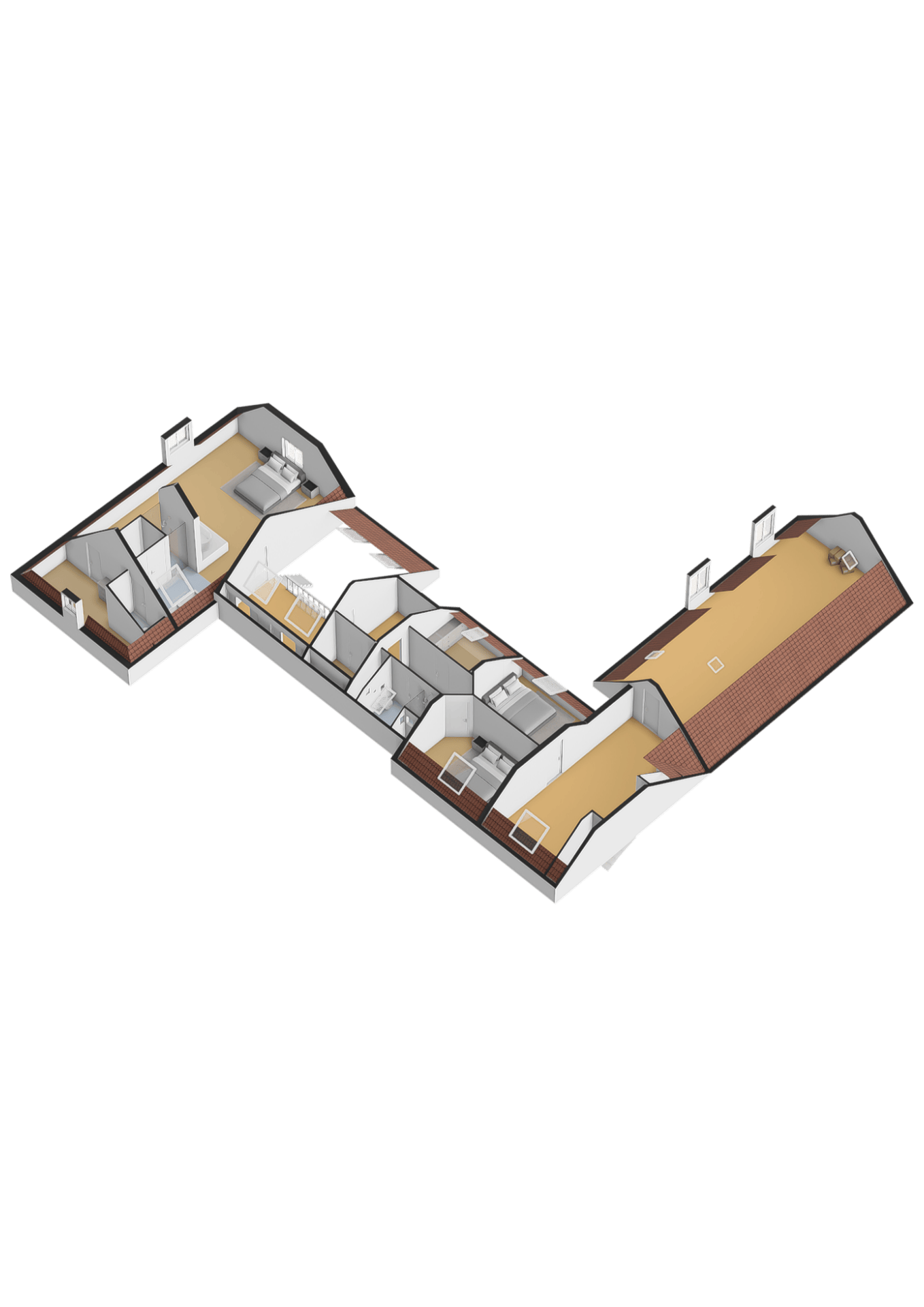 - Master bedroom (65 m²) with en-suite bathroom and walk-in closet;