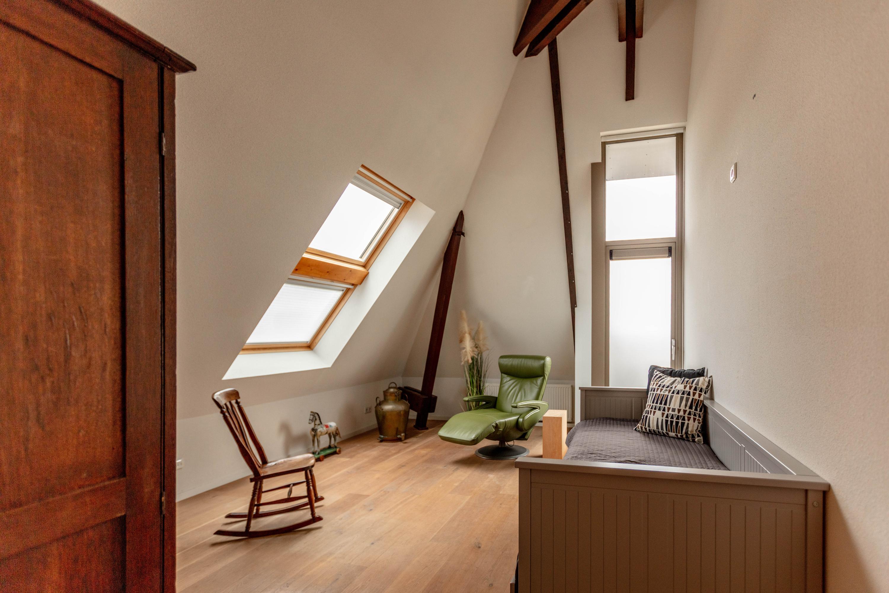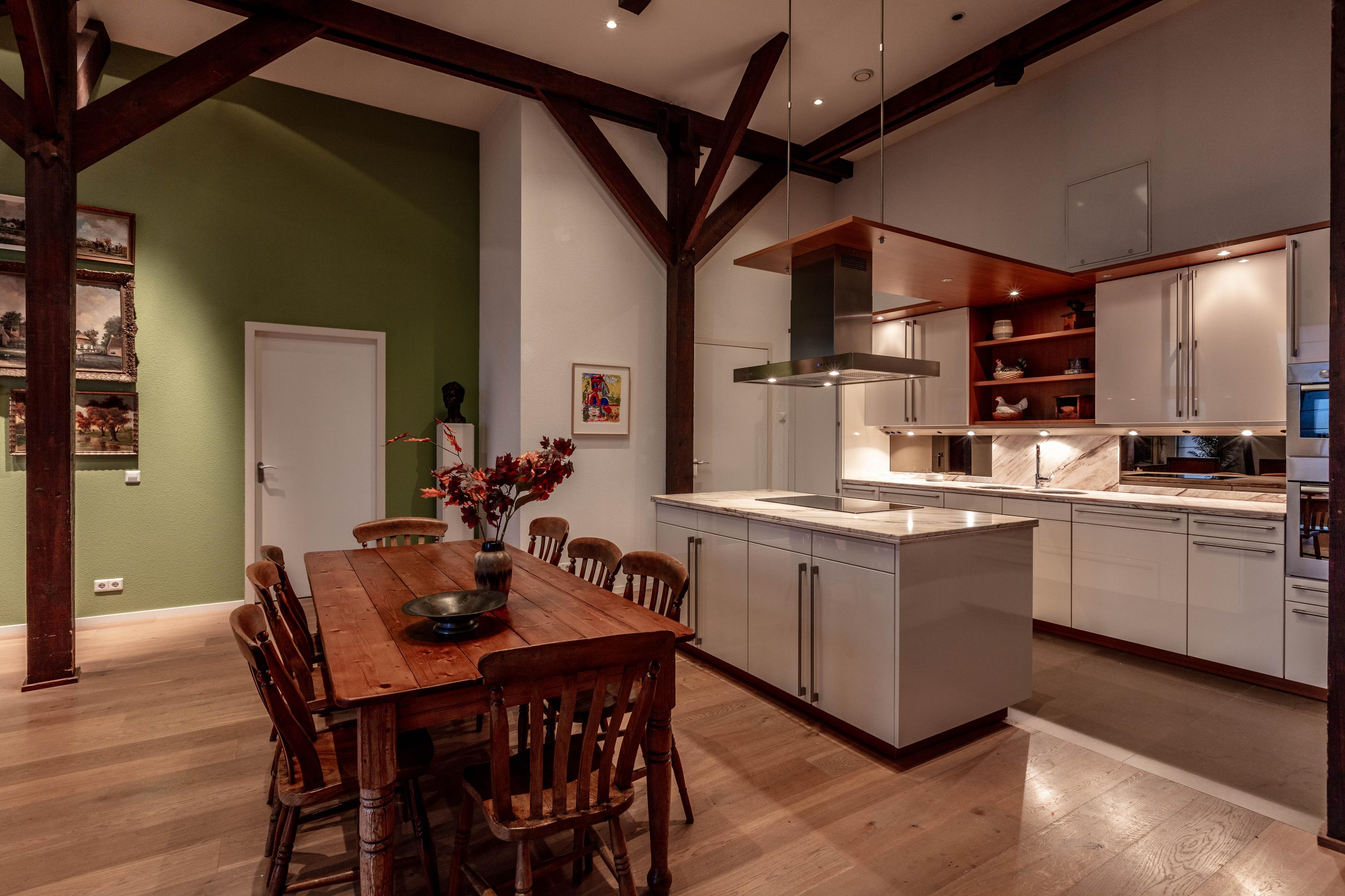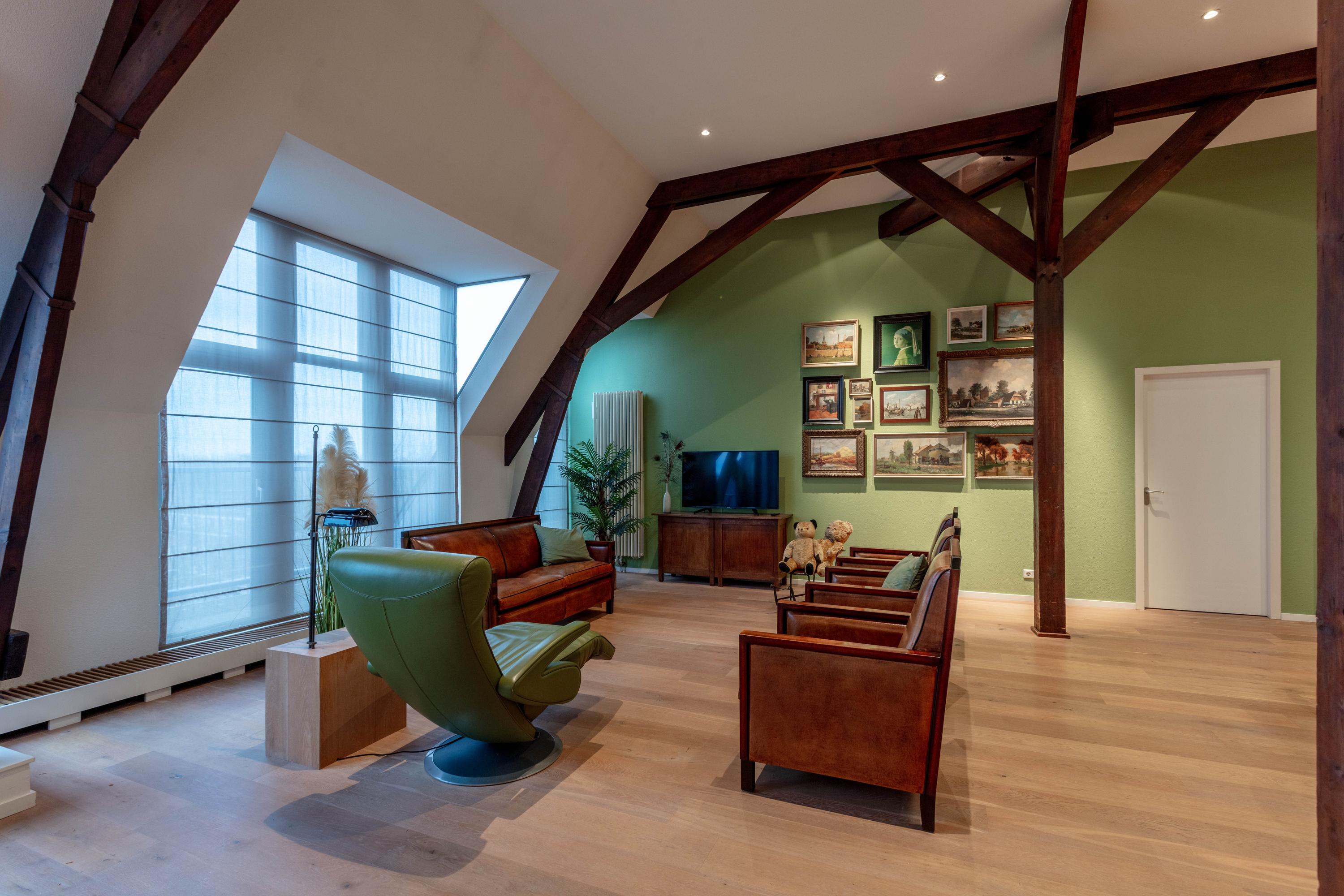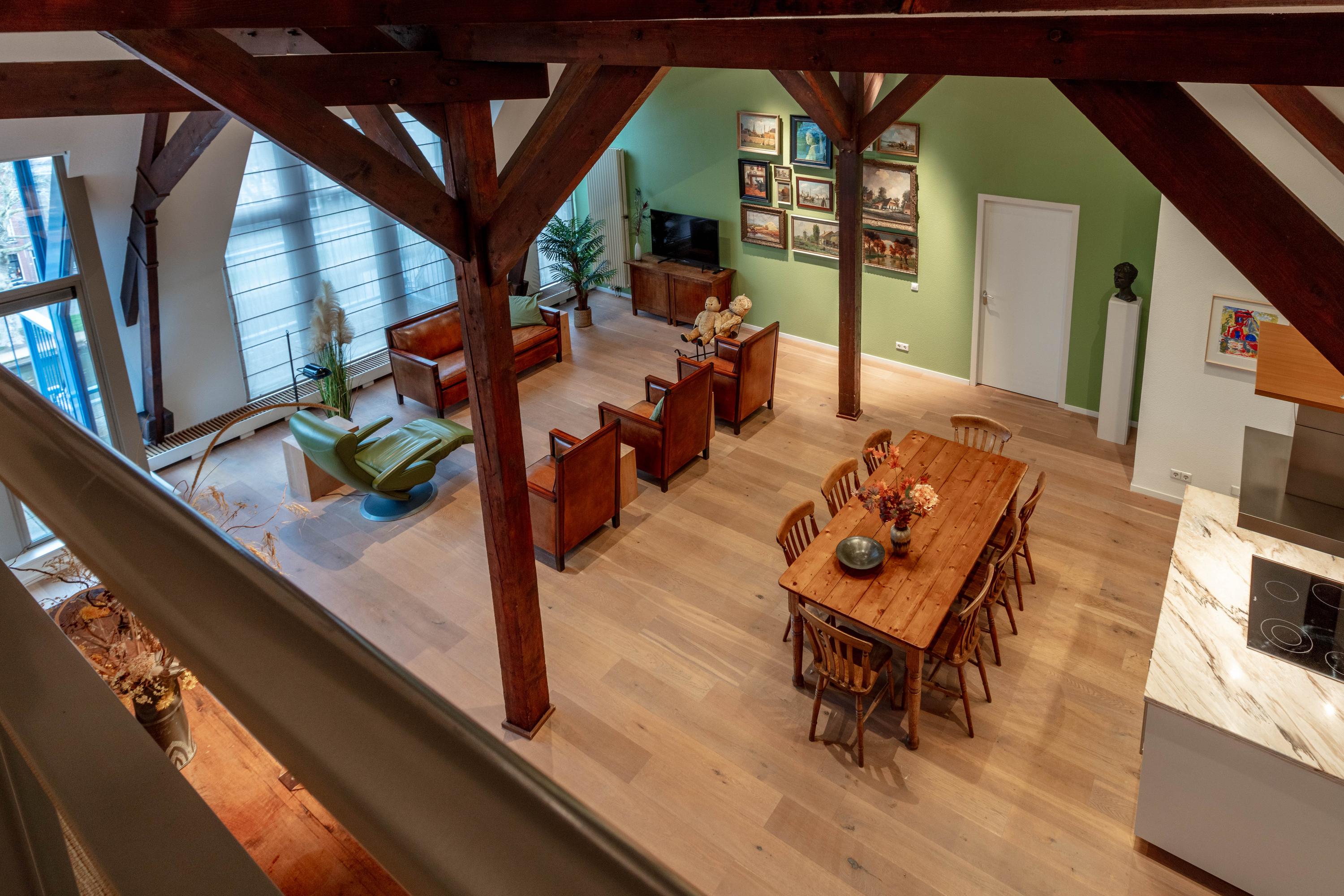 Apartment Delft with lift offers a rare opportunity to reside in a striking heritage setting within the city centre. Set in the former TU-library, this duplex top floor residence blends monumentality and modern living across 193 m². The apartment is accessed by a private lift, offering comfort for every stage of life.