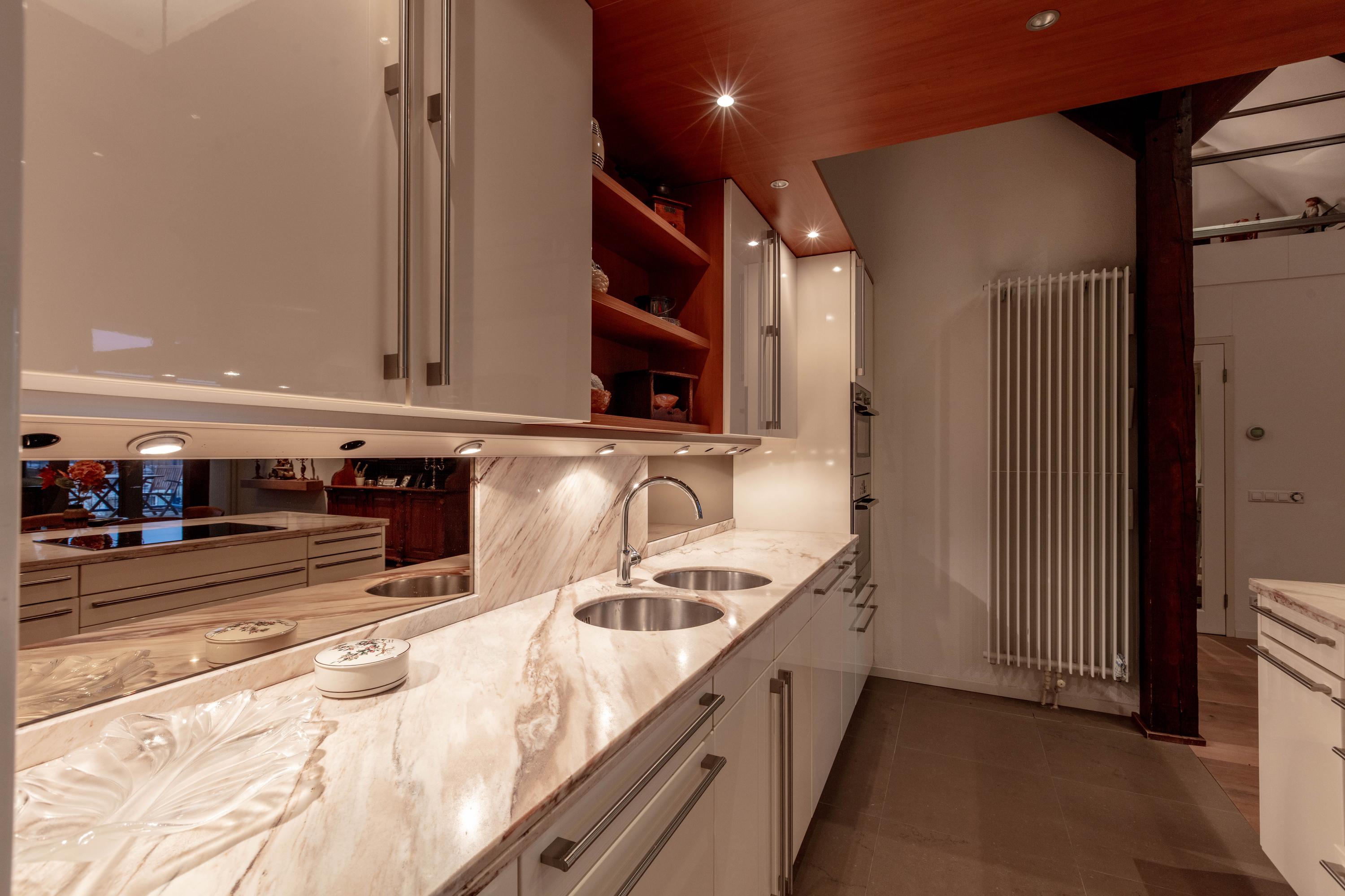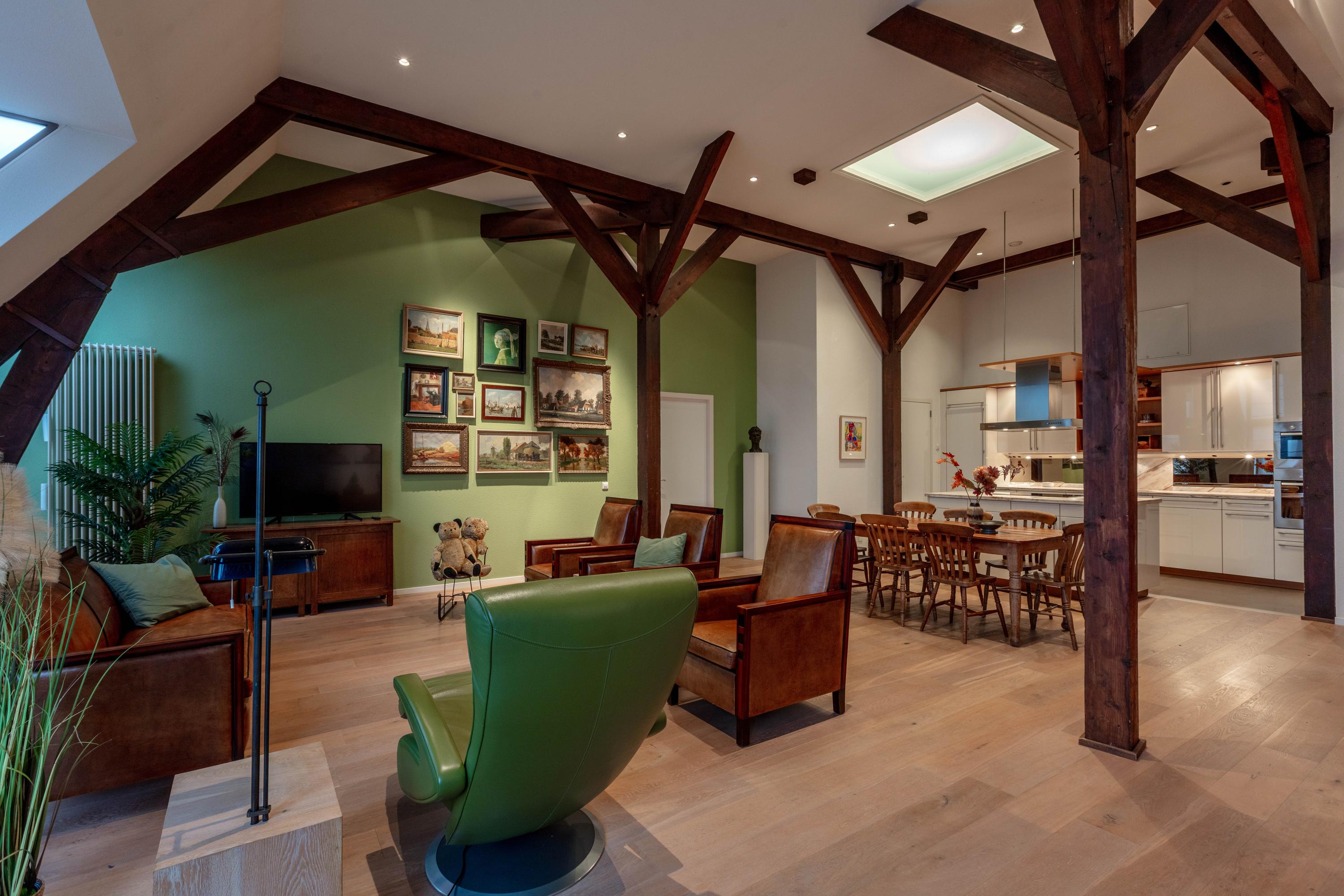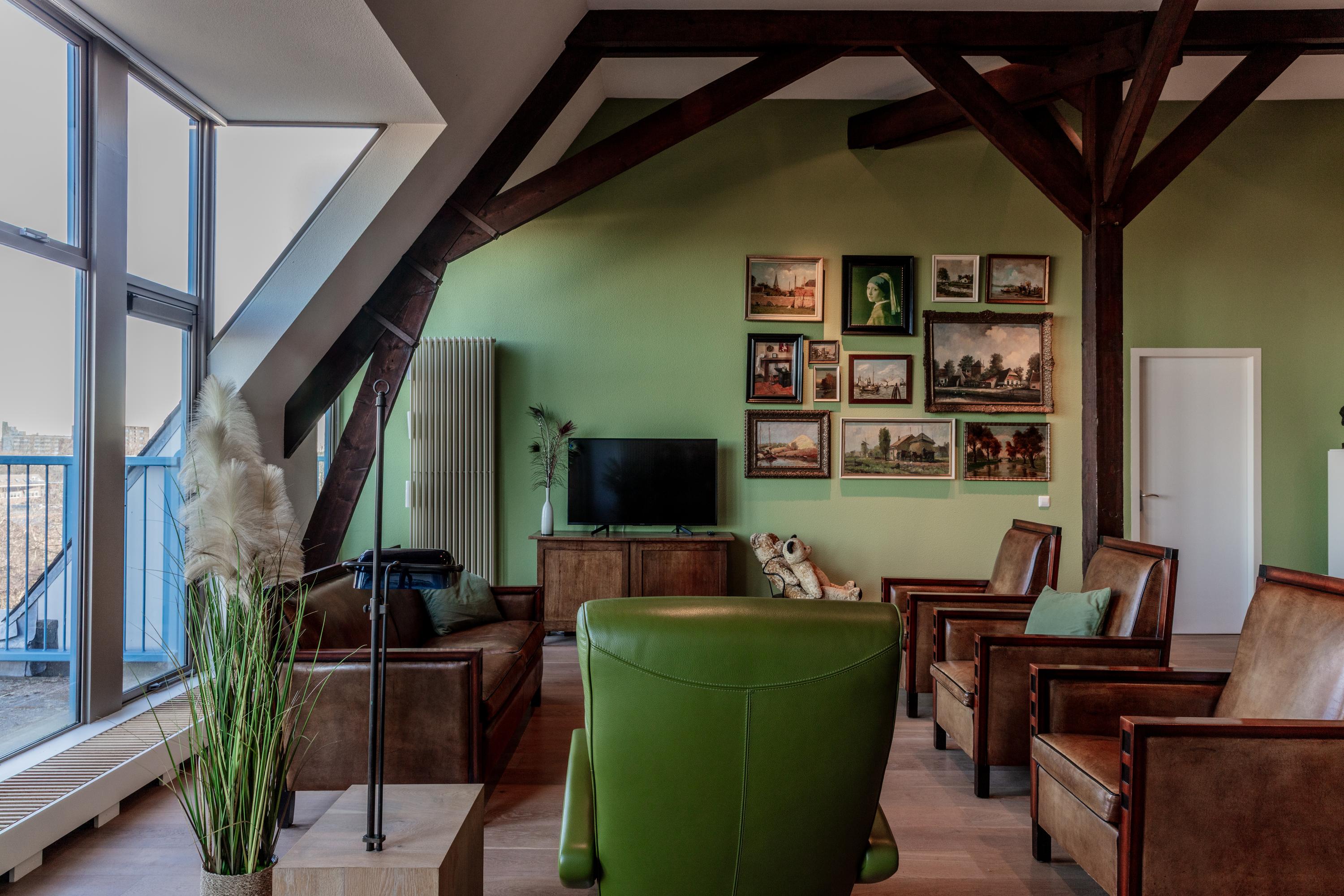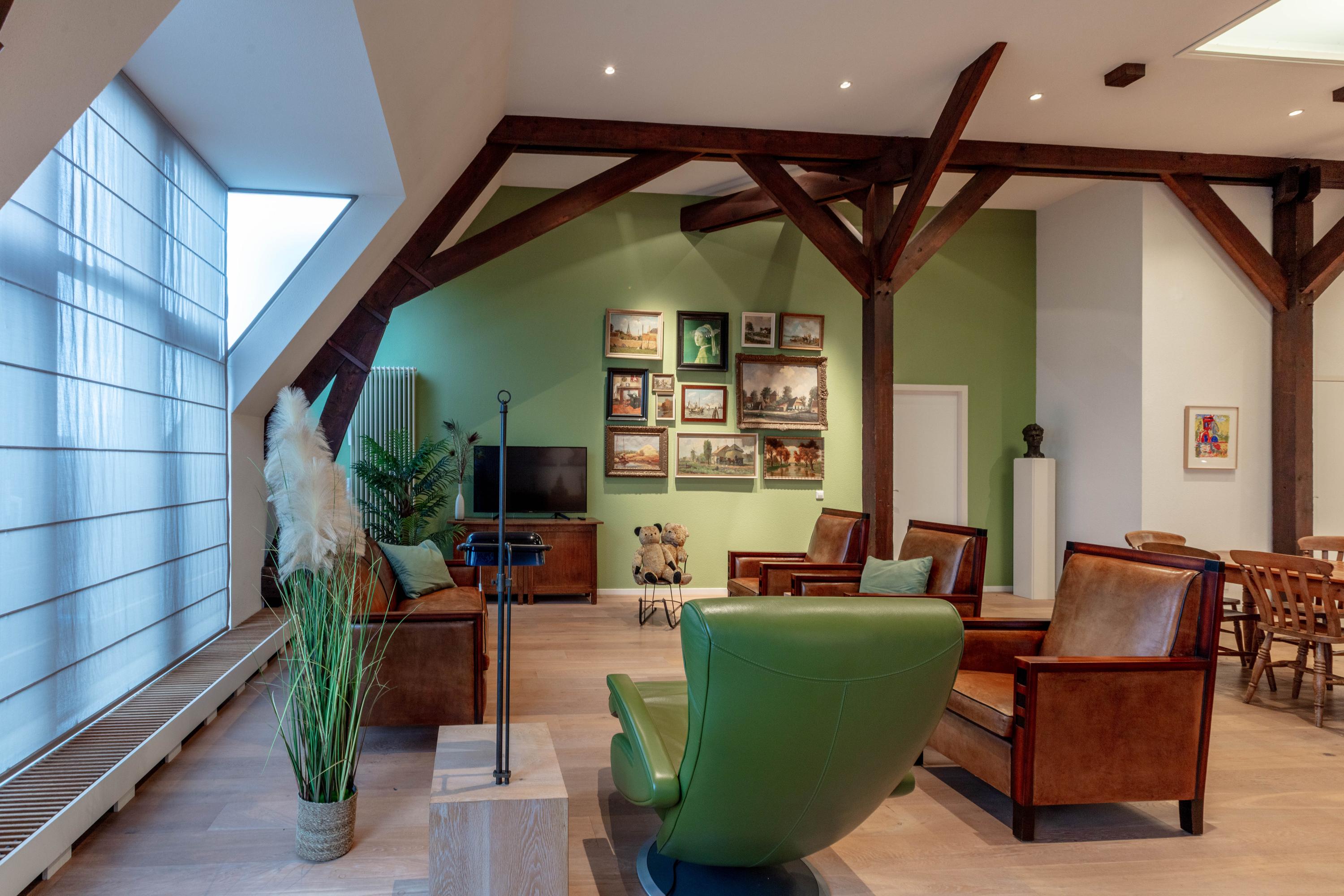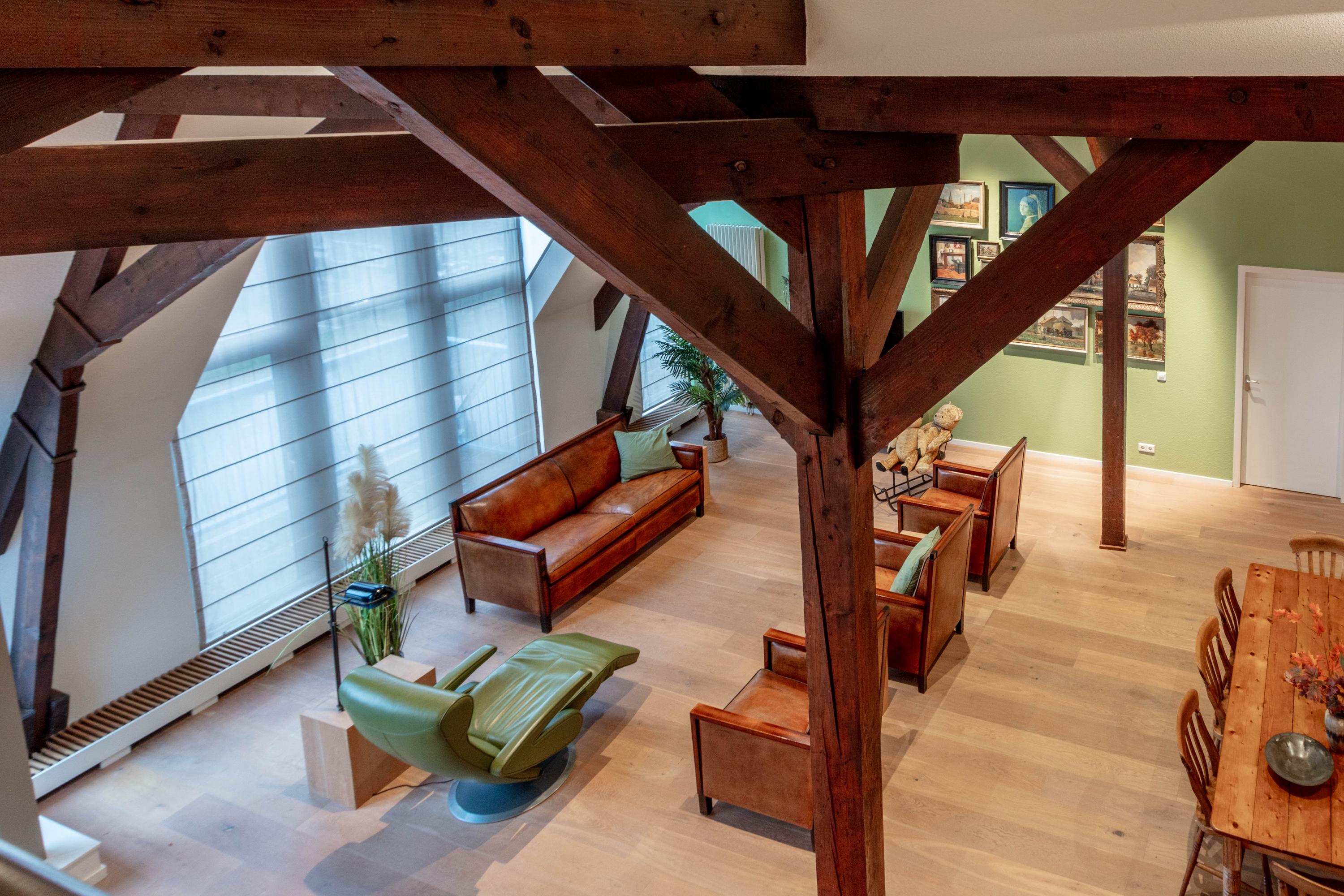 Apartment Delft with lift offers a rare opportunity to reside in a striking heritage setting within the city centre. Set in the former TU-library, this duplex top floor residence blends monumentality and modern living across 193 m². The apartment is accessed by a private lift, offering comfort for every stage of life.