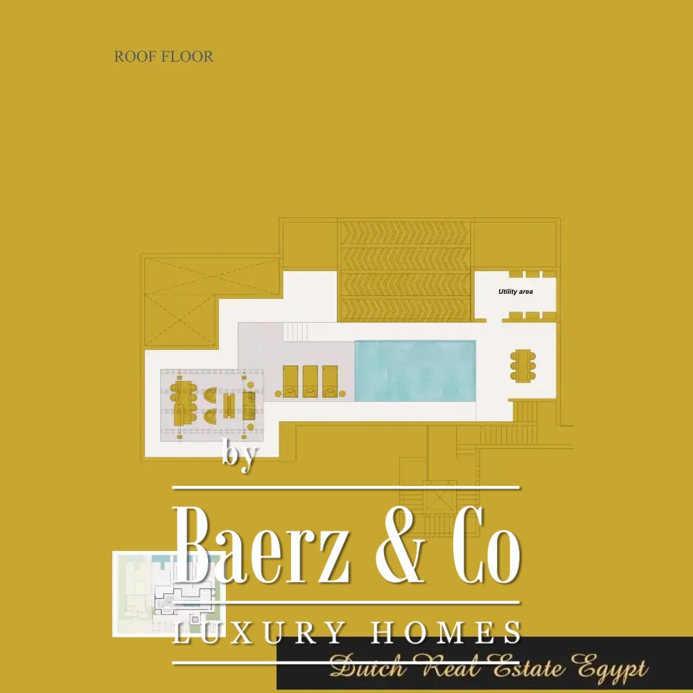Natural light moves easily through the villa, enhancing its generous proportions and highlighting thoughtful architectural lines. A private swimming pool invites relaxed afternoons, while the balcony and expansive roof terrace frame tranquil views, shaping a setting that transitions effortlessly from day to night.