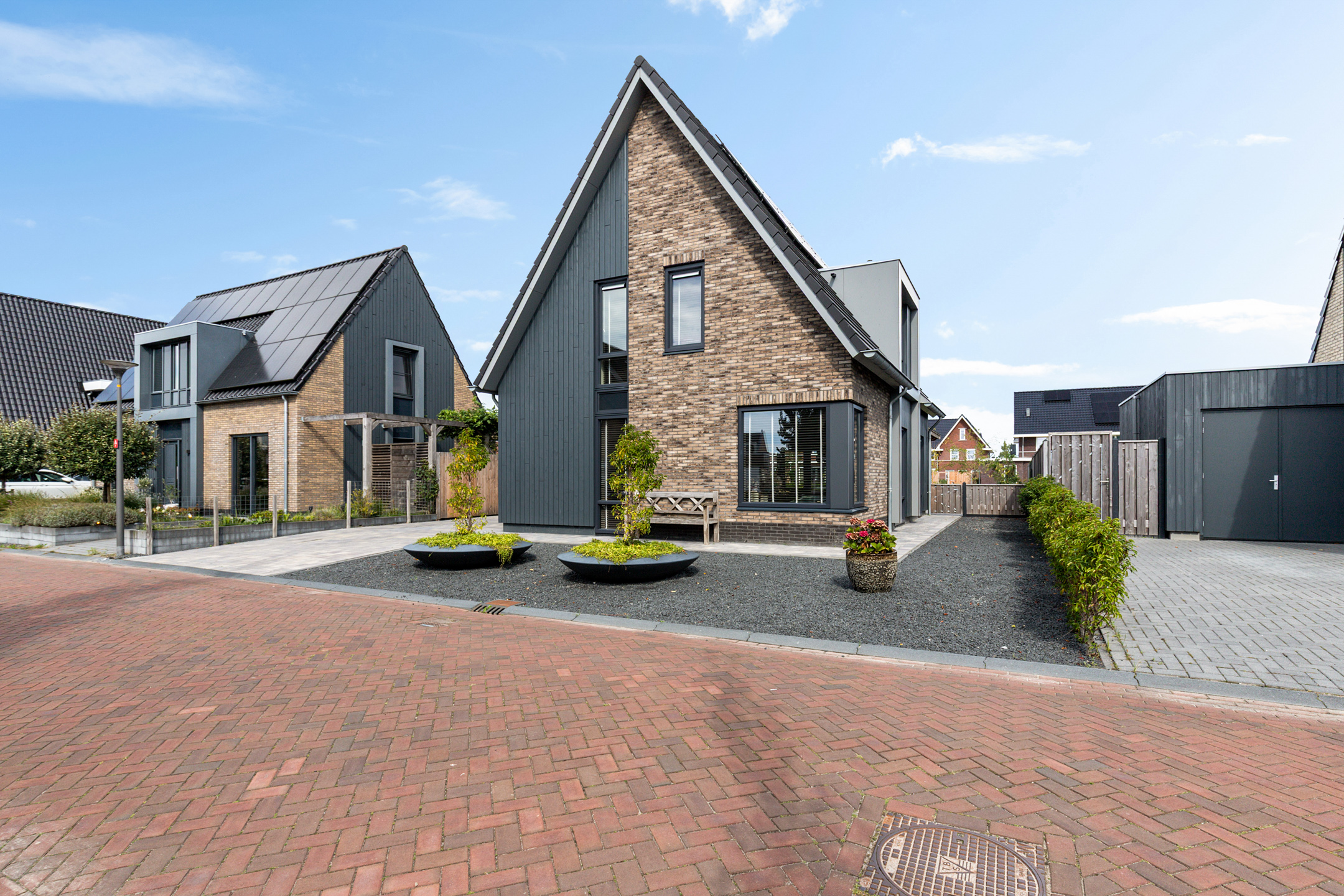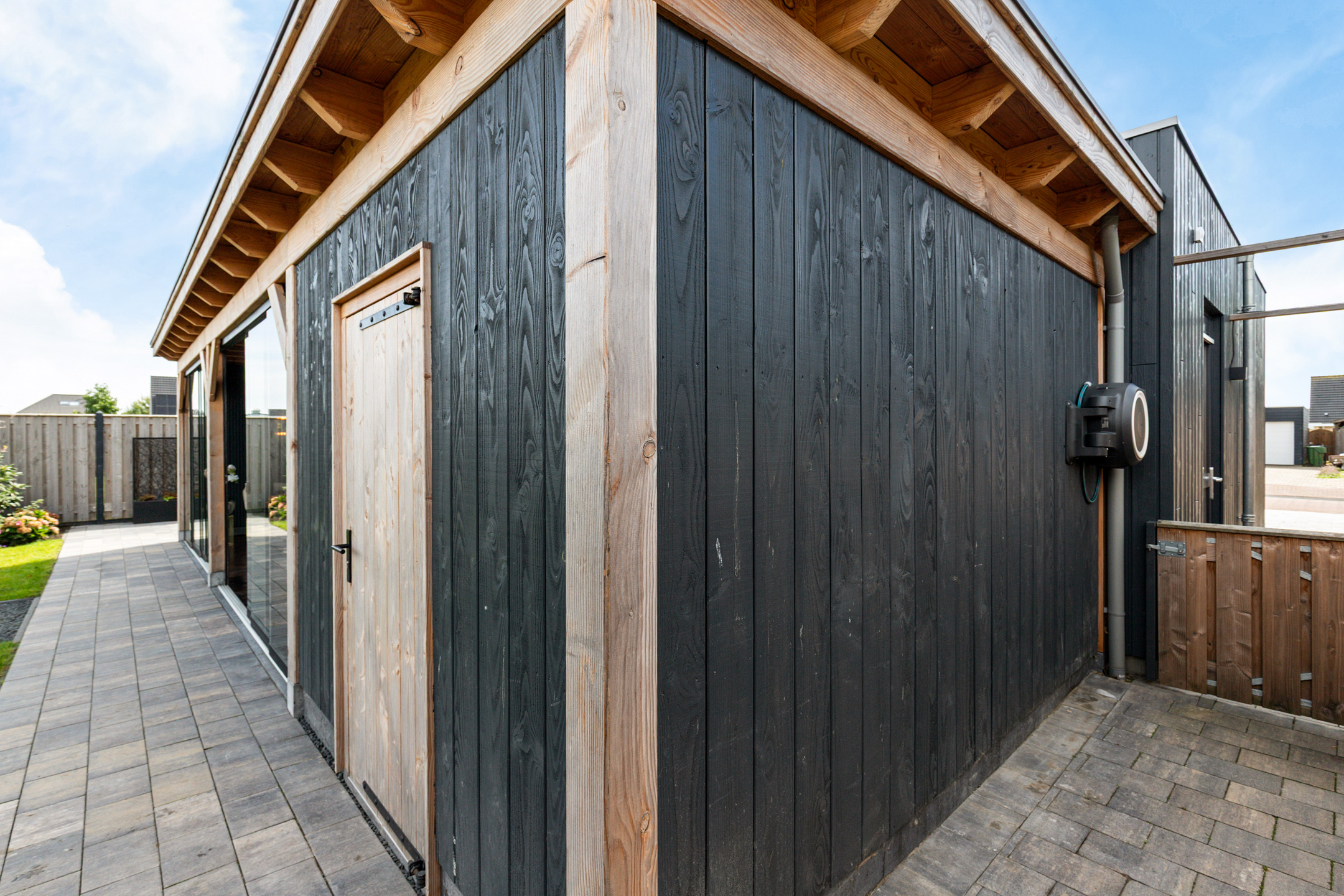 At the rear, the villa adjoins a spacious, partly insulated wooden storage unit – ideal for bicycles, garden equipment and water sports essentials.