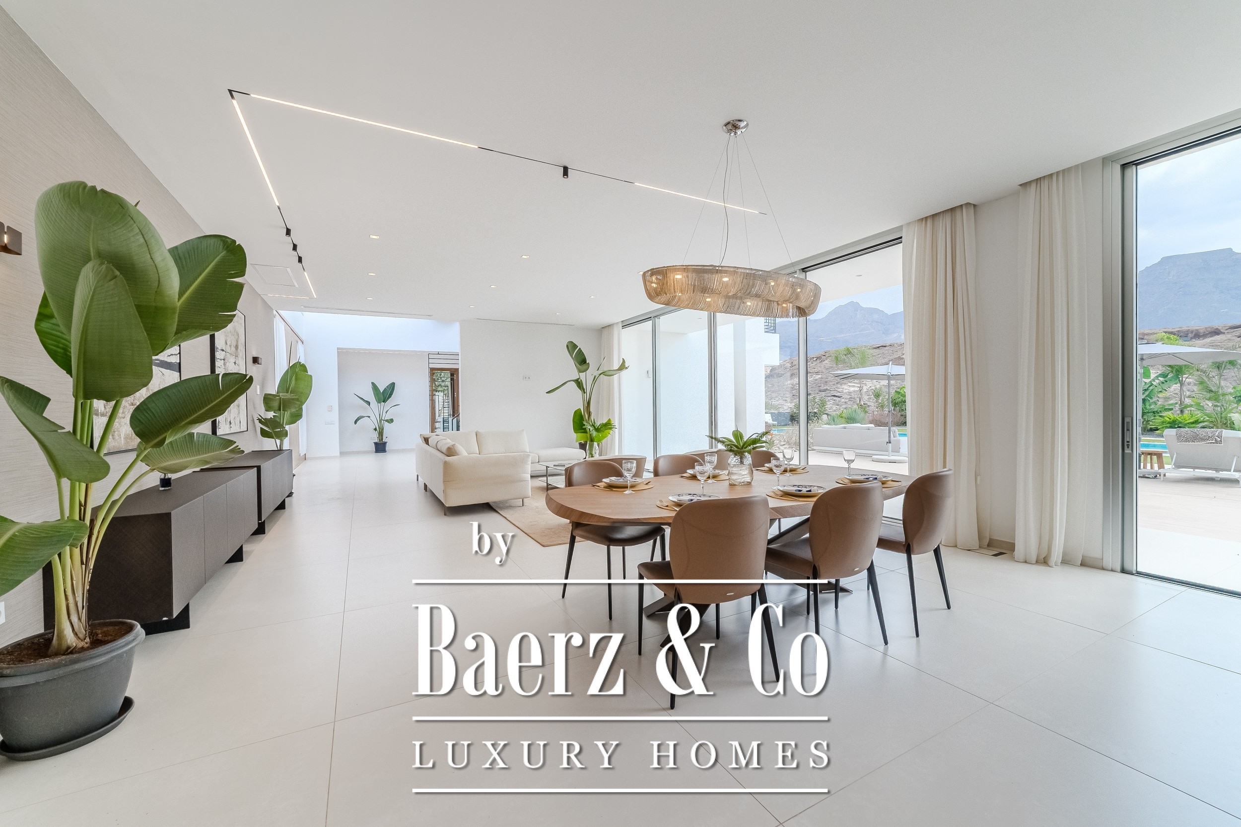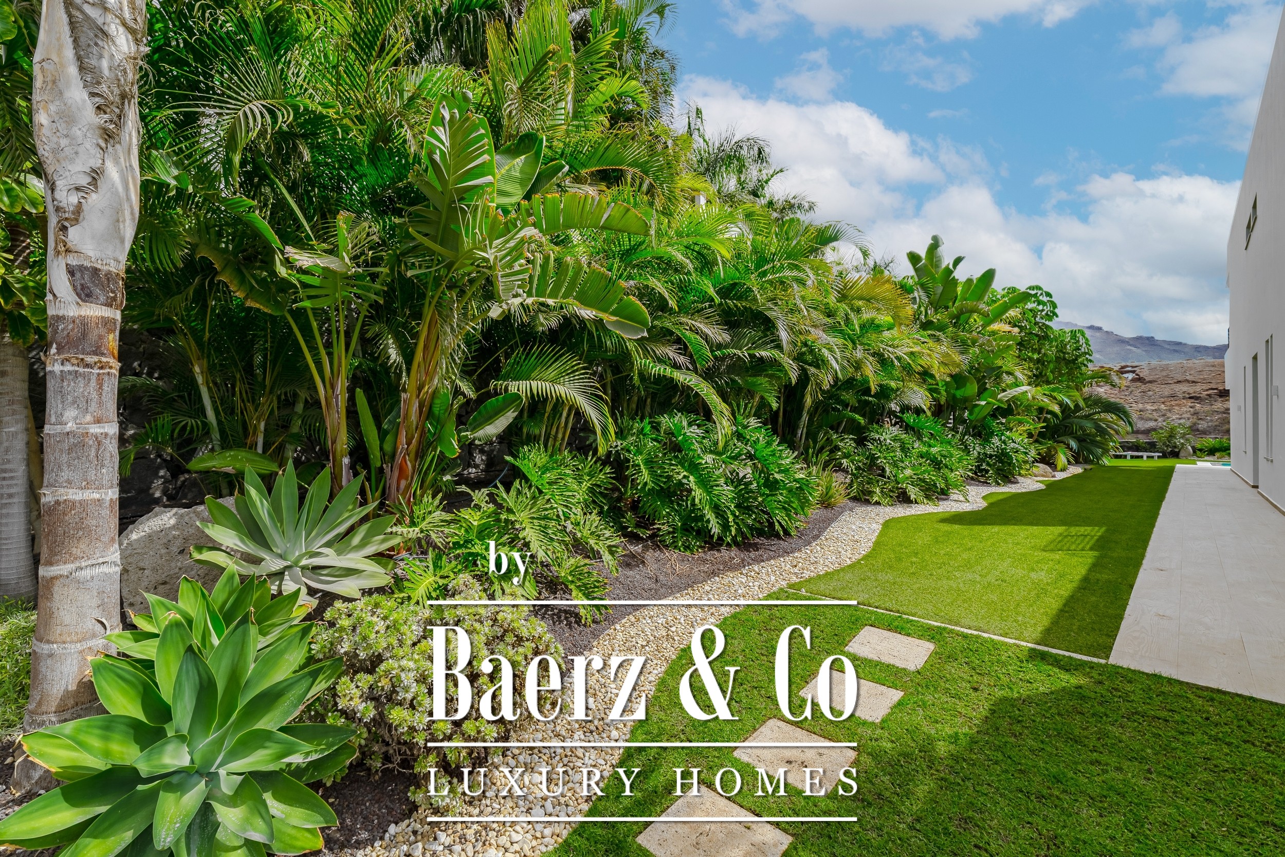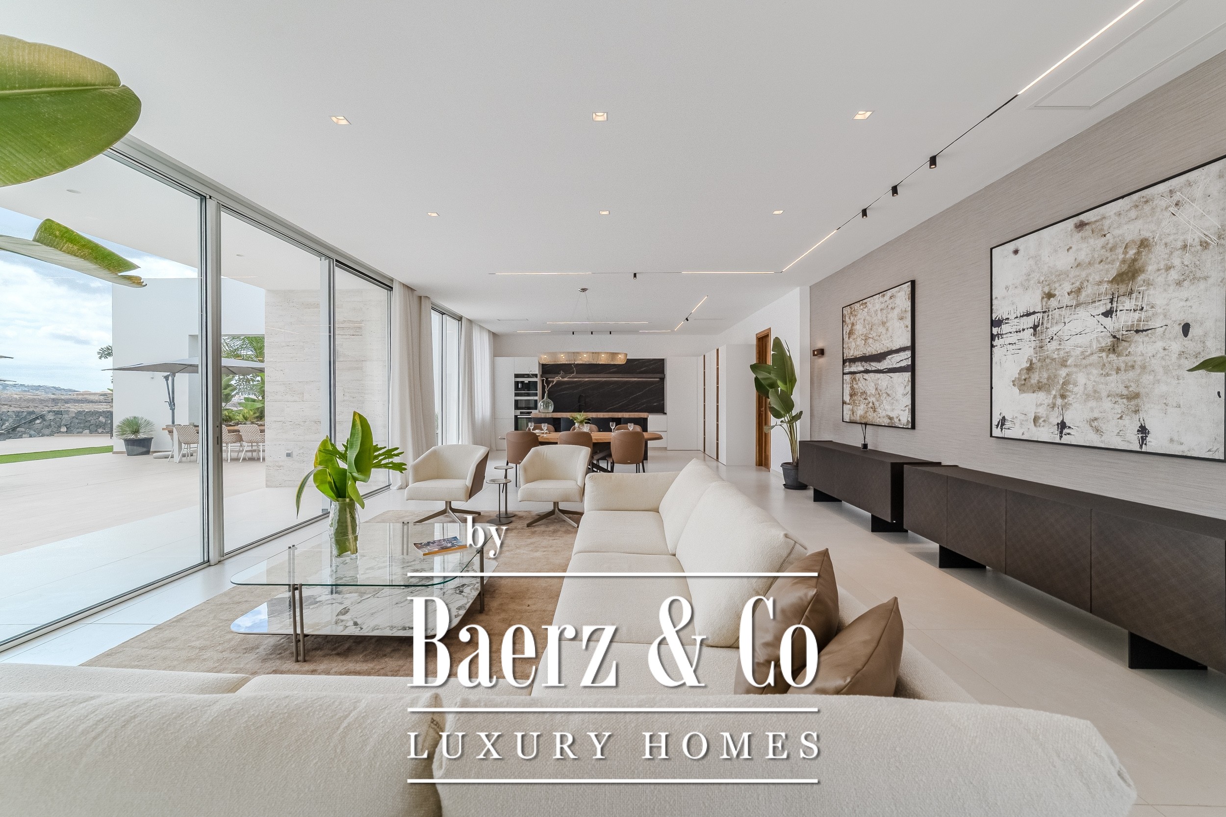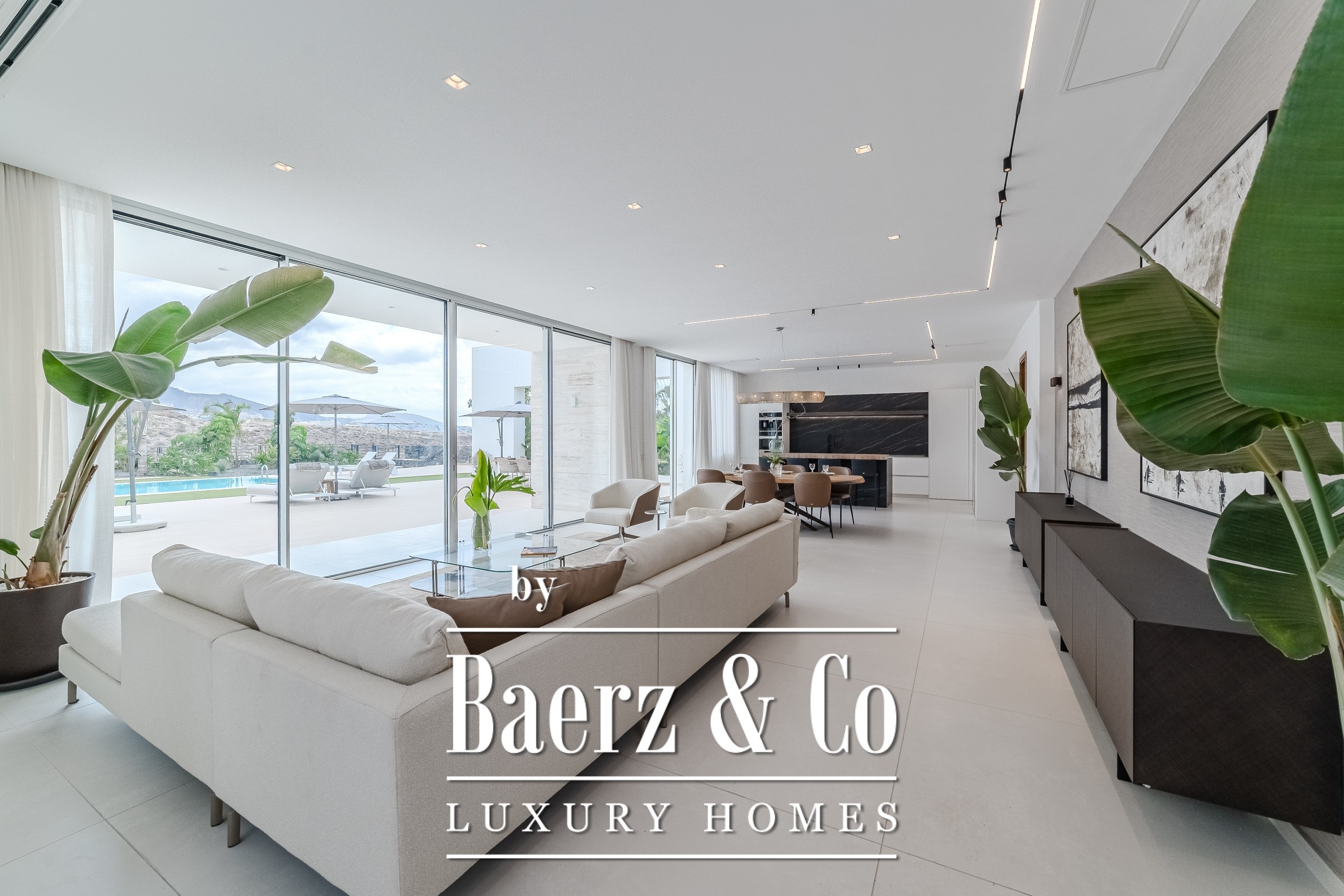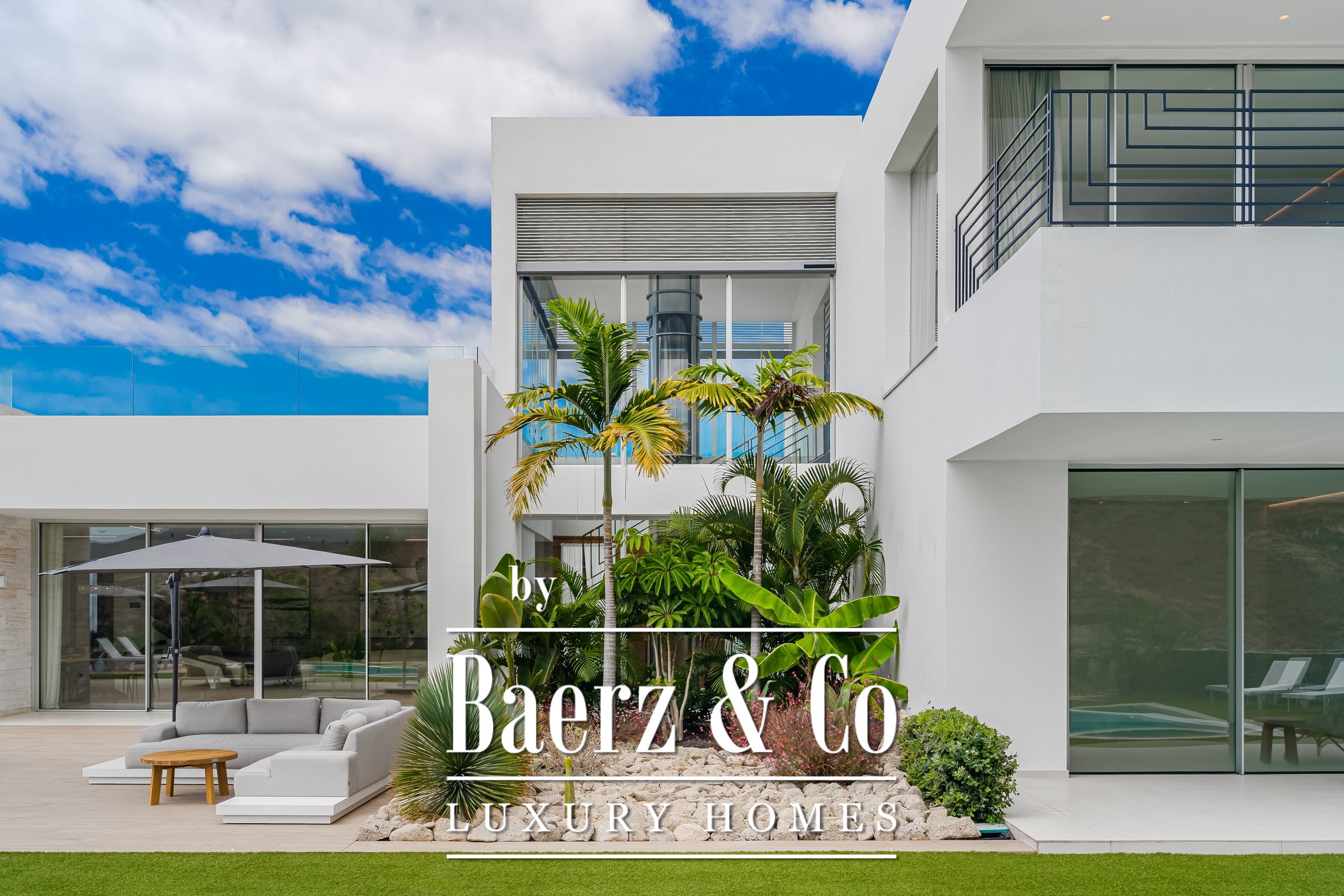 Luxury villa Golf Costa Adeje stands discreetly among the most prestigious addresses in southern Tenerife, where elevated design meets calm seclusion. Set within a 2,500 m² plot and embraced by a 1,500 m² tropical garden, this property reflects sophisticated island living. The villa encompasses approximately 350 m² of thoughtfully arranged spaces, complemented by a 200 m² basement that invites customization, whether for a private cinema, wellness studio, or gym.