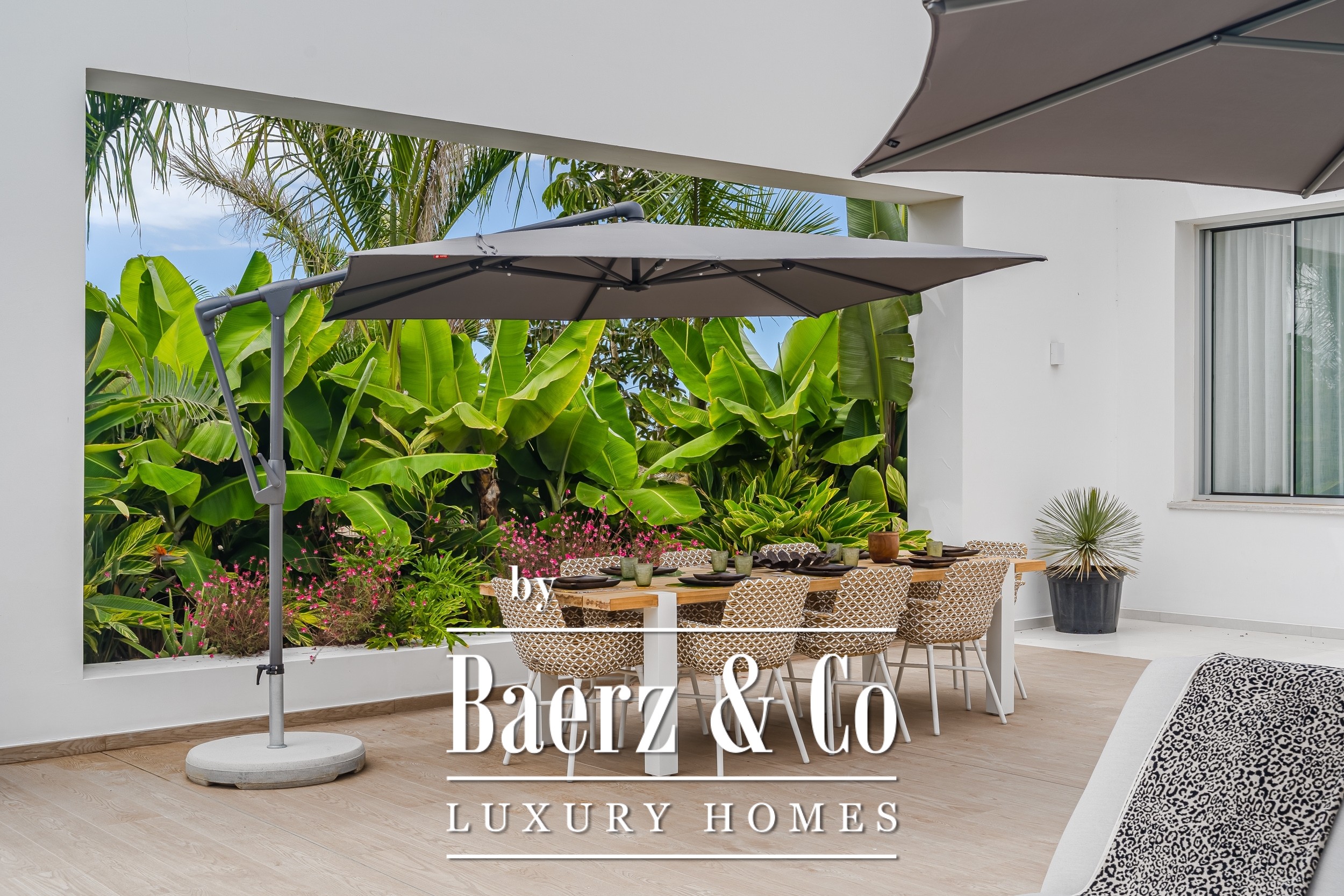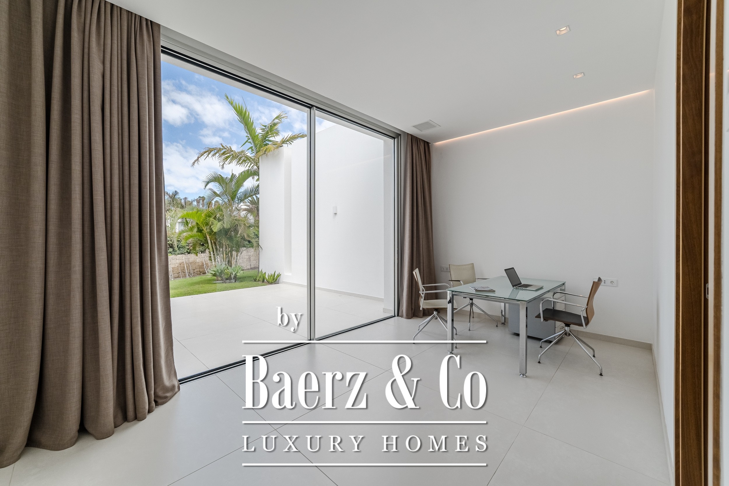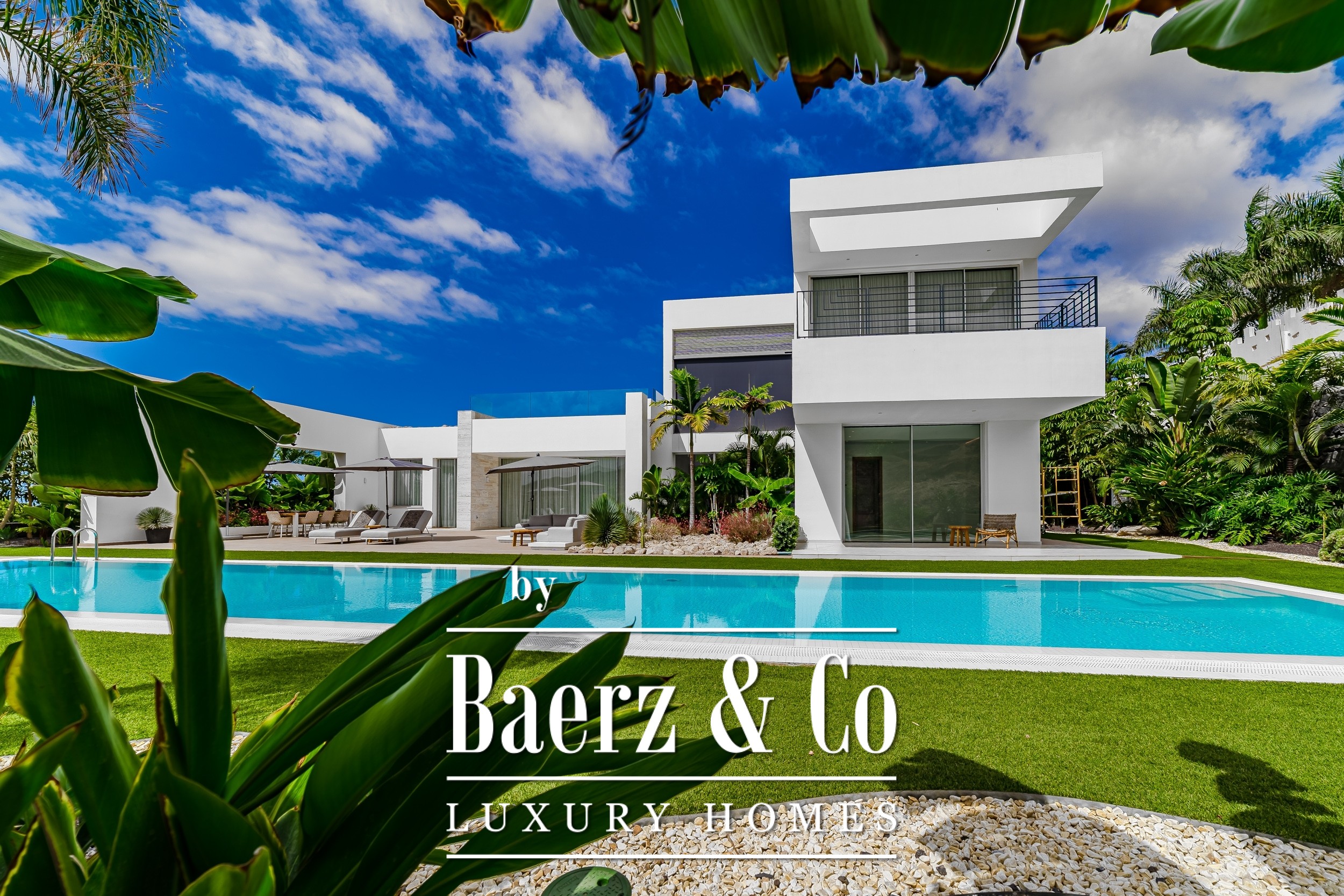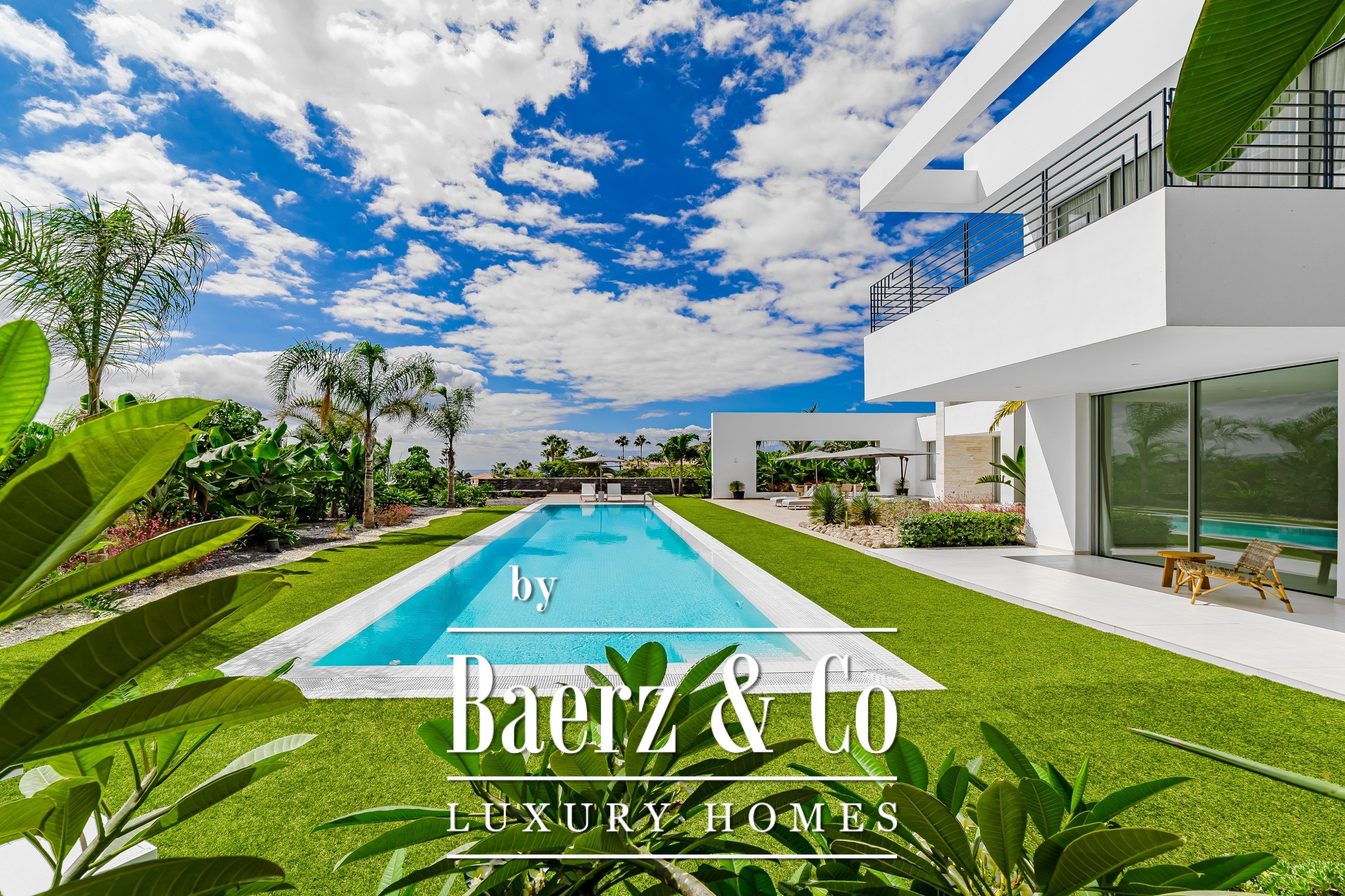 Luxury villa Golf Costa Adeje stands discreetly among the most prestigious addresses in southern Tenerife, where elevated design meets calm seclusion. Set within a 2,500 m² plot and embraced by a 1,500 m² tropical garden, this property reflects sophisticated island living. The villa encompasses approximately 350 m² of thoughtfully arranged spaces, complemented by a 200 m² basement that invites customization, whether for a private cinema, wellness studio, or gym.