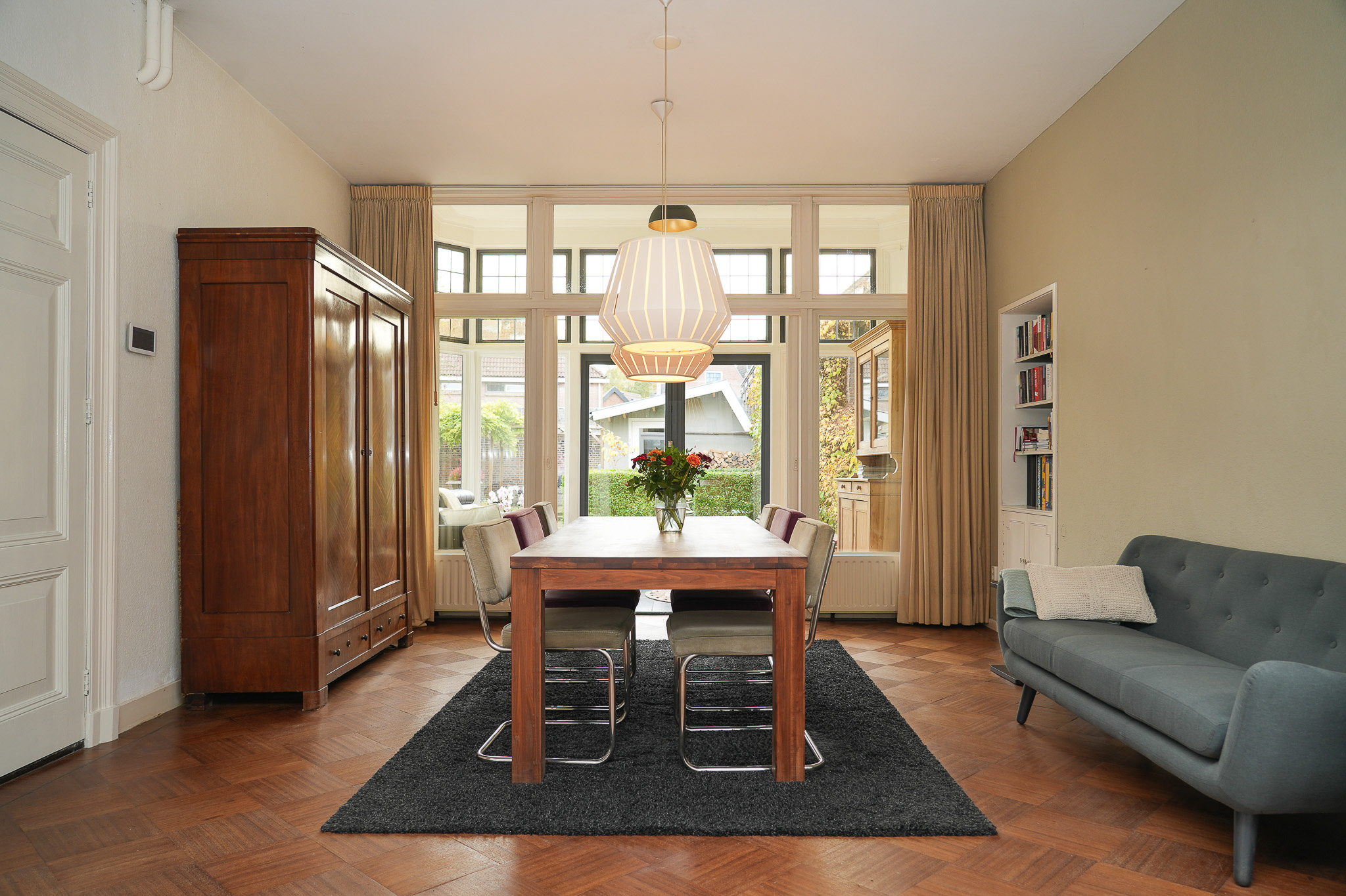 The property has been lovingly maintained over the past 25 years. It is heated by a high-efficiency boiler (2020), and the insulated roof is fitted with twelve solar panels. At the front, the ground-floor windows have insulating monument glass, while the upper floor features HR++ glazing.