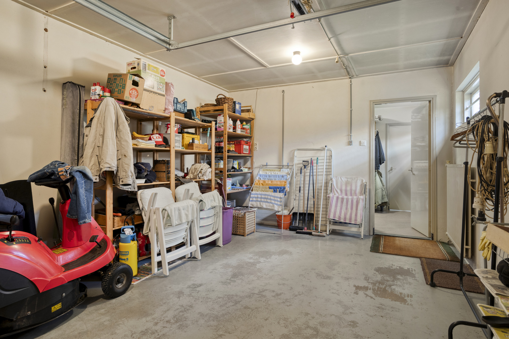 Internal garage with heating and sectional door.