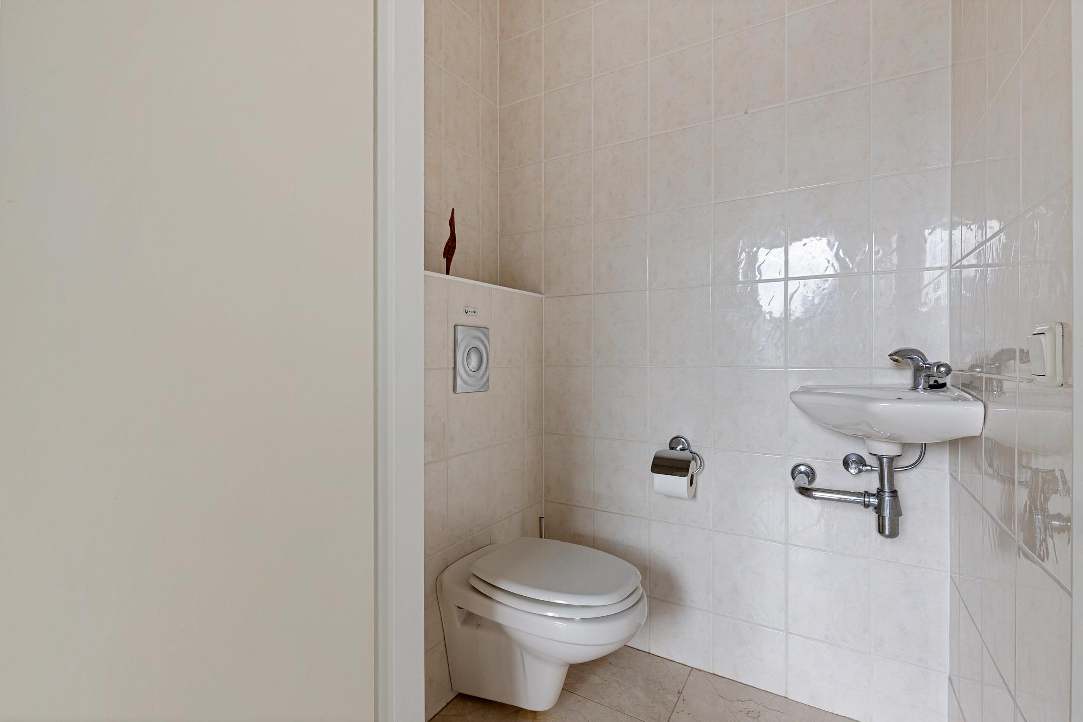 The adjacent utility room provides space for laundry appliances and has direct access to both the garden and garage. The entire ground floor is finished with a natural stone floor and underfloor heating.