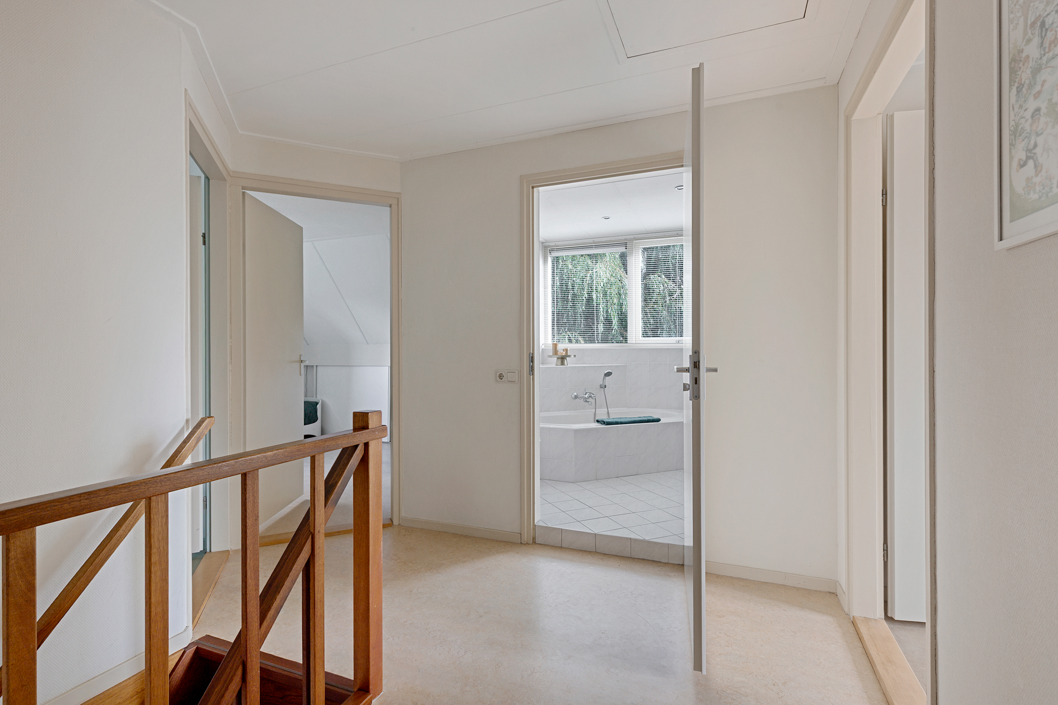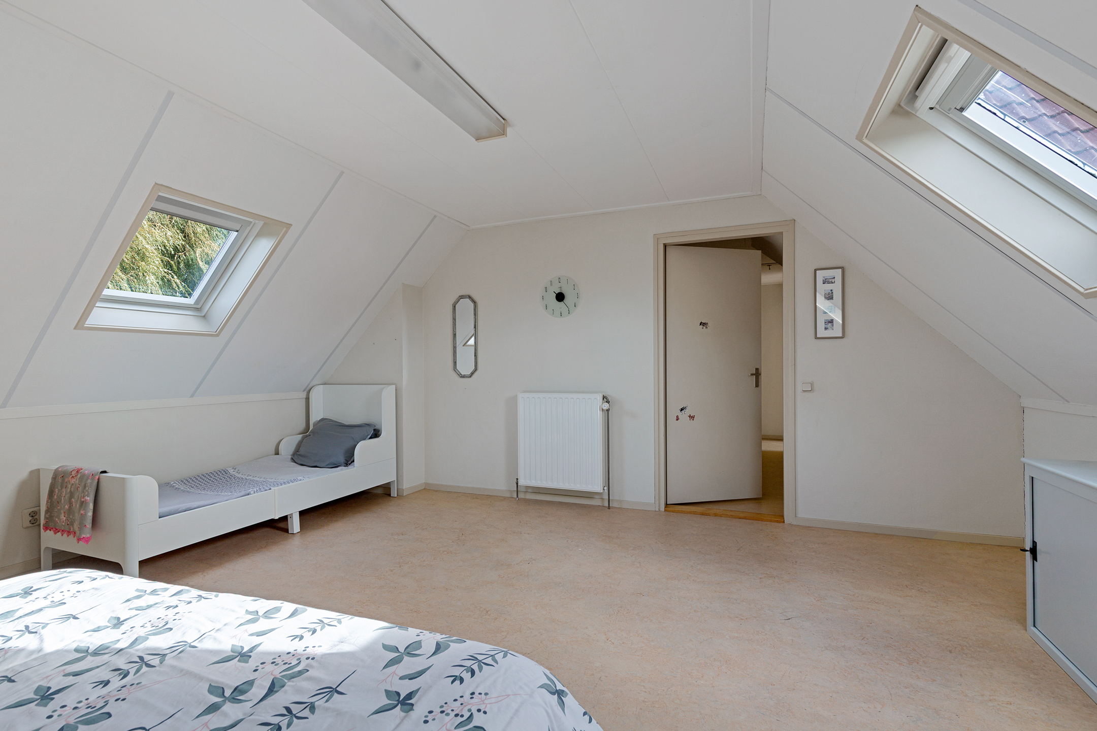 A well-insulated attic with natural light (two windows) is accessible via loft stairs. Thanks to the roof structure, this space has standing height and makes an excellent dry storage area. Mechanical ventilation is also located here.