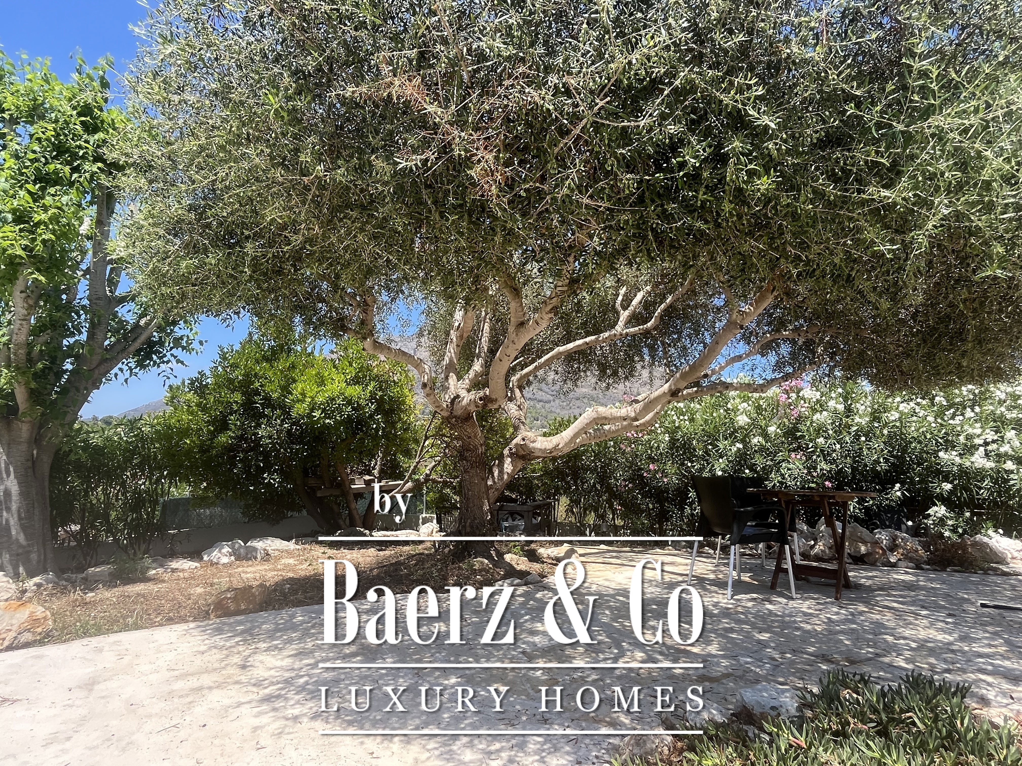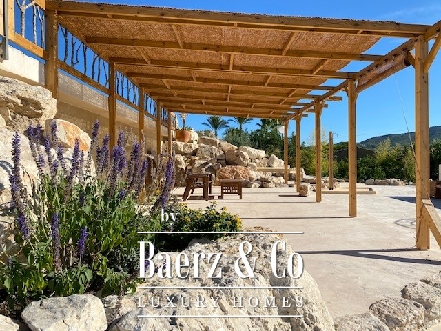 Set on a former olive grove of 1,700 m², the finca enjoys uninterrupted views of the lush green valley and the majestic Montgó Mountain.