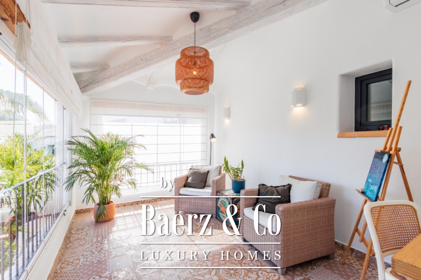 This detached villa Jávea is a modern expression of Ibiza style set in the peaceful Adsubia neighbourhood, offering a quiet environment and subtle sea views from the upper floor. Recently renovated to exacting standards, the 320 m² villa achieves a balance between contemporary technology and understated Mediterranean living. Underfloor heating and air conditioning are individually adjustable in each room, complemented by electric shutters and advanced systems including aerothermics, a 10 kW solar energy setup with battery storage, and a charging point for electric vehicles.