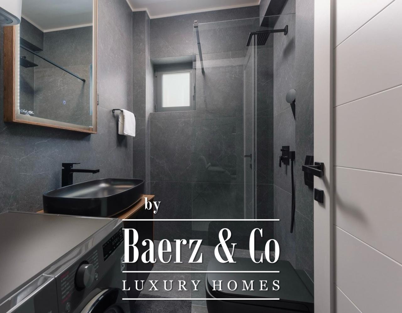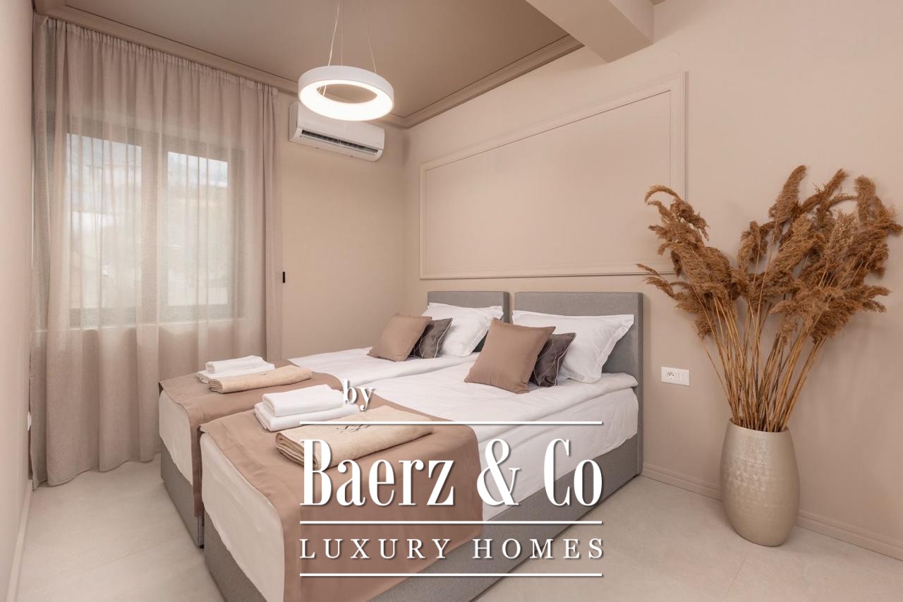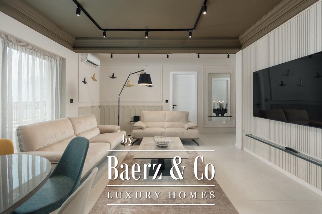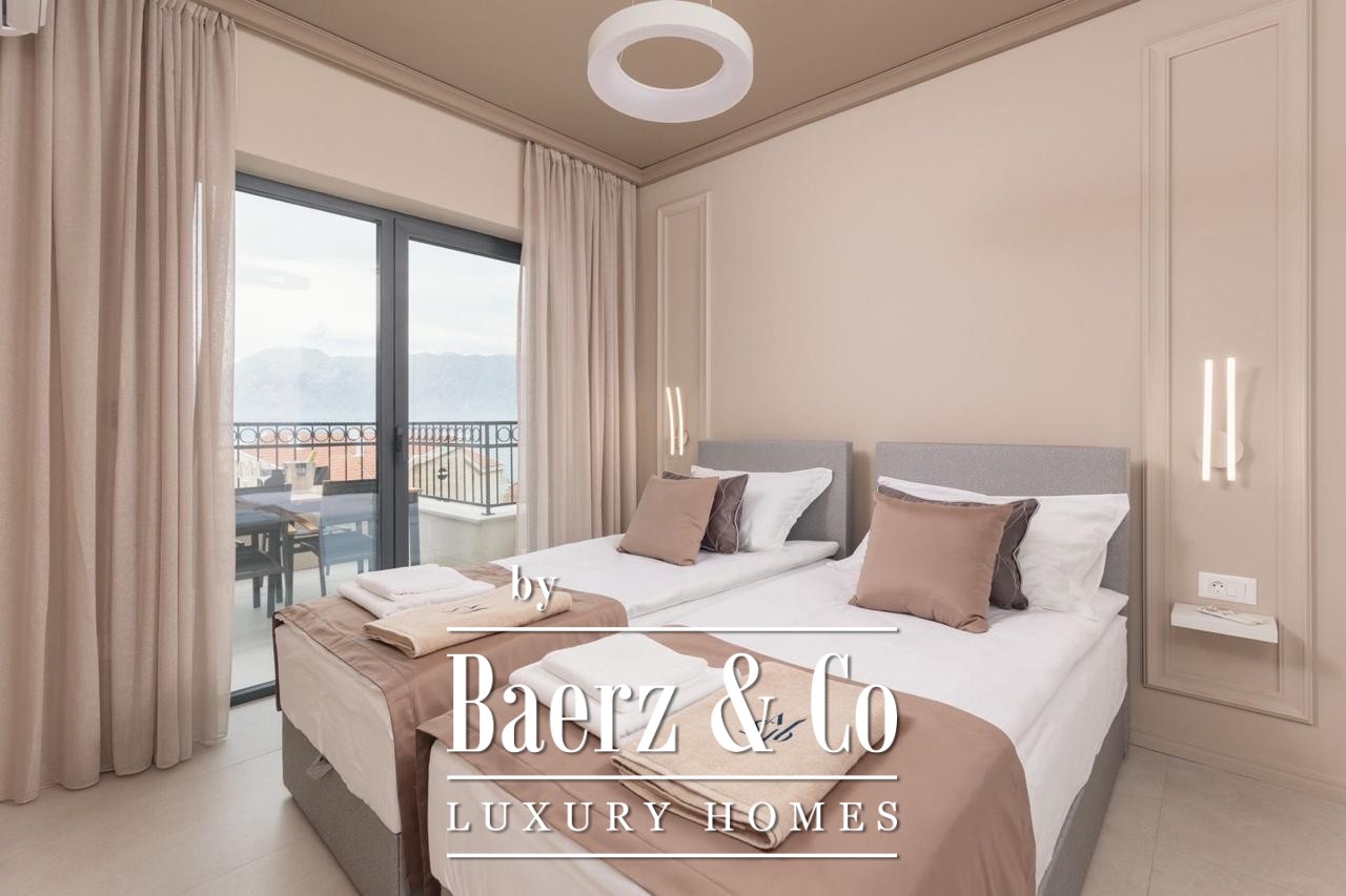 The apartment invites with three bedrooms, a bathroom, a separate toilet, and two terraces. Floor-to-ceiling views bring the ever-changing Bay of Kotor into the interior, complementing the 186 m² living area fully furnished for immediate occupancy. Thoughtful planning includes a hallway orienting movement towards the living spaces and terraces, where outdoor living is shaped by the rhythm of sea and sky.