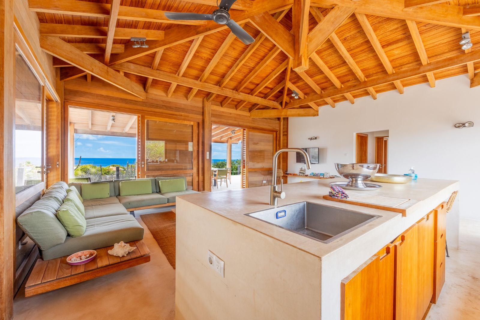 Experience the ultimate Caribbean lifestyle in this charming Caribbean villa nestled in the hills of Sabadeco. With its stunning wooden finishes, this villa truly immerses you in the midst of nature.