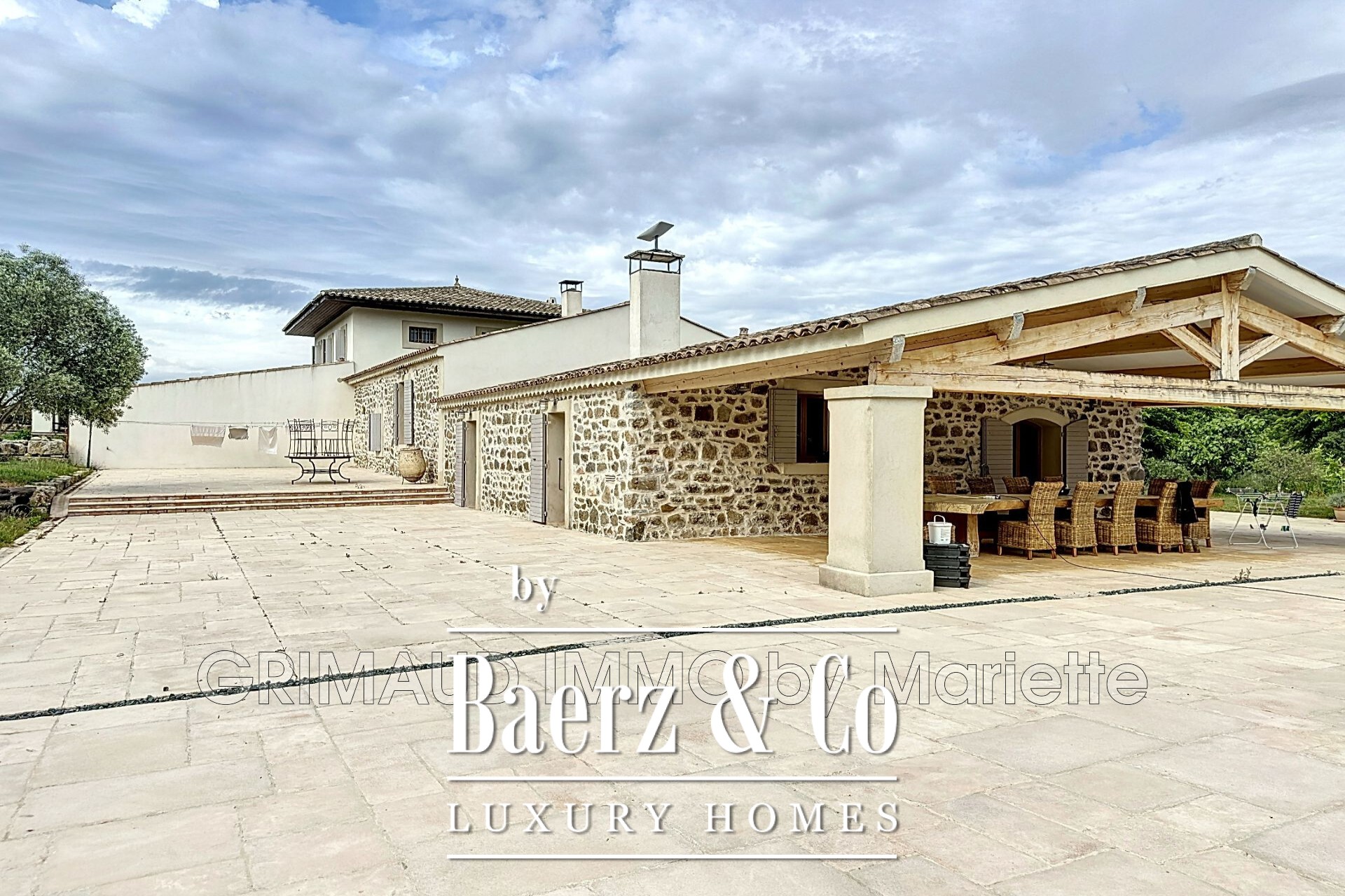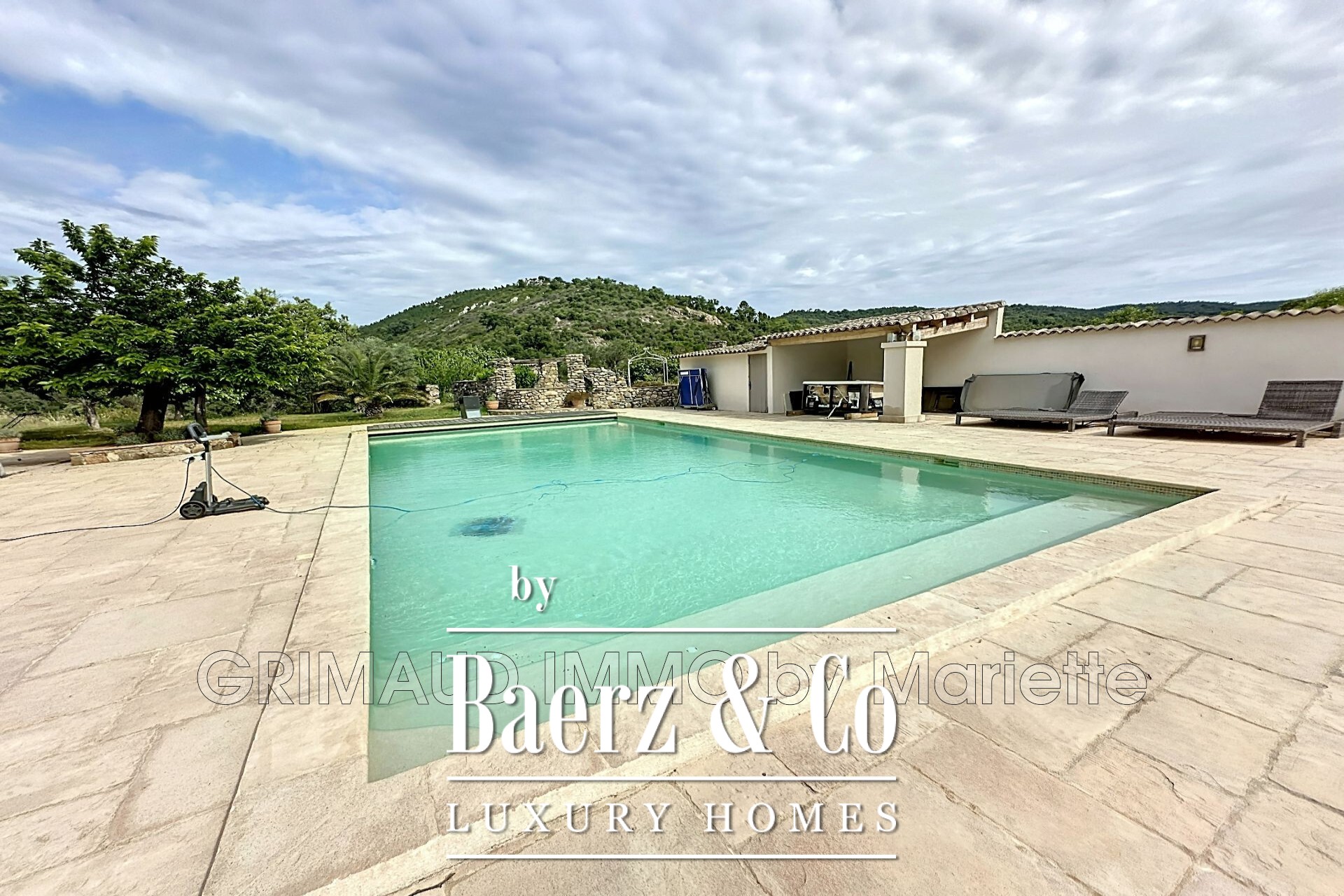 There are three T2-style apartments each with a living room, kitchen, bedroom, and bathroom with shower and WC. The property includes a stream, water from the Provence canal as well as boreholes, wells, and a lake. The heated swimming pool with its pool house, and a 115m² garage. For more properties, visit our website: www.grimaudimmo.com