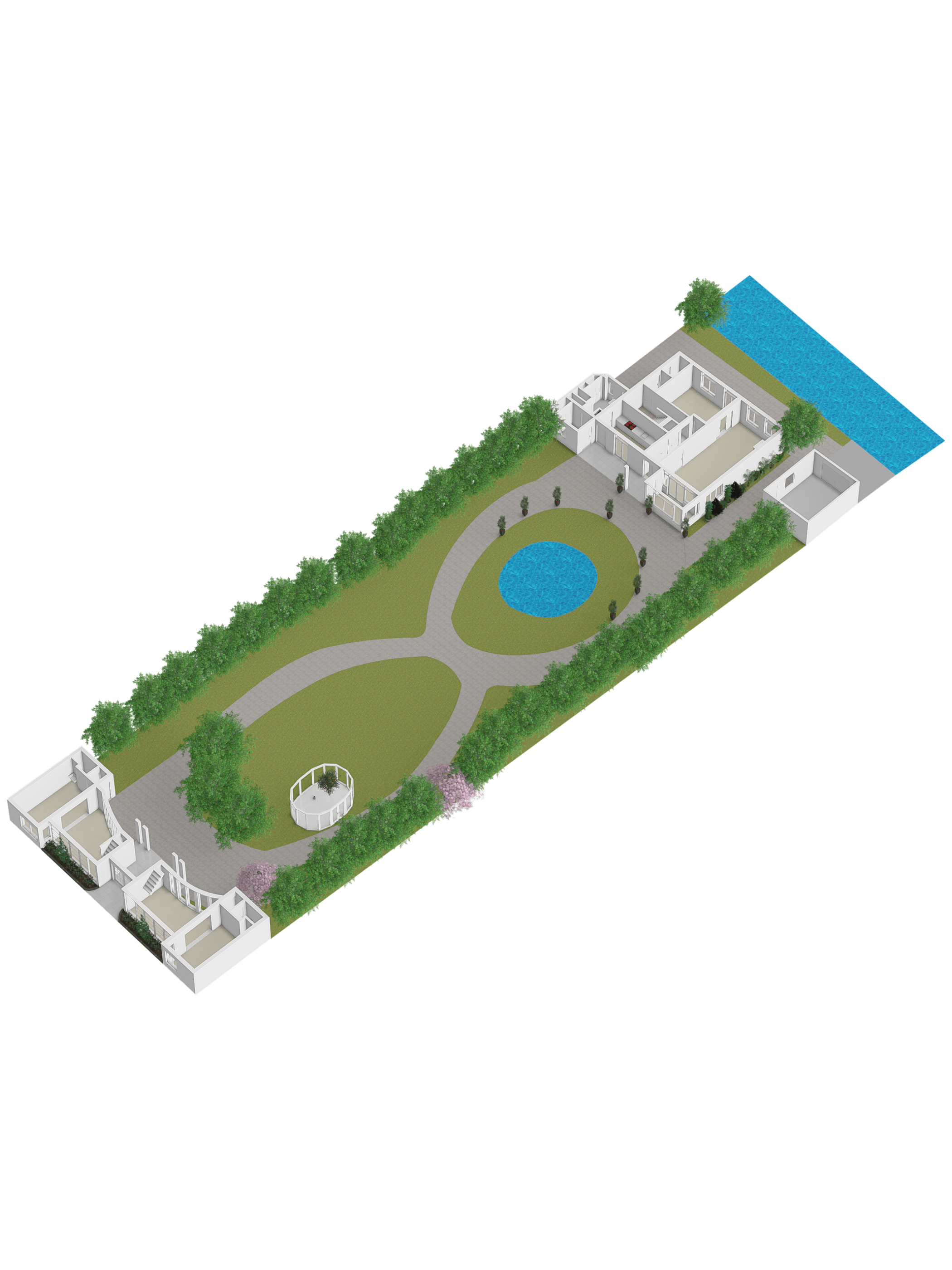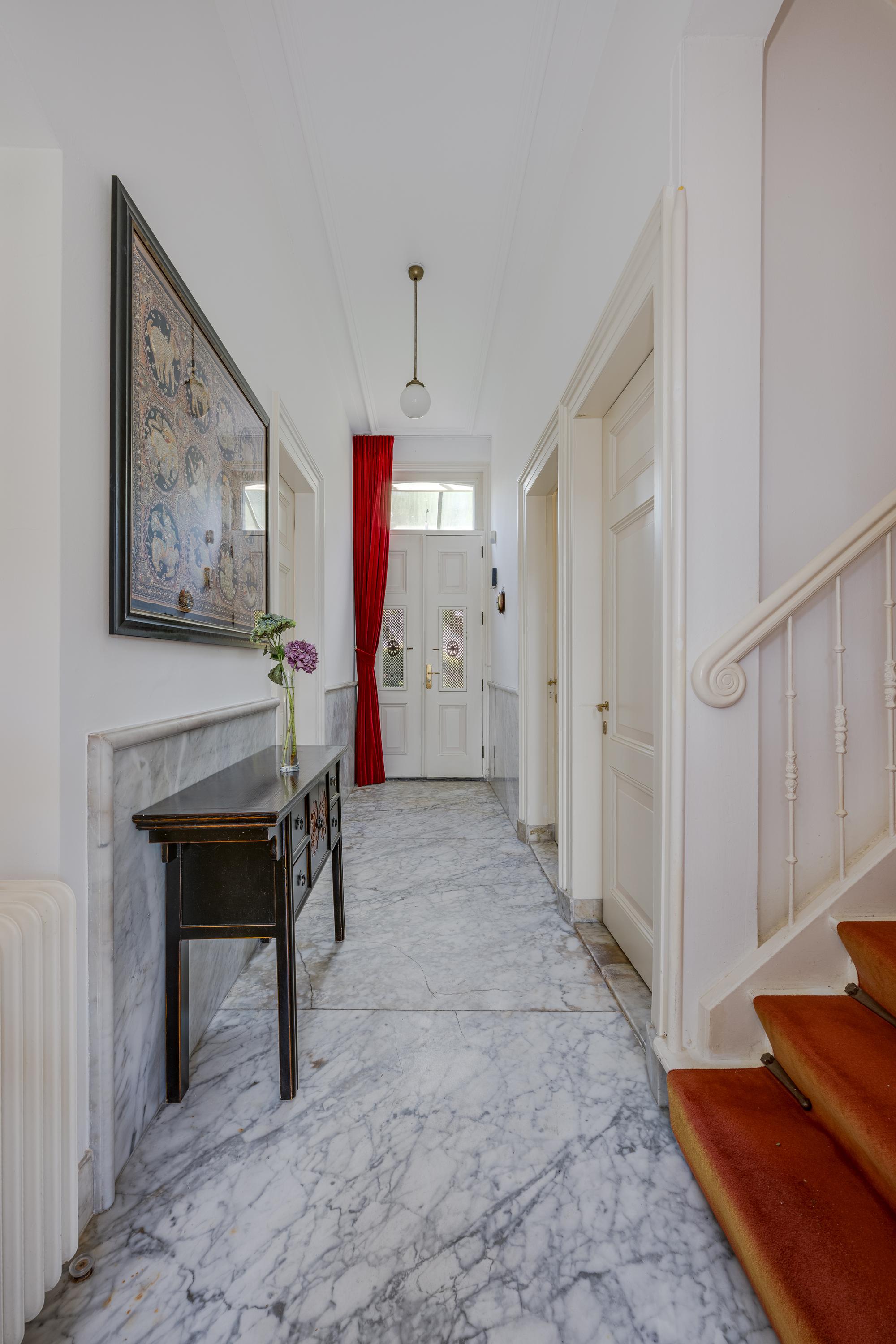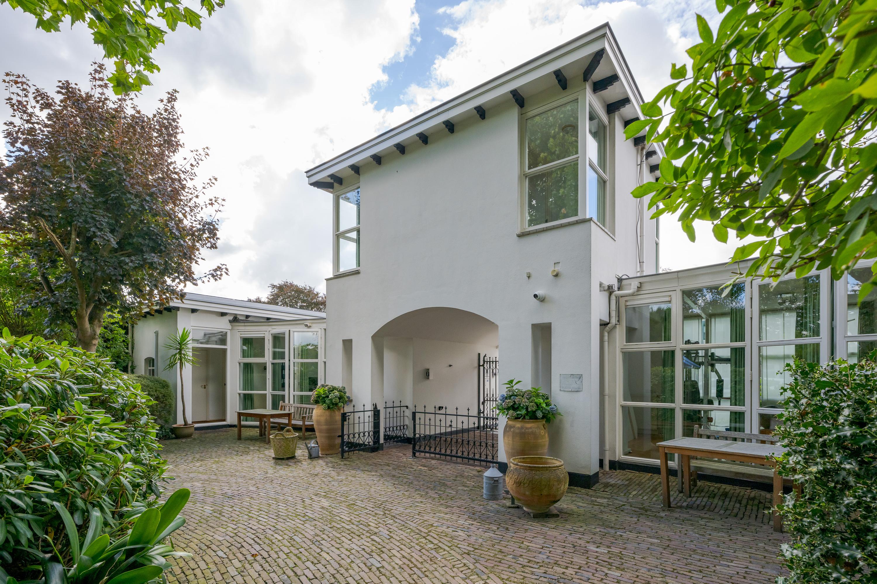 The 1995 gatehouse, designed symmetrically with glass façades and French doors, balances office and fitness space on the ground floor, with a luminous guest room above. Security, modern insulation, sustainable solar technologies, and linked alarm systems ensure discretion and peace of mind. Local amenities, shops, international schools, and the historic heart of Leiden are all within walking or cycling distance, while the A4’s swift connections link city, coast, and airport.