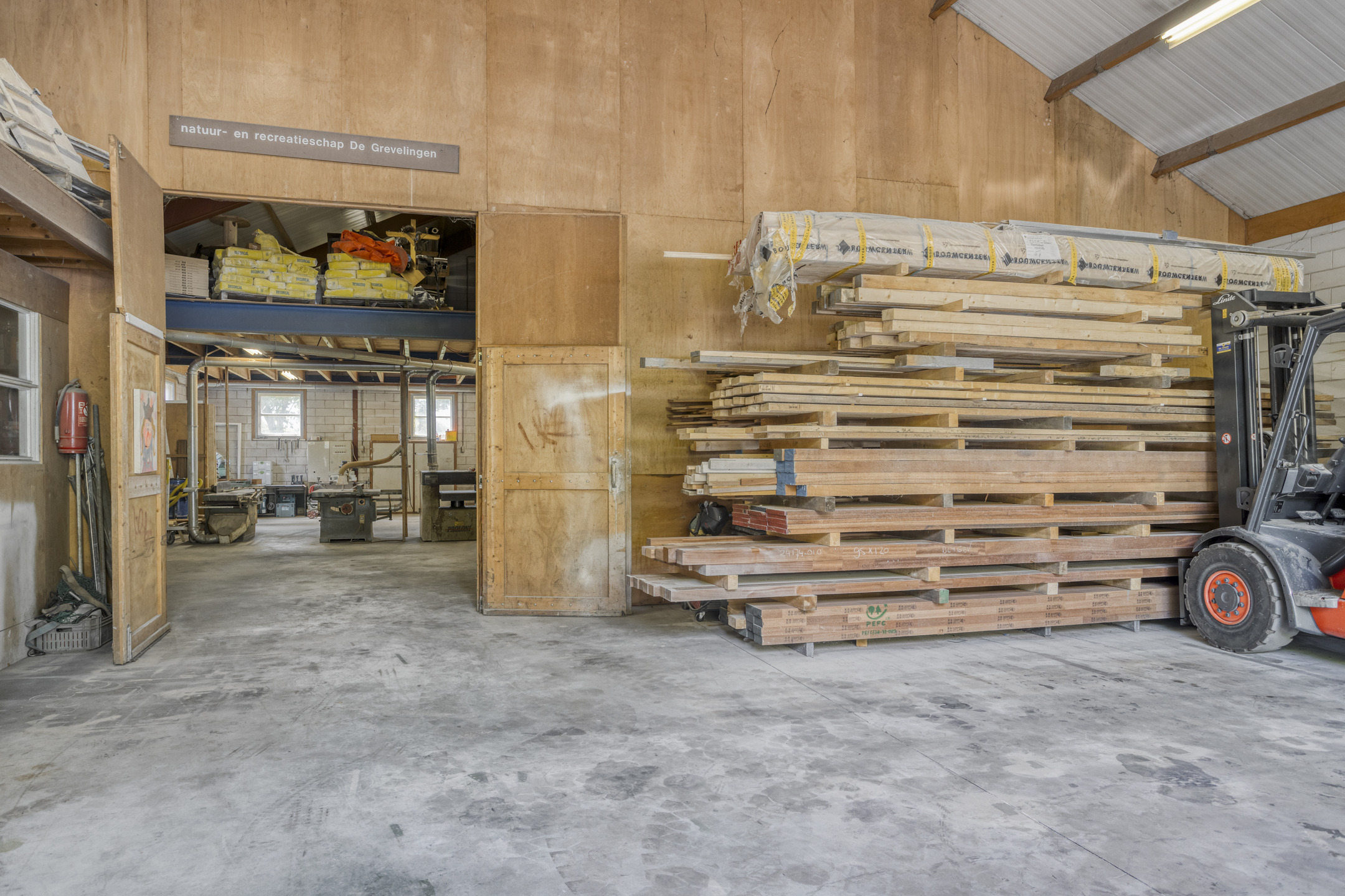 Loods (ca. 343 m²) voorzien van elektrische sectiedeur van 5,80 x 4 meter, houten / demontabele tussenwand, betonvloer, toiletinrichting, meterkastinstallatie met 4 groepen, 5 aardlekschakelaars, 5 krachtgroepen en PV-groep t.b.v. 96 zonnepanelen, entresolvloer in hout t.b.v. opslag op de 1e verdieping;