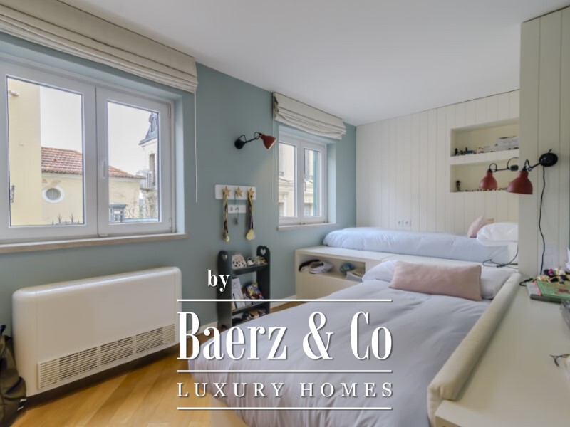 Apartment Lisboa in the famed Lapa district offers a seamless blend of historic character and considered renovation. Set within a completely restored two-story building, this residence spans 322 m² and retains period architectural details carefully preserved during its 2021 renewal. The space unfolds over three levels, with an entrance hall introducing a 13.2 m² kitchen, a 7.35 m² laundry, and a luminous 43.5 m² living and dining area centered on a fireplace.