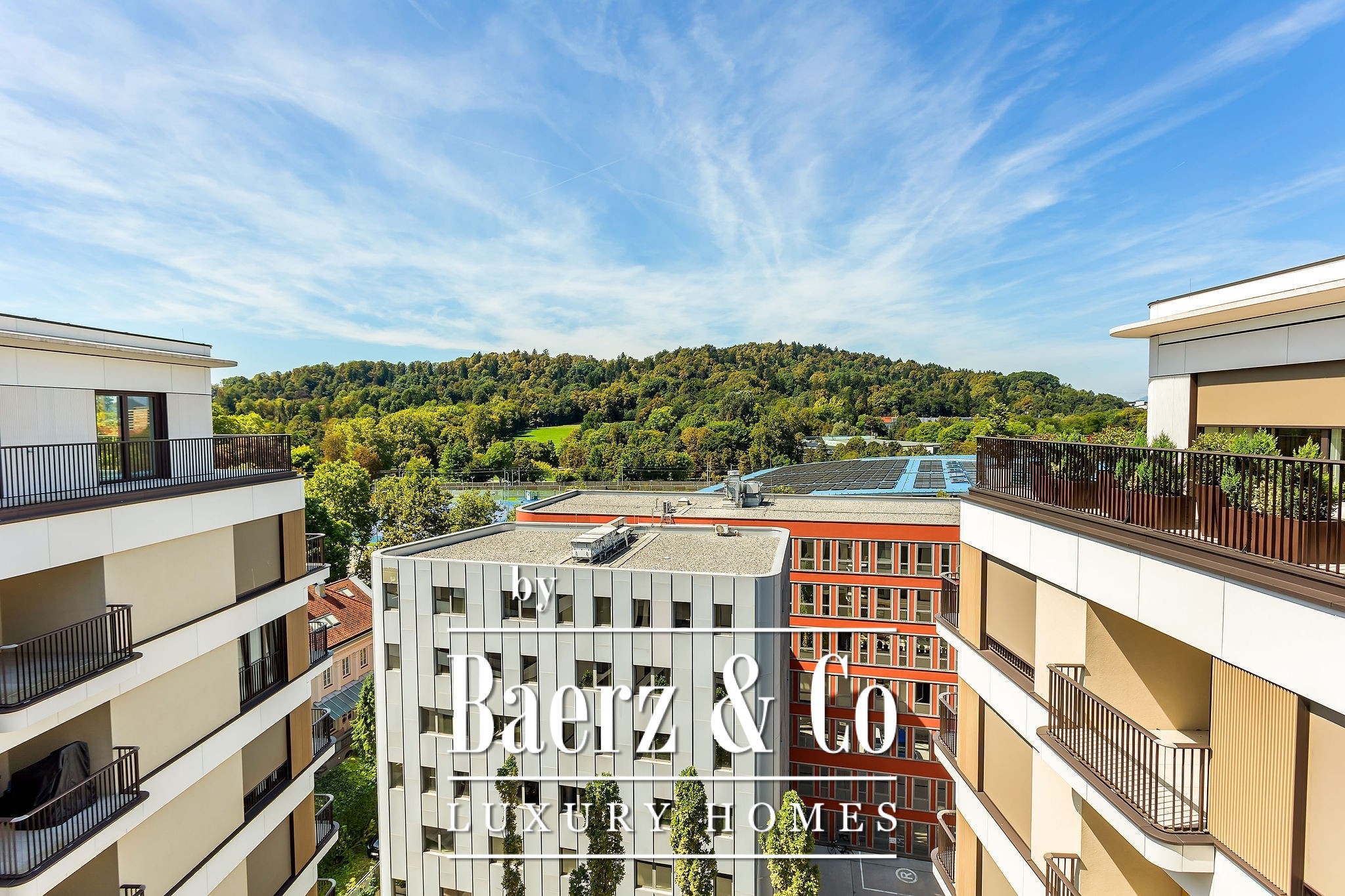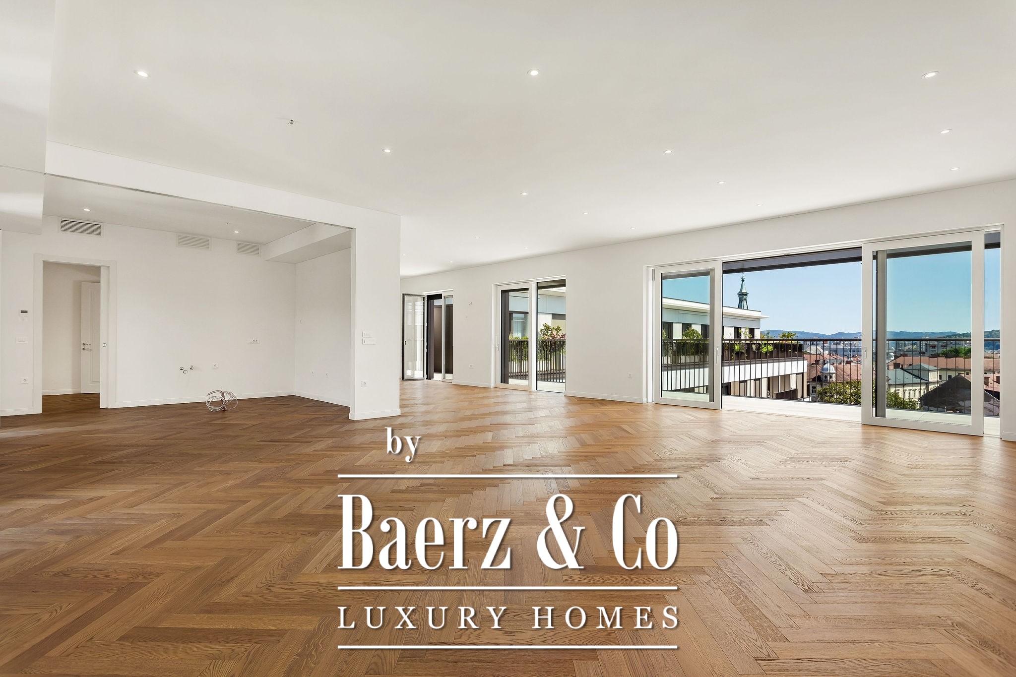 This apartment represents the pinnacle of luxury and exclusivity. The spacious terrace offers a sense of living in nature while the vibrant energy of Ljubljana unfolds before you. Every detail – from Internorm triple-glazed windows, French balconies, exterior screen blinds, to the choice of parquet and ceramics – is carefully selected for a superior living experience.