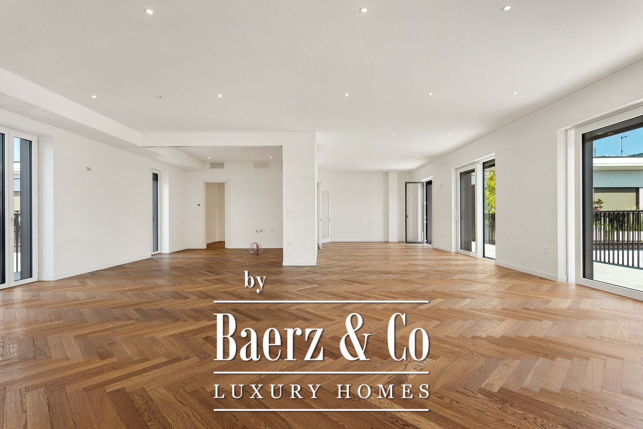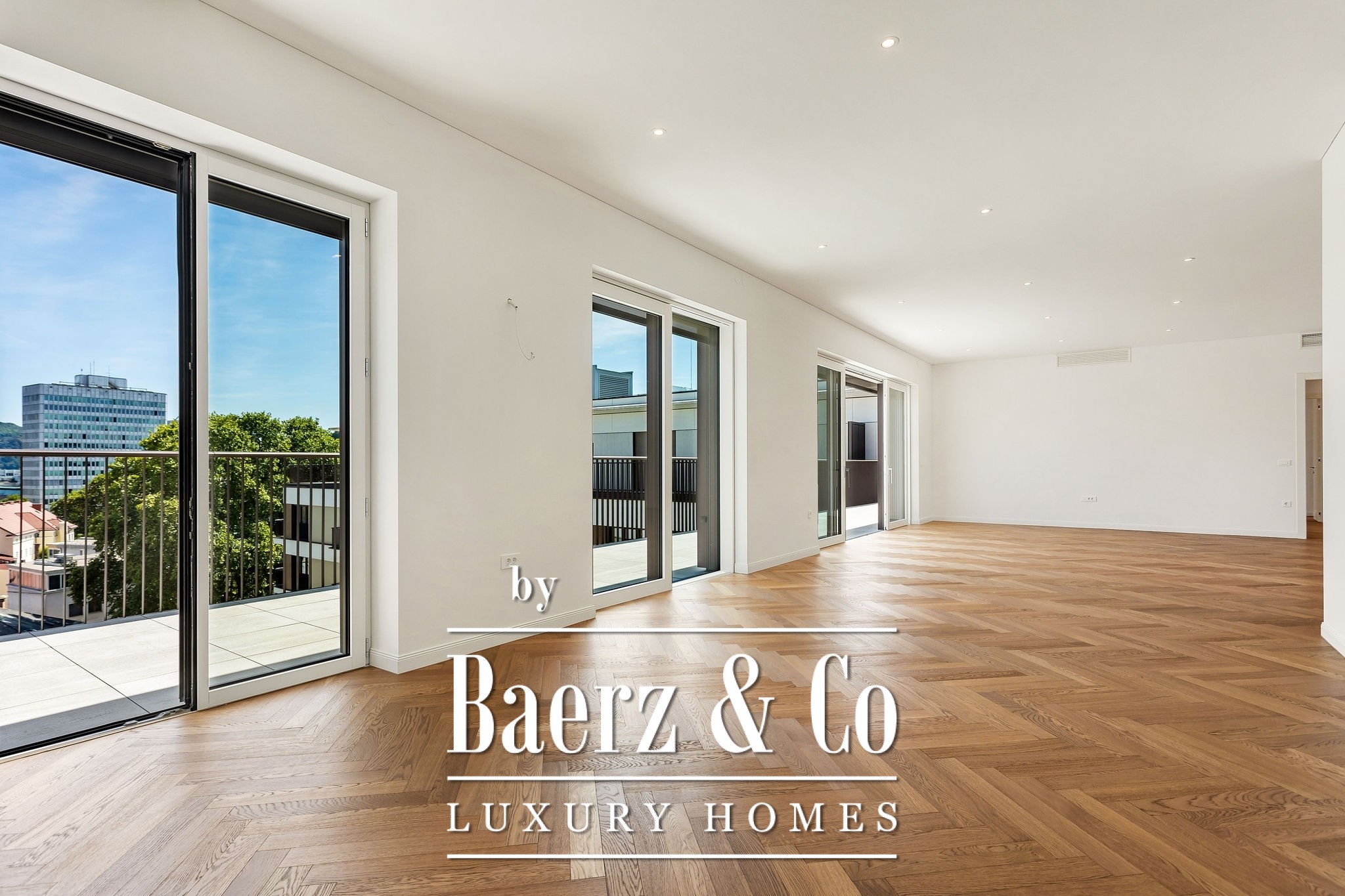 The apartment features elevated ceilings and floor-to-ceiling windows up to 230 cm. It is partially furnished with high-end furniture and Bosch appliances. Bathrooms and sanitary areas are equipped with premium fixtures and ready for immediate move-in.