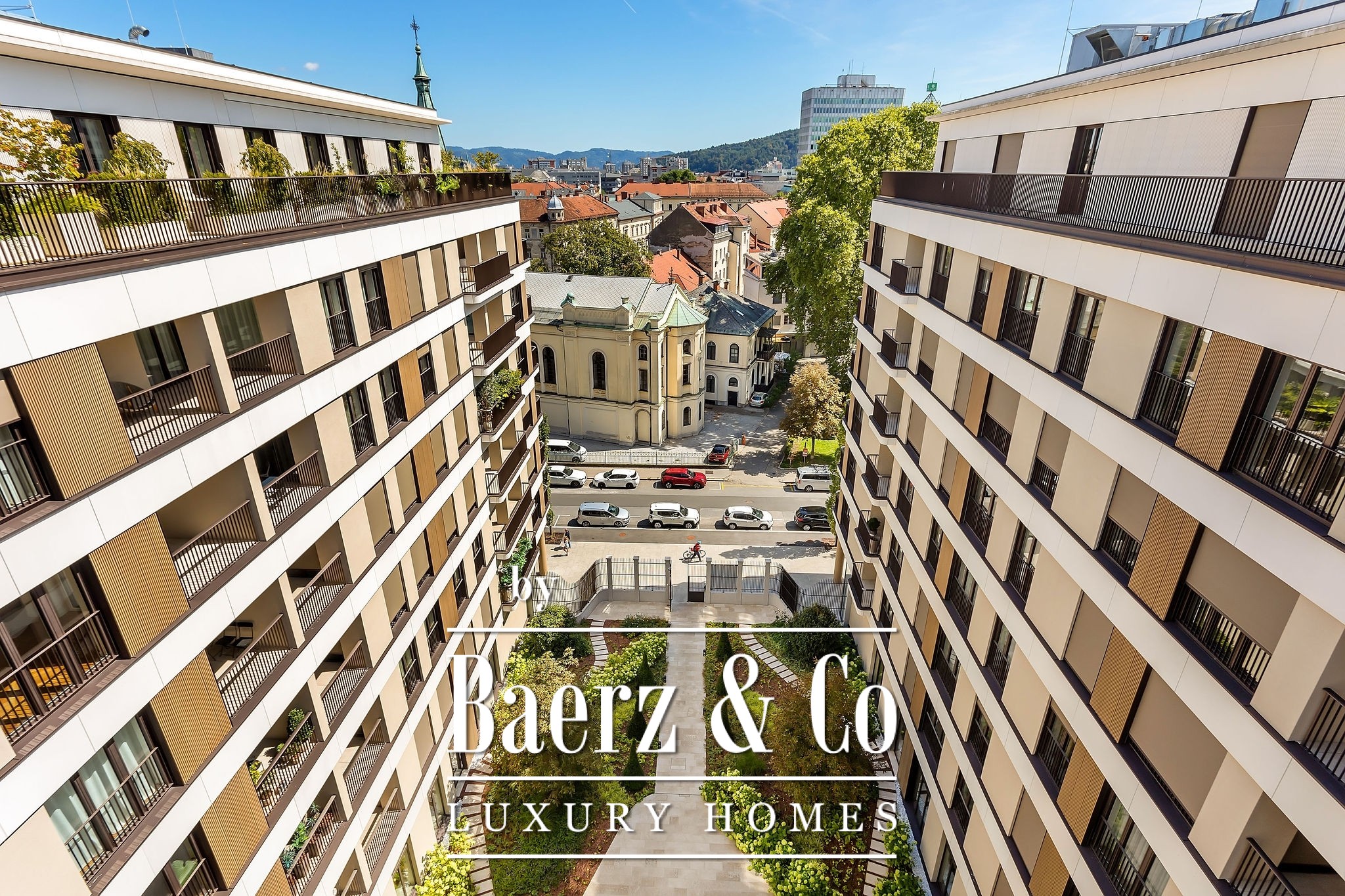 Schellenburg Palais is located right next to Tivoli Park, a green oasis with walking paths, fountains, and a botanical garden, while still being just steps away from the city center, cultural landmarks, and prestigious restaurants. Every view from the penthouse reveals a perfect harmony between urban energy and relaxing nature. The apartment combines peaceful living near green spaces with easy access to the city’s vibrant life.