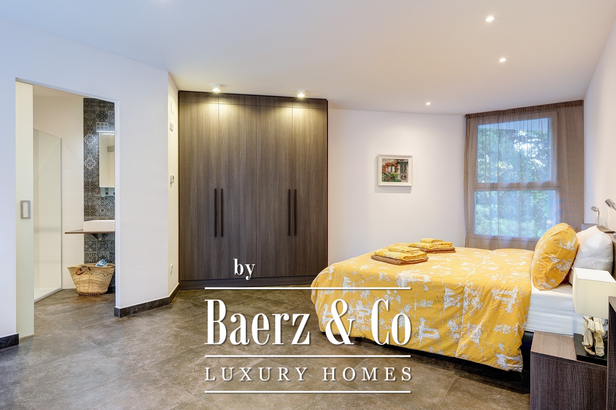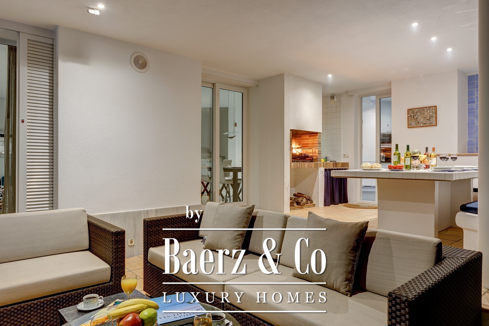 Every aspect of the villa’s architecture speaks to clarity and refinement, from aluminum frames to underfloor heating and custom outdoor lighting. Four suites provide private retreats, complemented by a fully fitted designer kitchen, wine cellar, and adaptive multipurpose spaces. An office, guest toilet, and discreet garage support both daily needs and seasonal entertaining, while features like air conditioning, piped music, and a sophisticated alarm system ensure complete peace of mind.