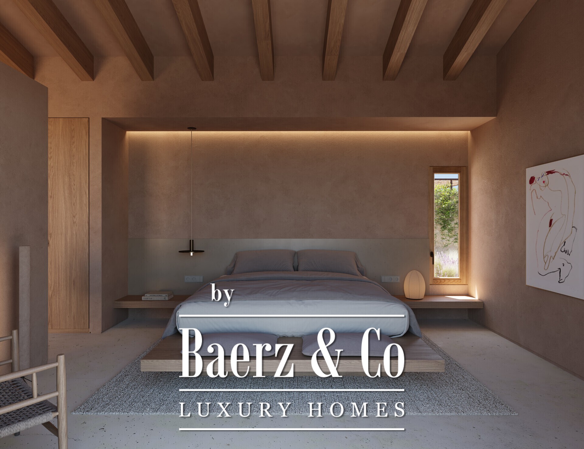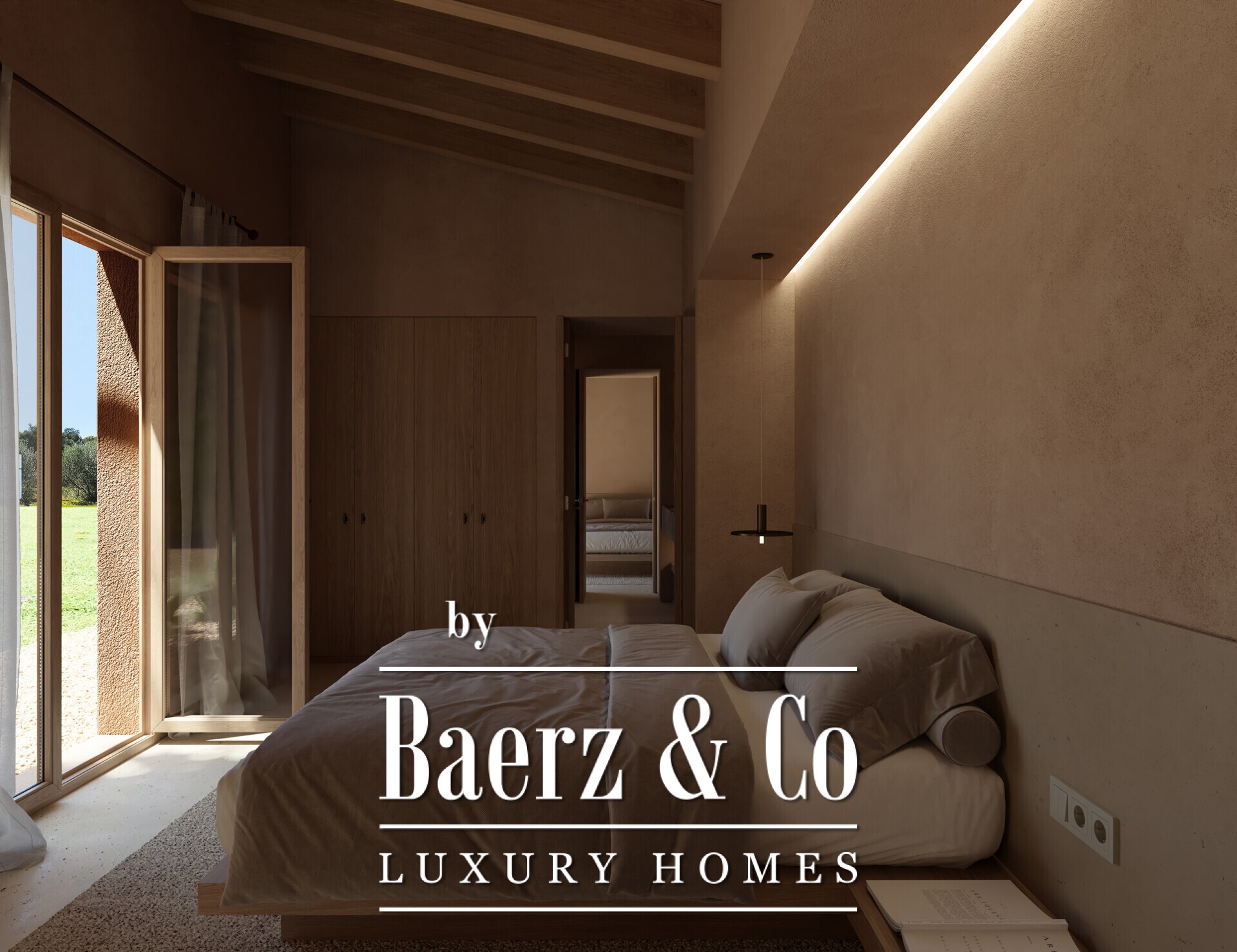 Country house Manacor offers a contemporary tribute to Mediterranean living, blending traditional craftsmanship with modern sustainability. Set among olive groves on a 14,206 m² plot in Aubocàsser, this 210 m² finca connects to both landscape and heritage, using lime mortar facades, natural stone walls, wooden beams, and curved tiles to evoke an enduring sense of place. The country house Manacor uses cement floors, mineral paints, and custom oak furnishings in muted tones, creating an atmosphere of calm throughout all three bedrooms and two bathrooms. Every space reflects a restrained palette and thoughtful details, from microcement headboards and built-in wardrobes to artisan-crafted sinks.