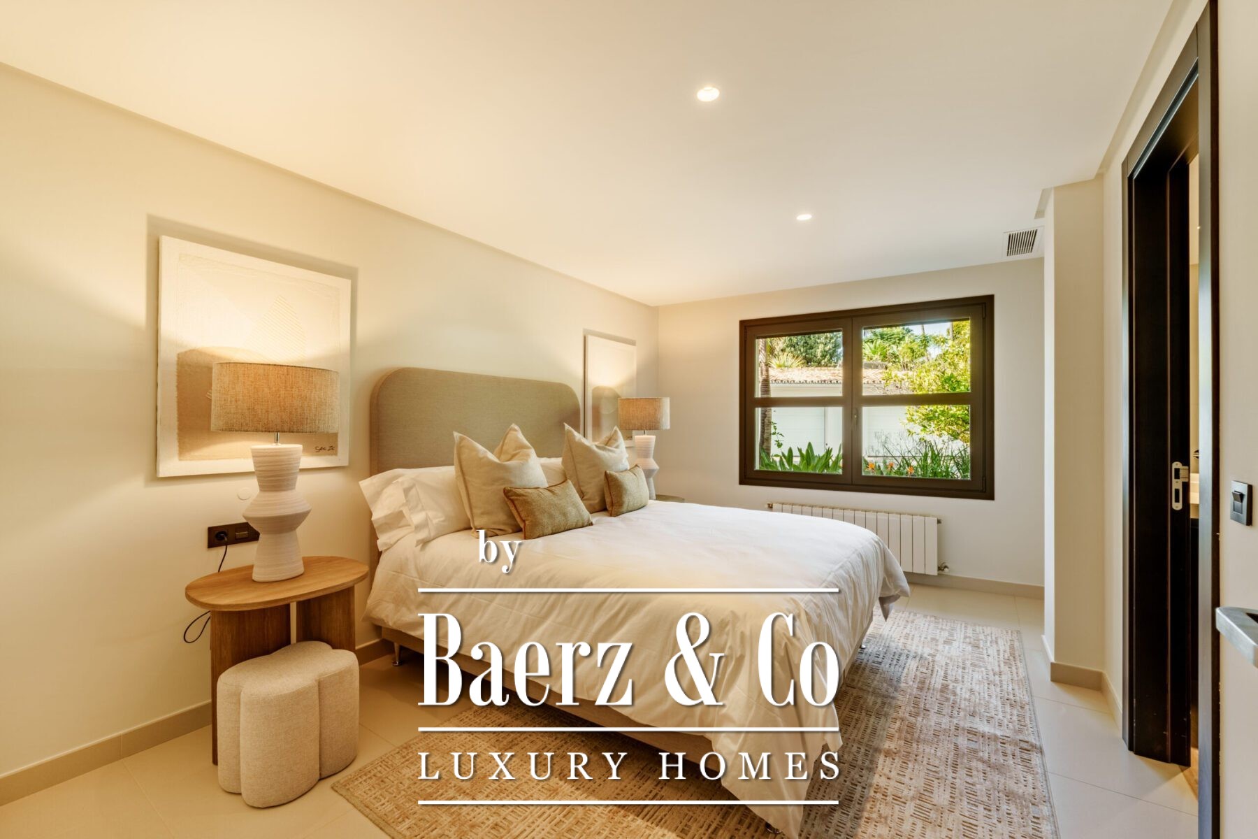 Lush landscaping by a renowned firm creates a sense of privacy and place, with century-old ficus trees, Washingtonia robusta palms, jacarandas in bloom, agave, hibiscus, and other sculptural plantings creating a private sanctuary. Discreet security and comfort details include Technal windows, Lutron lighting, air conditioning, alarm, water tank, and a four-car garage. Proximity to championship golf courses, the Mediterranean coastline, and Marbella’s upscale amenities combine to situate this luxury villa for sale in Marbella as a quiet axis of natural beauty and refined living.