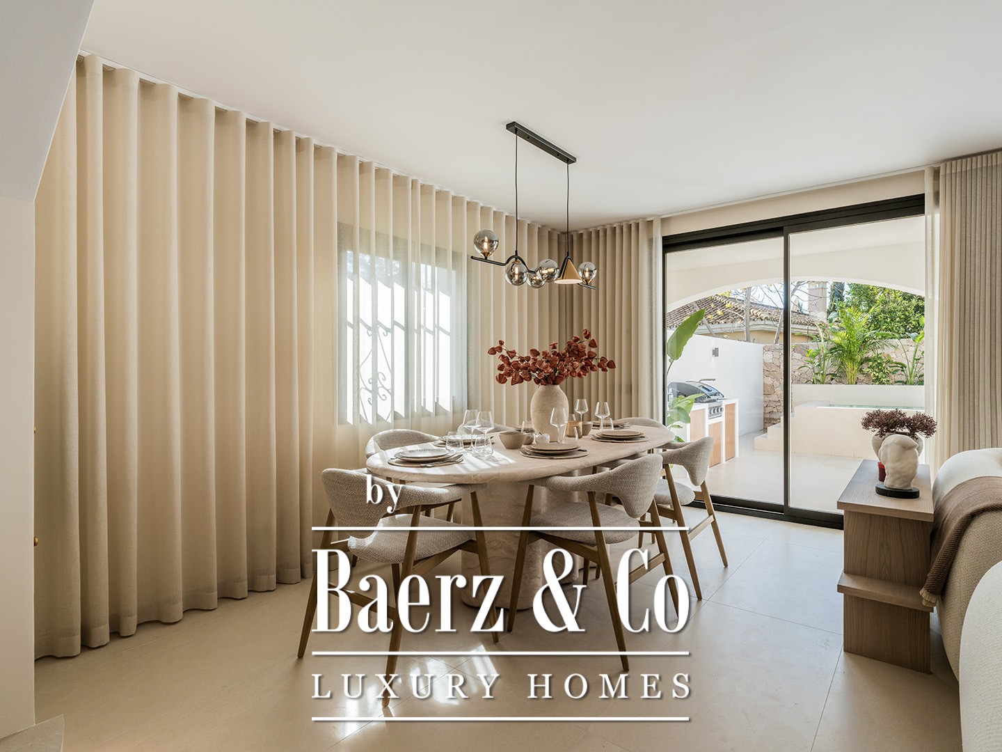 Semi detached house San Pedro Beach Marbella captures the essence of contemporary design and comfort in a coveted Marbella setting. This fully renovated home is nestled within a secure gated community just moments from the shoreline, offering both serenity and connectivity. With a living area of 163 m² on a 170 m² plot, the residence seamlessly blends elegant interiors with outdoor living.